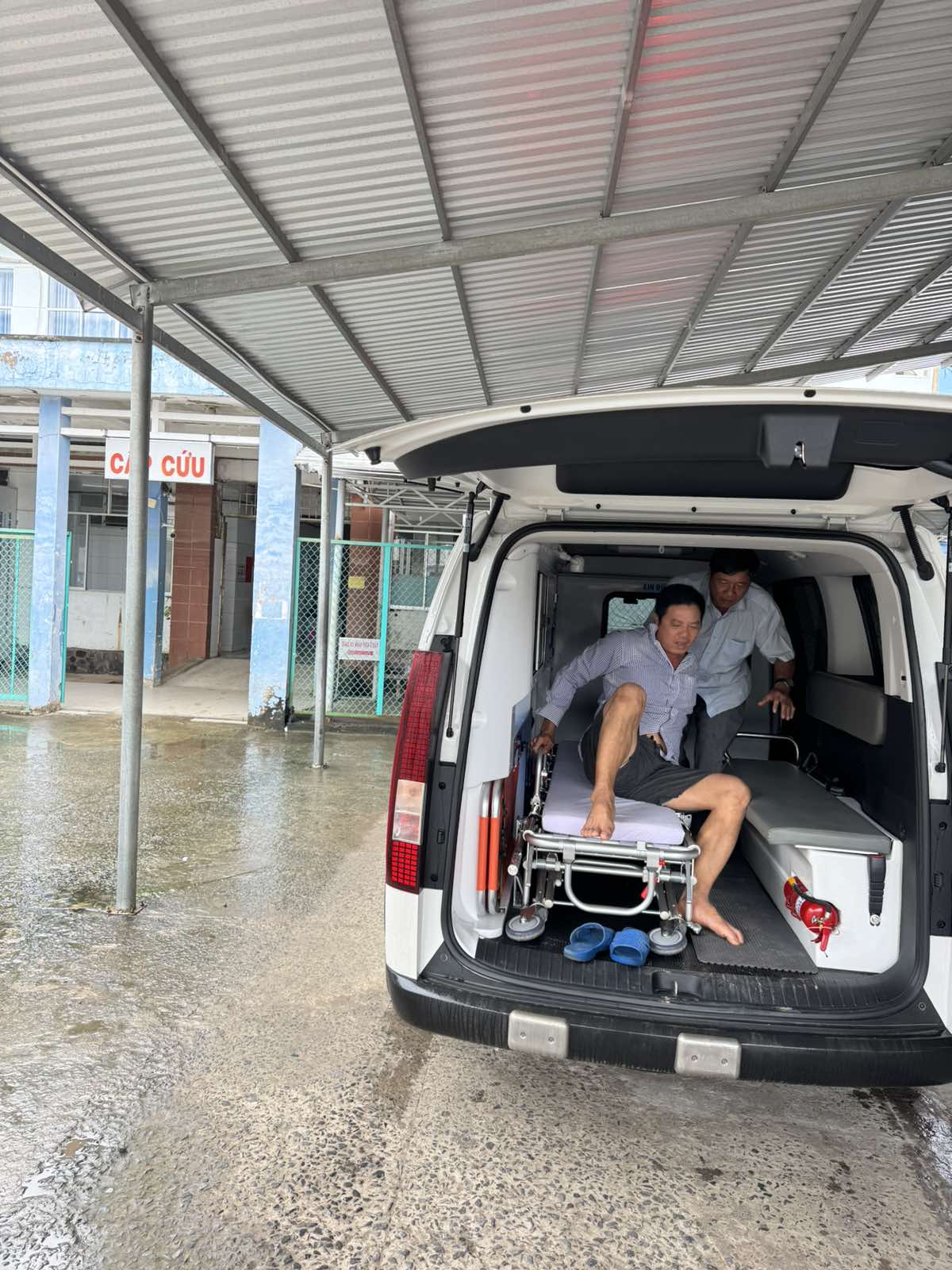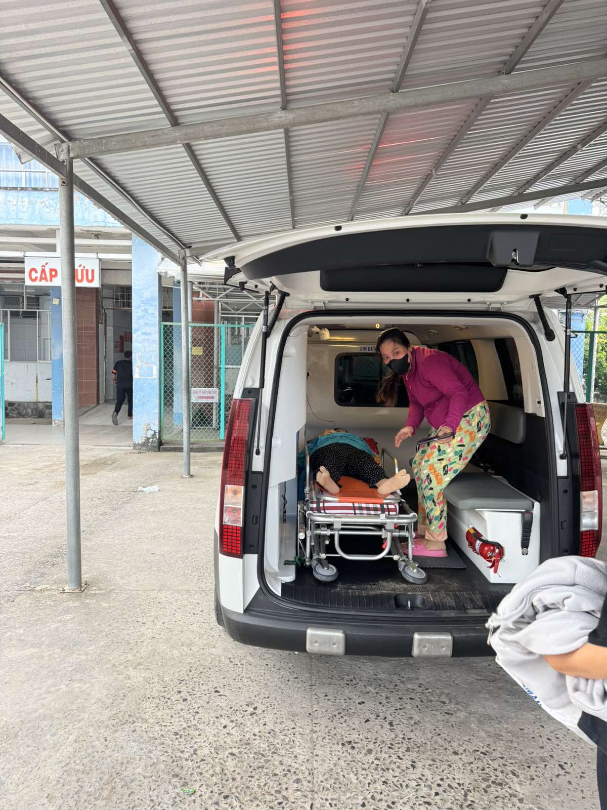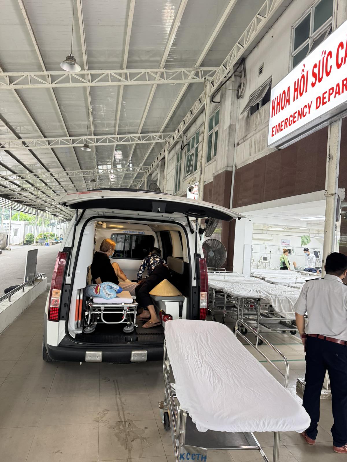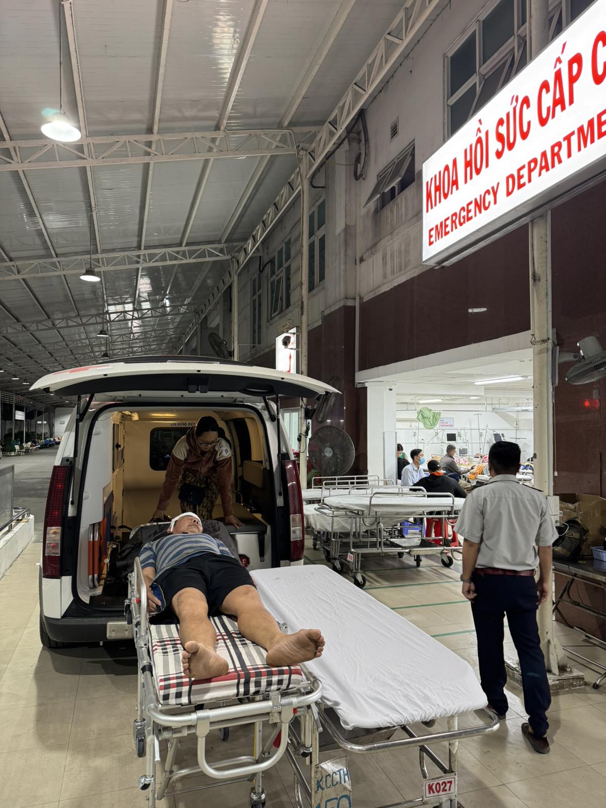 Dưới đây là hình ảnh của từng bệnh nhân lúc lên xe Cấp Cứu và lúc đến nhà thương: