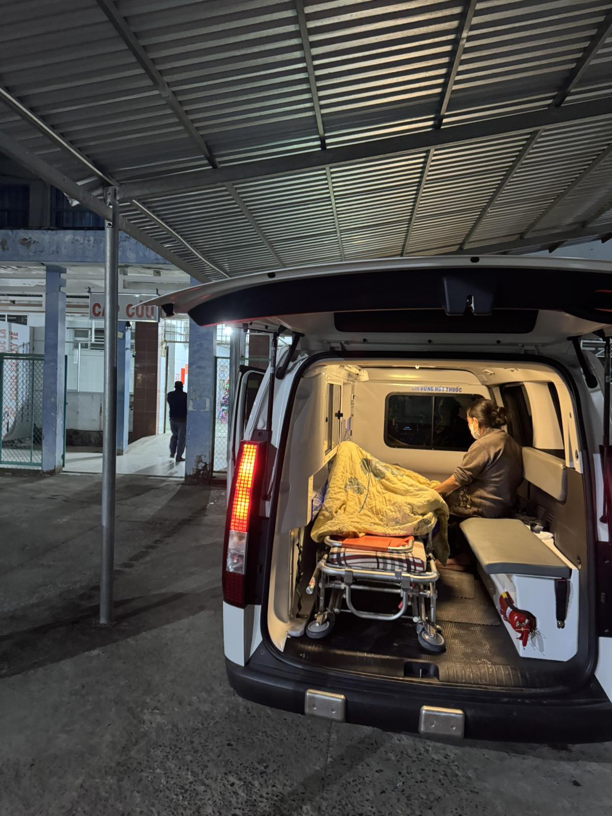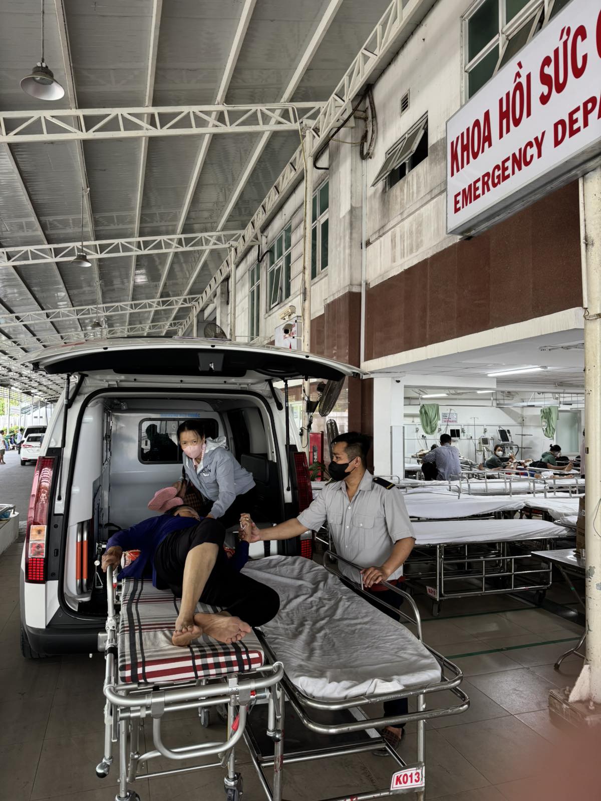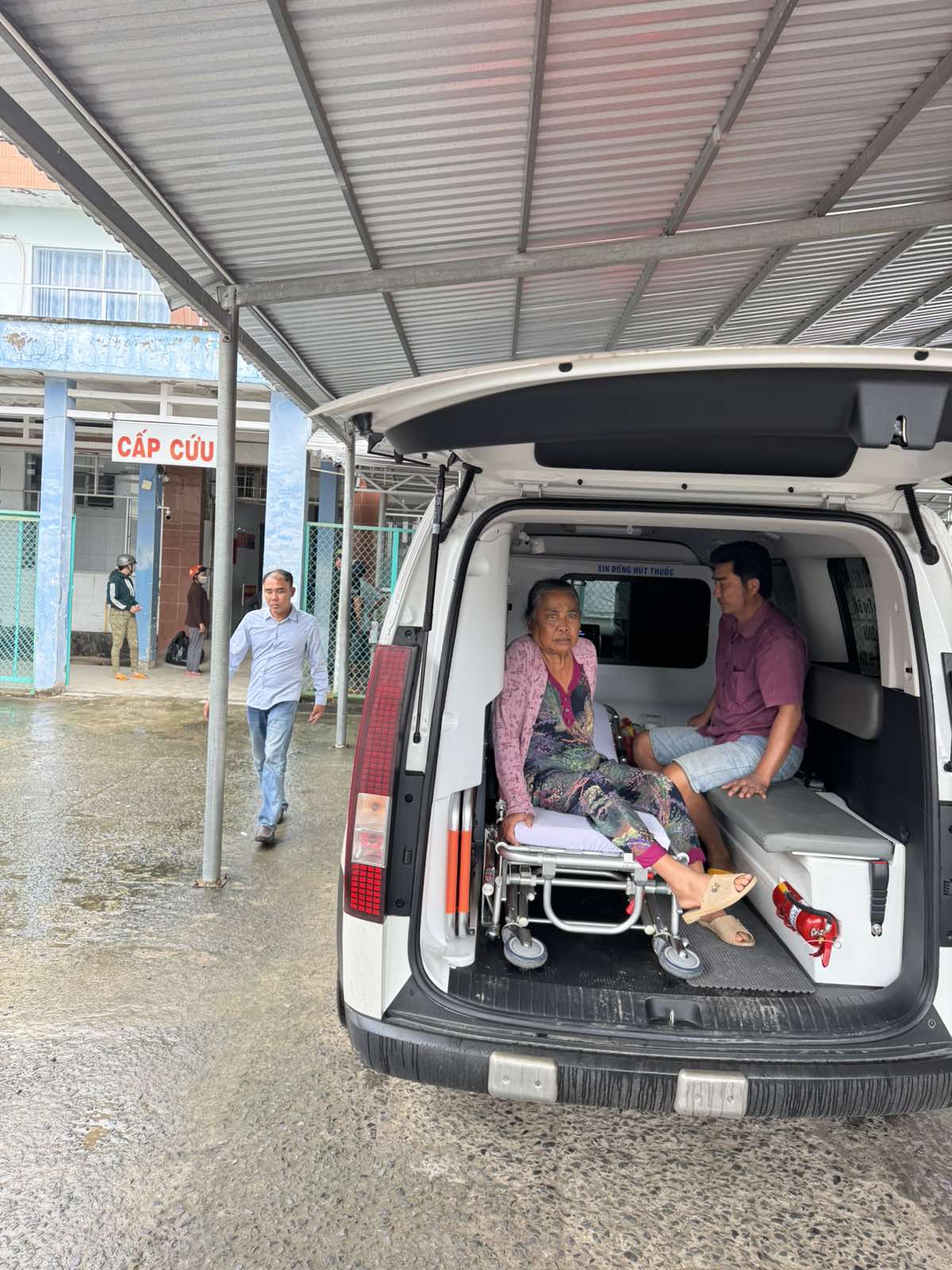 Dưới đây là hình ảnh của từng bệnh nhân lúc lên xe Cấp Cứu và lúc đến nhà thương: