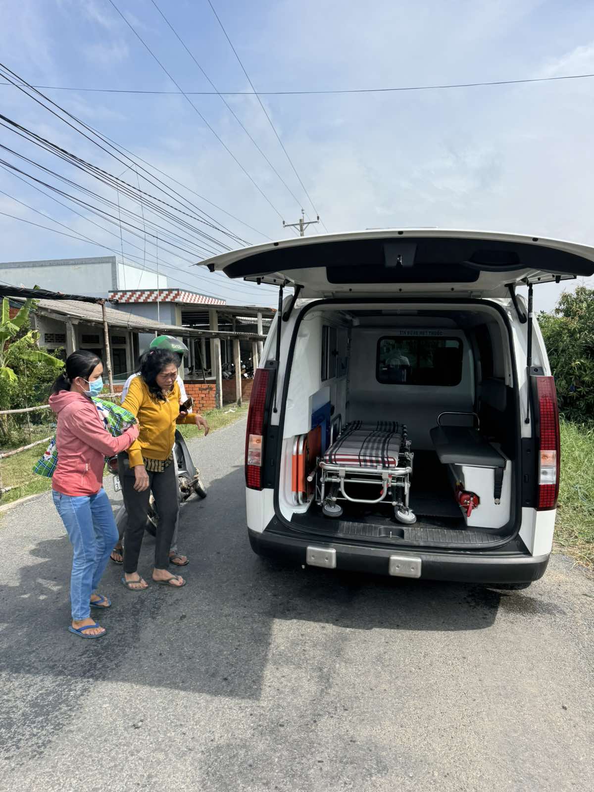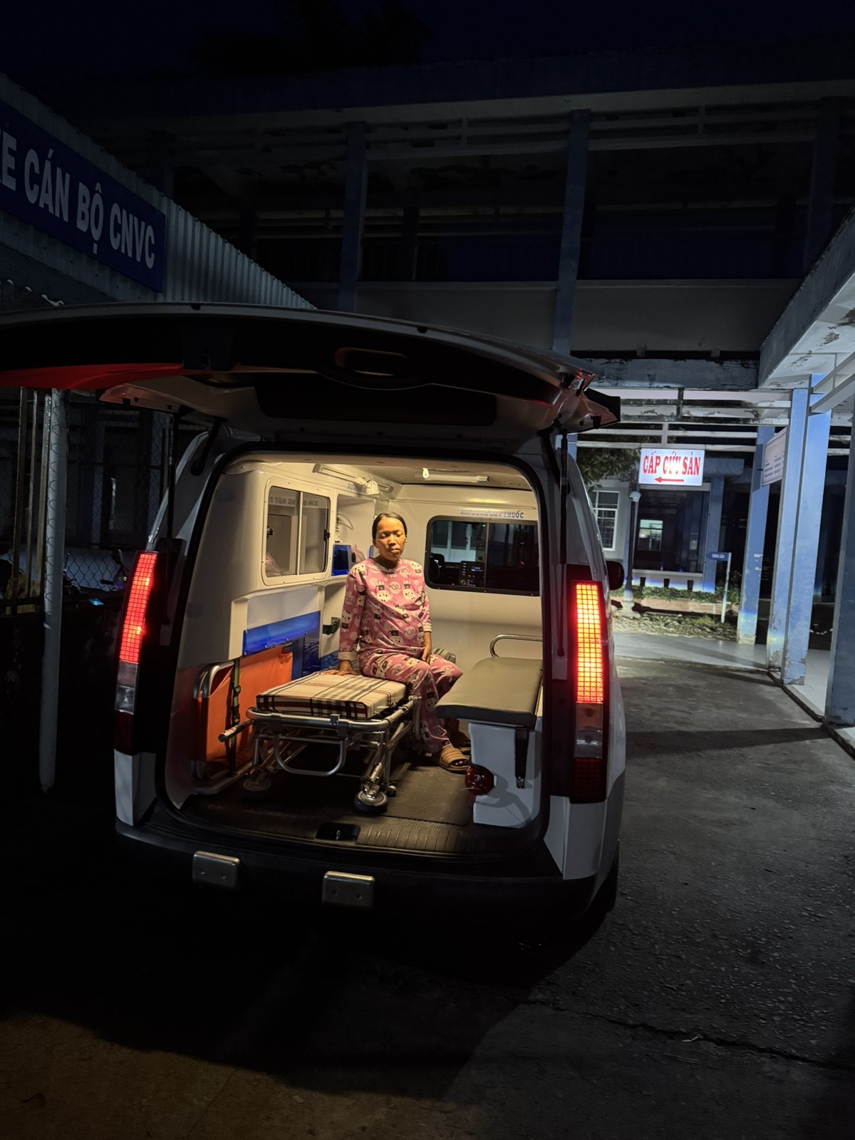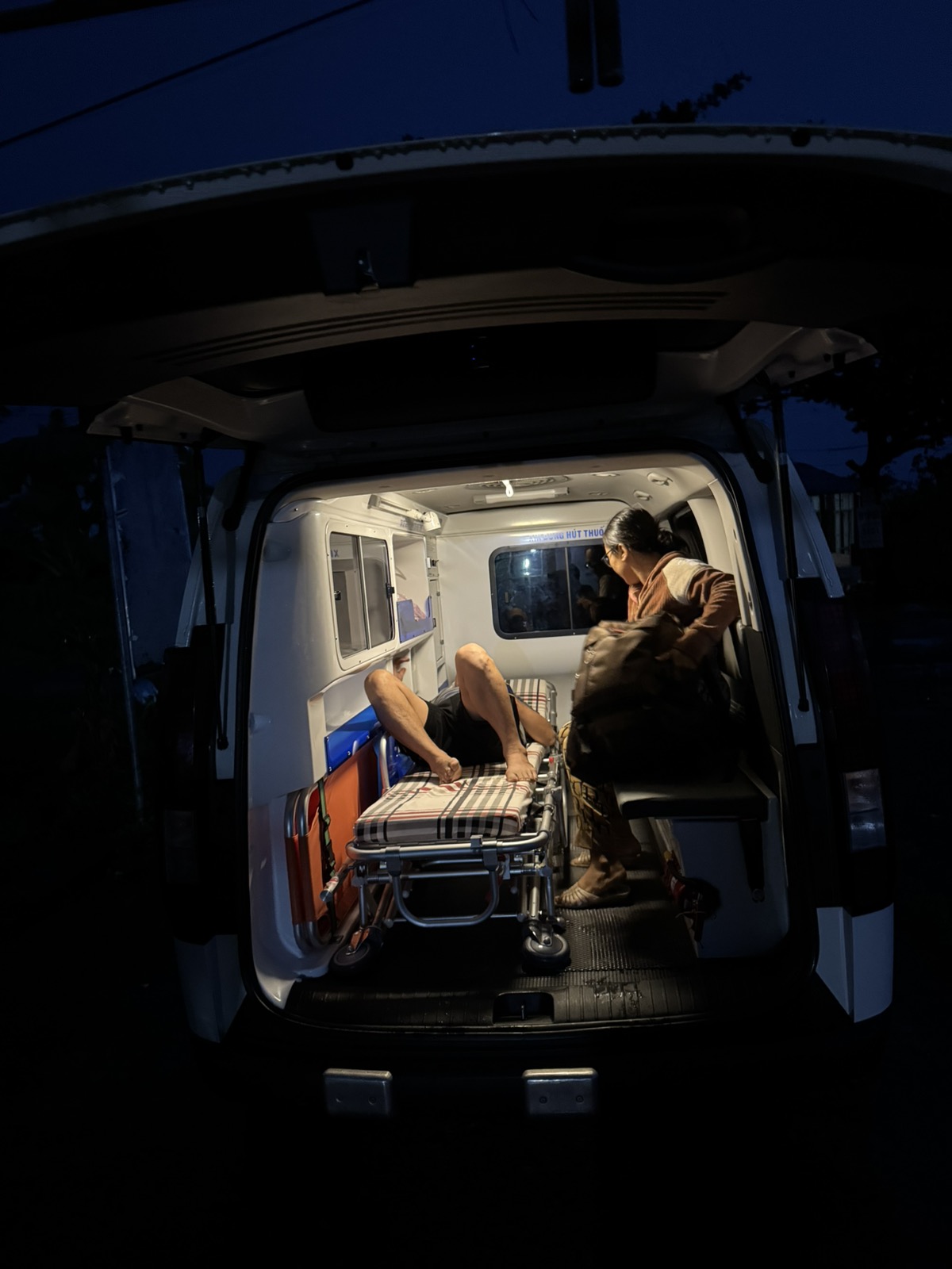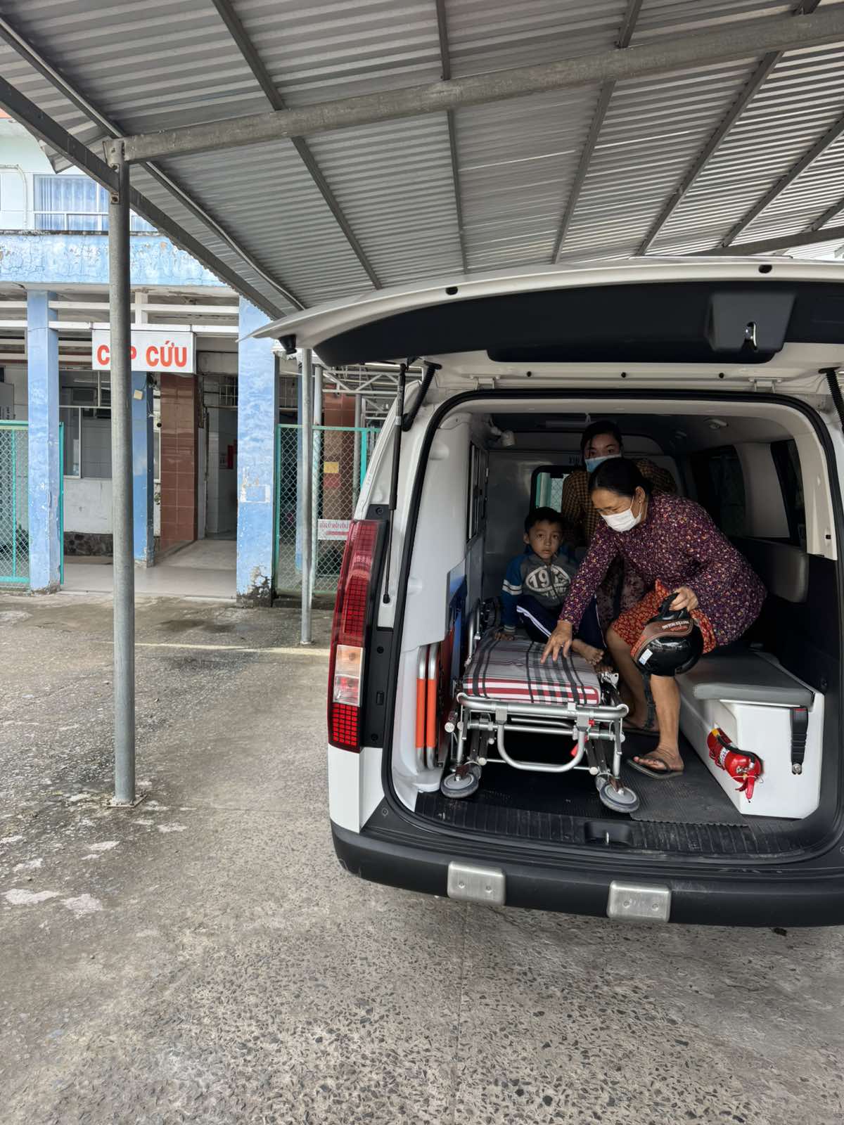 Dưới đây là hình ảnh của từng bệnh nhân lúc lên xe Cấp Cứu và lúc đến nhà thương: