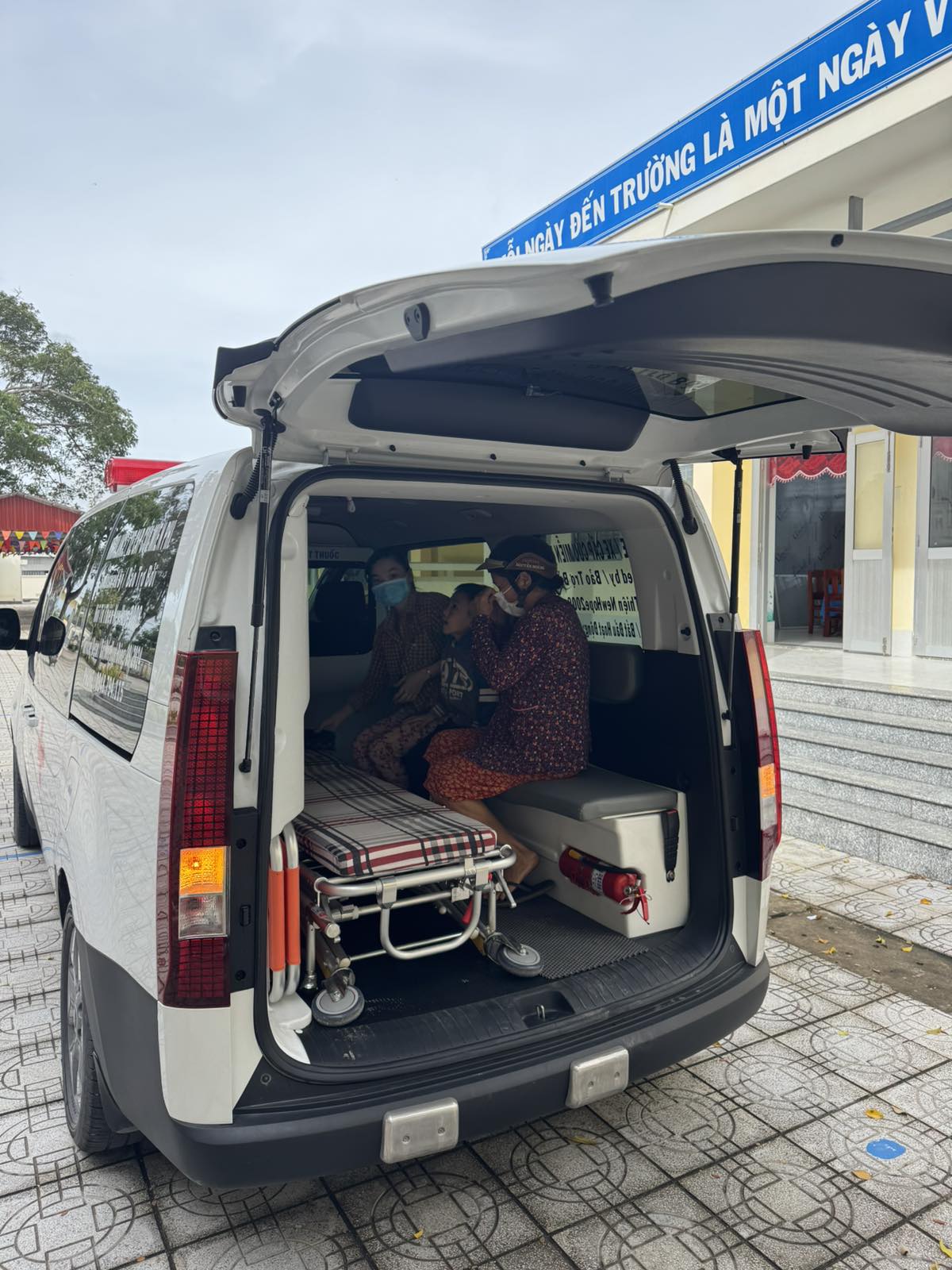 Luu Thien An, 7 years old, lives in Giong Dai, Thanh Phong commune, Thanh Phu district, Ben Tre province. He fainted while going to school. The ambulance took him to Thanh Phu hospital at 8:30 a.m. on December 12, 2024.