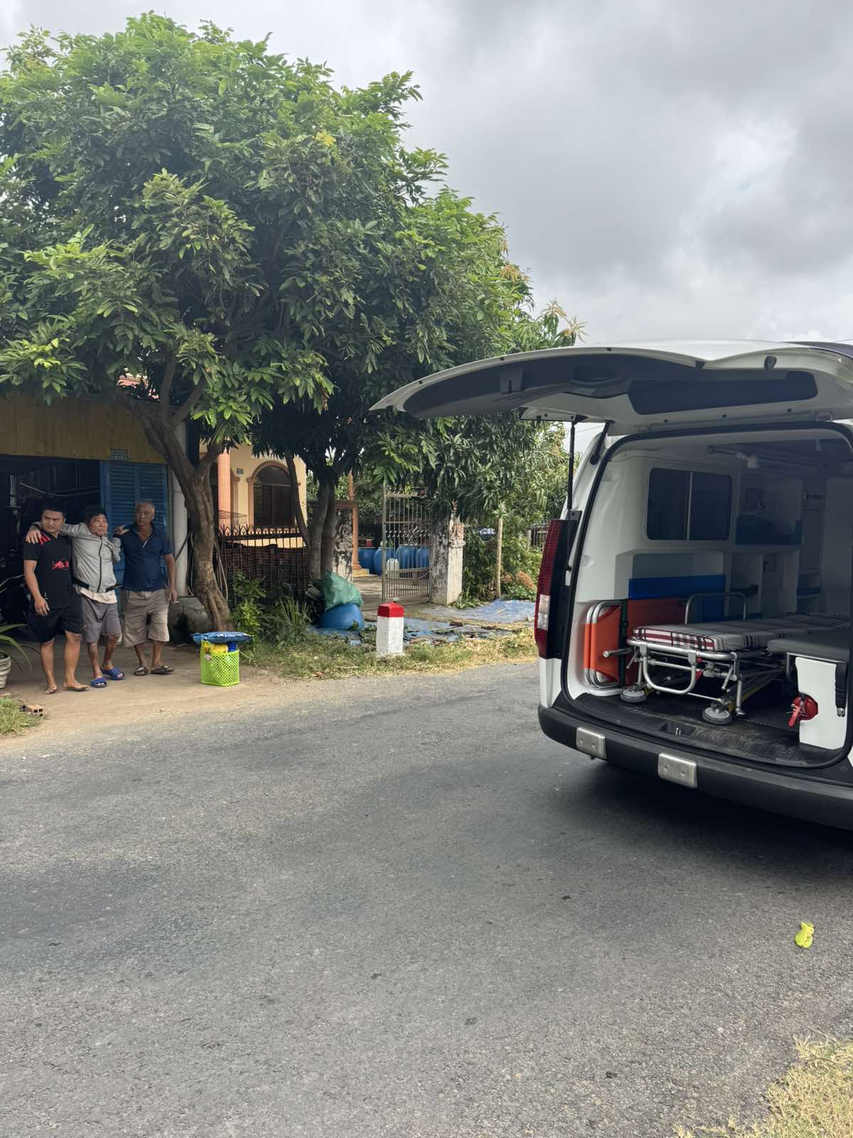 Mr. Nguyen Van Chi, 86 years old, lives in Ca Cac, An Dien commune, Thanh Phu district, Ben Tre province. He has painful complications of diabetes. The ambulance took him to Ben Tre hospital at 7:15 a.m. on December 3, 2024. He currently lives with his children and grandchildren. The staff gave him a bottle of medicated oil.