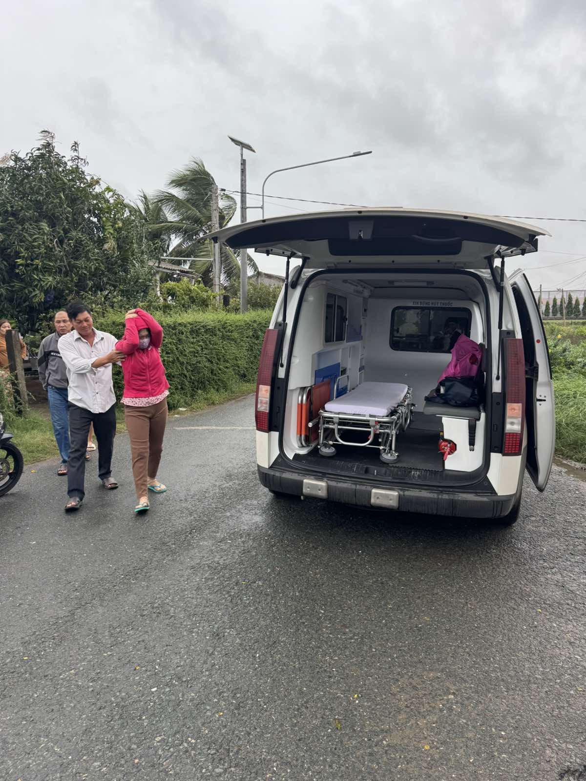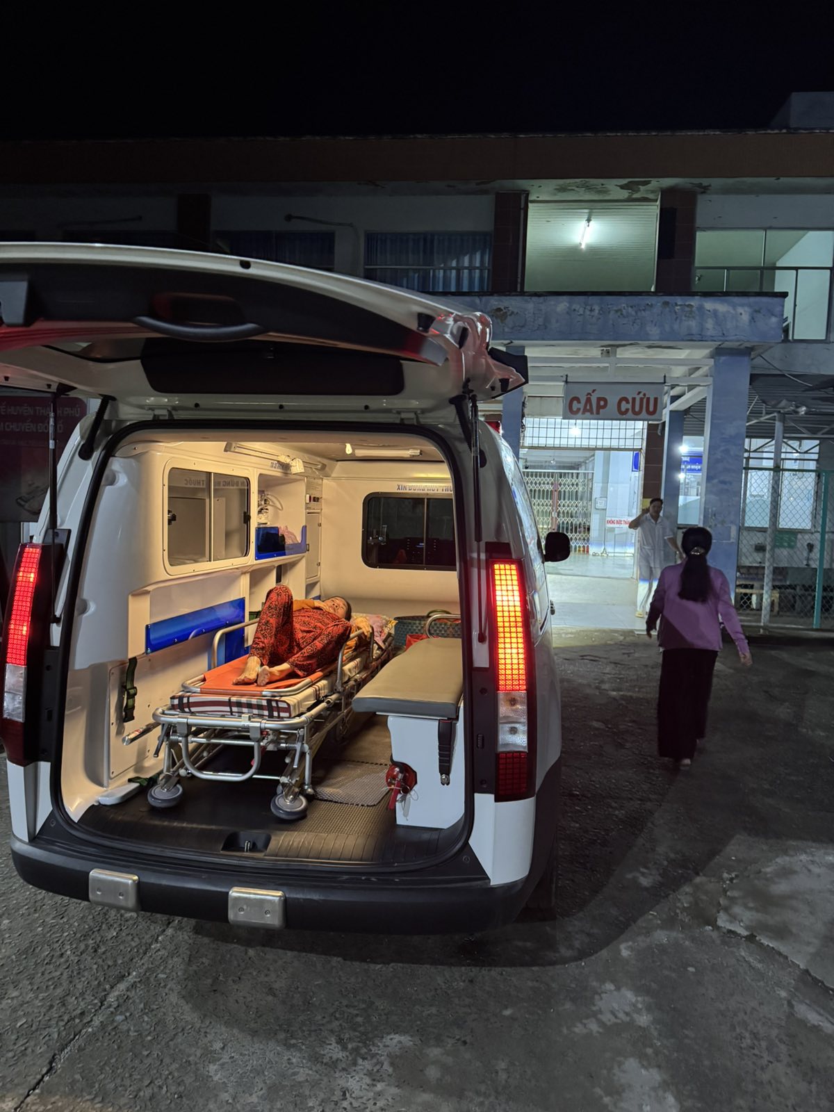 Ms. Nguyen Thi Chung, 52 years old, lives in Ben Trai, An Thuan commune, Thanh Phu district, Ben Tre province. She has high blood pressure and dizziness. The ambulance took her to Thanh Phu hospital at 6:00 p.m. on December 5, 2024. She currently lives with her husband and children.