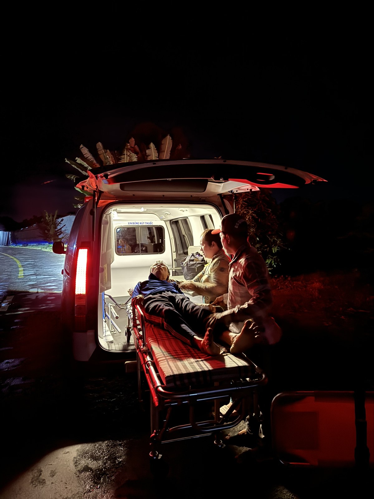 Mr. Bui Van Hao, 85 years old, lives in Khau Bang, Thanh Phong commune, Thanh Phu district, Ben Tre province. He was tired and had difficulty breathing, and was taken to Thanh Phu hospital by ambulance at 1:50 p.m. on November 25, 2024. He currently lives with his children and grandchildren. The staff gave him a bottle of medicated green oil.