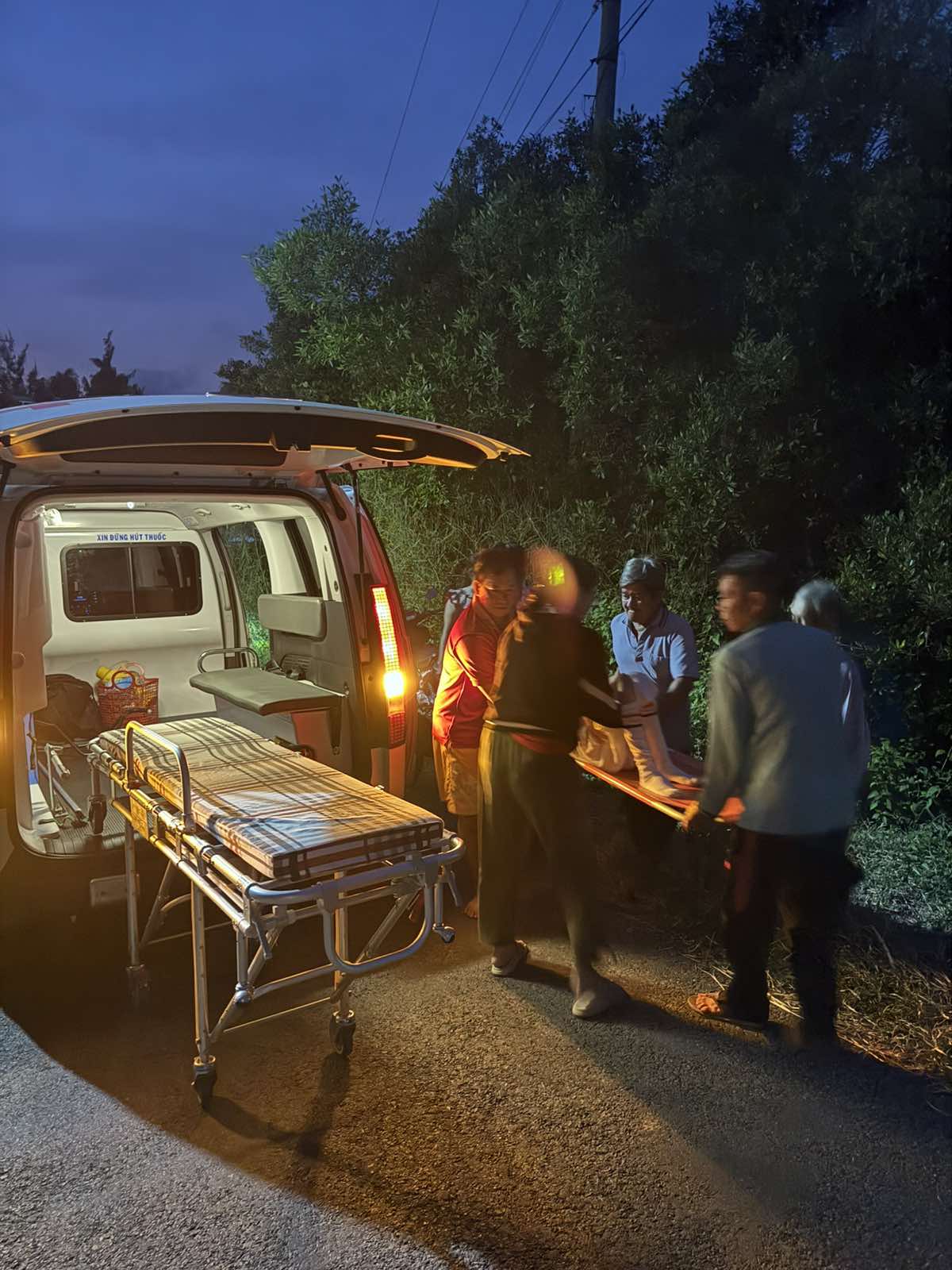 Ms. Van Thi Dieu, 91 years old, lives in Con Tra, Thanh Hai commune, Thanh Phu district, Ben Tre province. She was tired and was taken to Thanh Phu hospital by ambulance at 6:00 p.m. on November 30, 2024. She currently lives with her children and grandchildren. The staff gave her a bottle of medicated green oil.