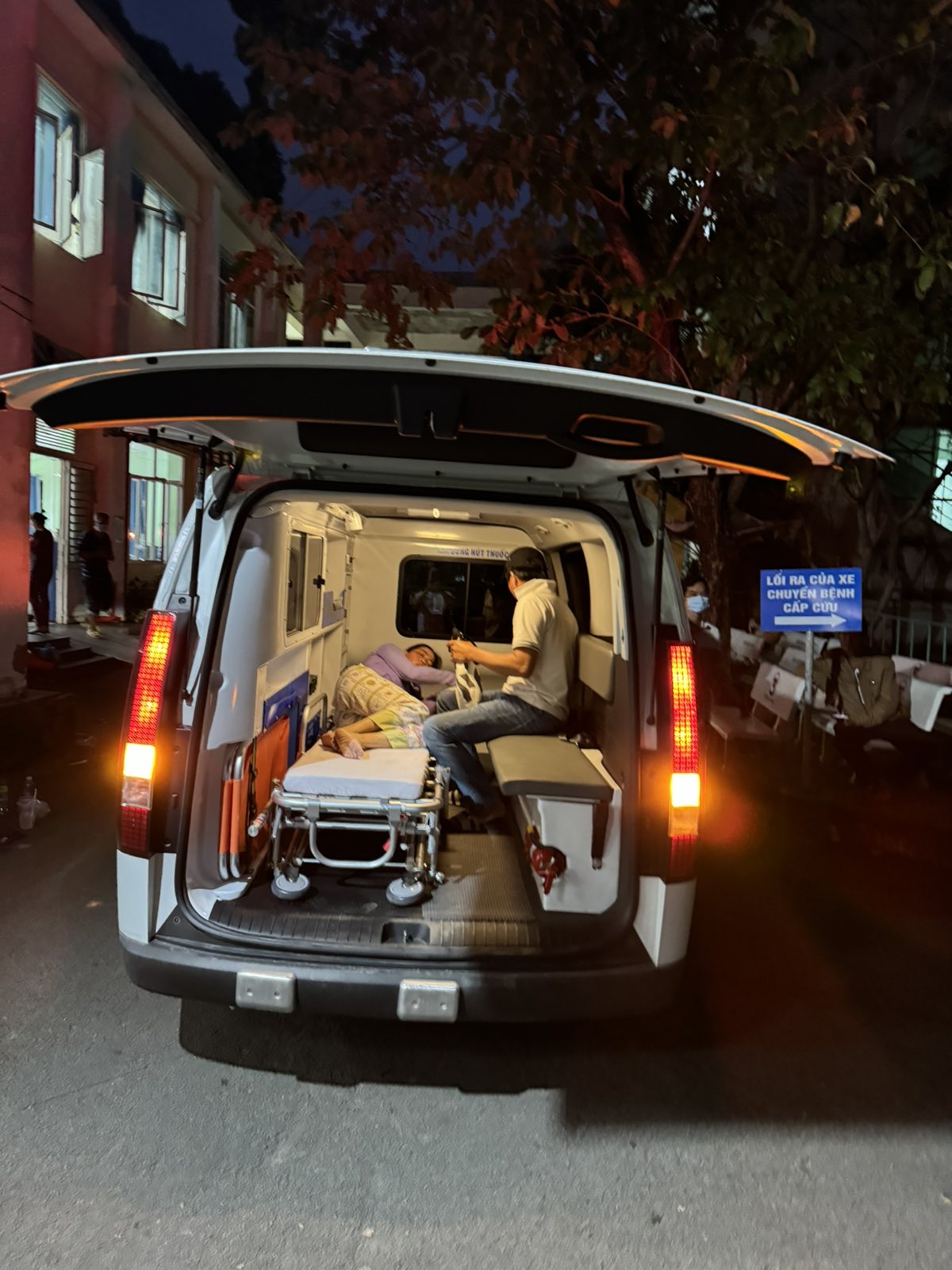 Dưới đây là hình ảnh của từng bệnh nhân lúc lên xe Cấp Cứu và lúc đến nhà thương: