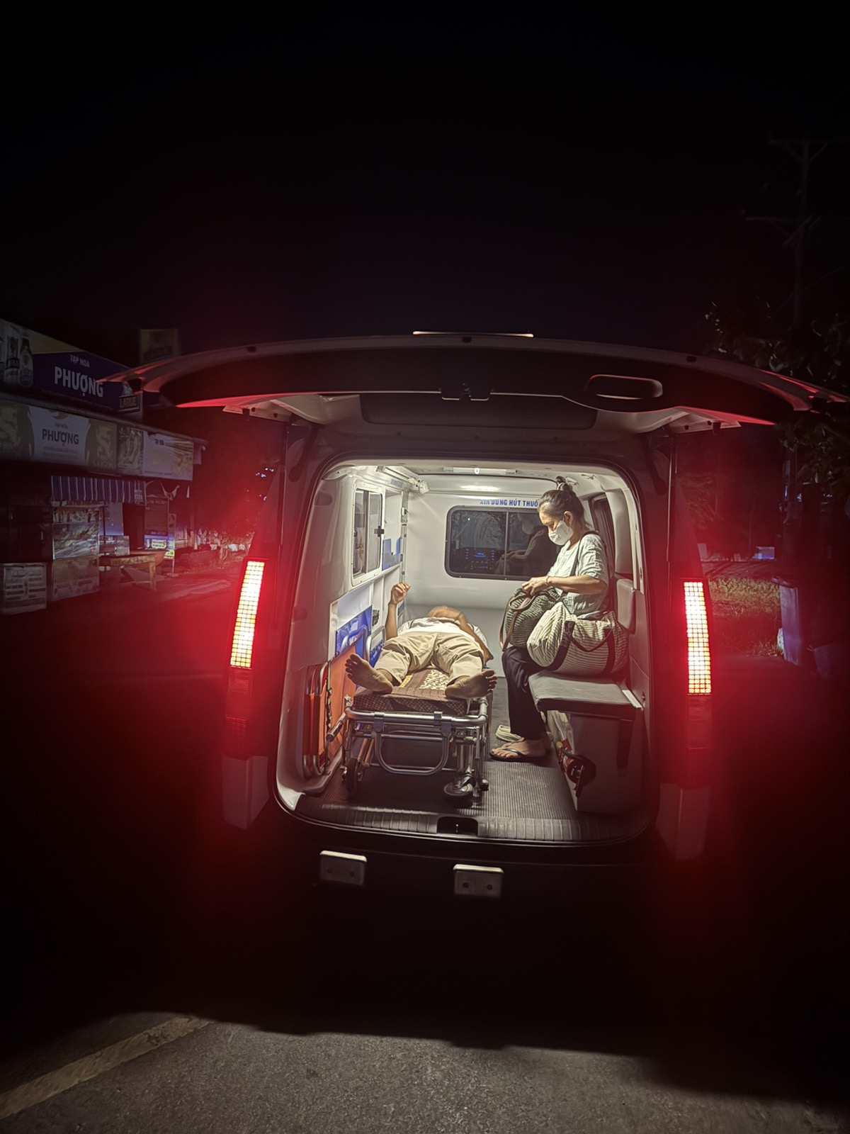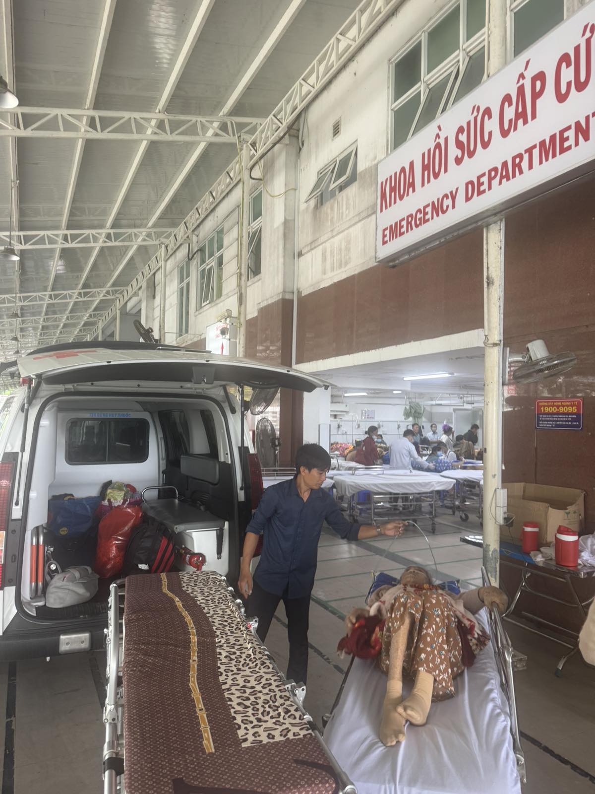 Mrs. Nguyễn Thị Sàn, 69 years old, lives in Cồn Chim, Thạnh Phong Commune, Vĩnh Long Province. She felt unwell and had difficulty breathing due to complications from diabetes. Transported by ambulance to Thạnh Phú Hospital at 6:00 AM on August 23, 2025. She currently lives with her husband and child.