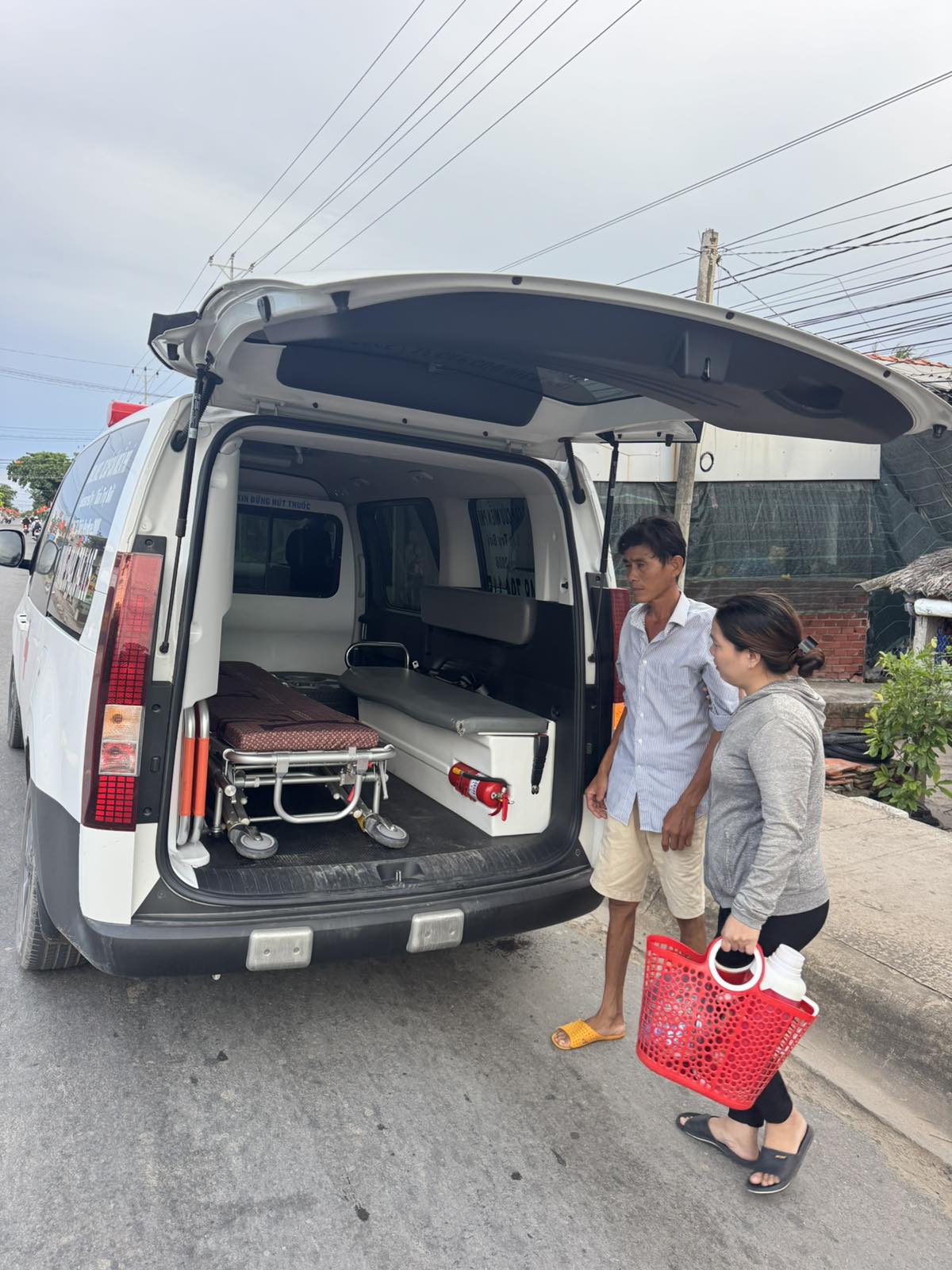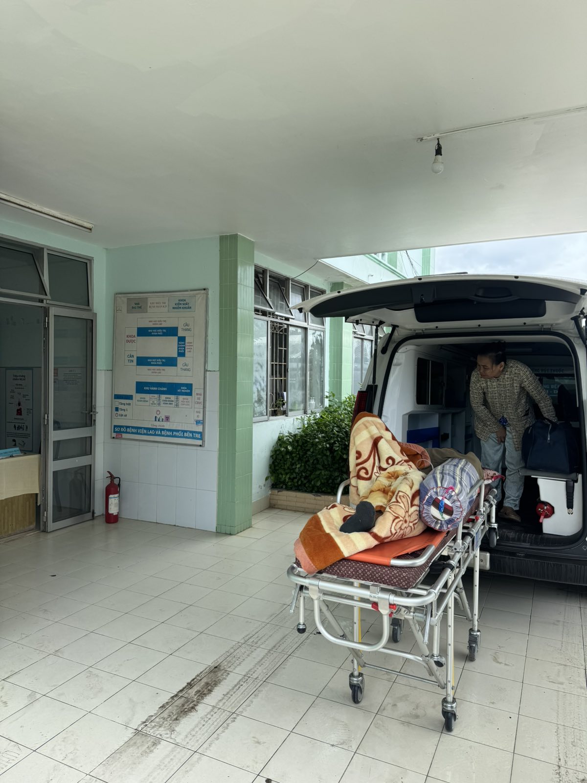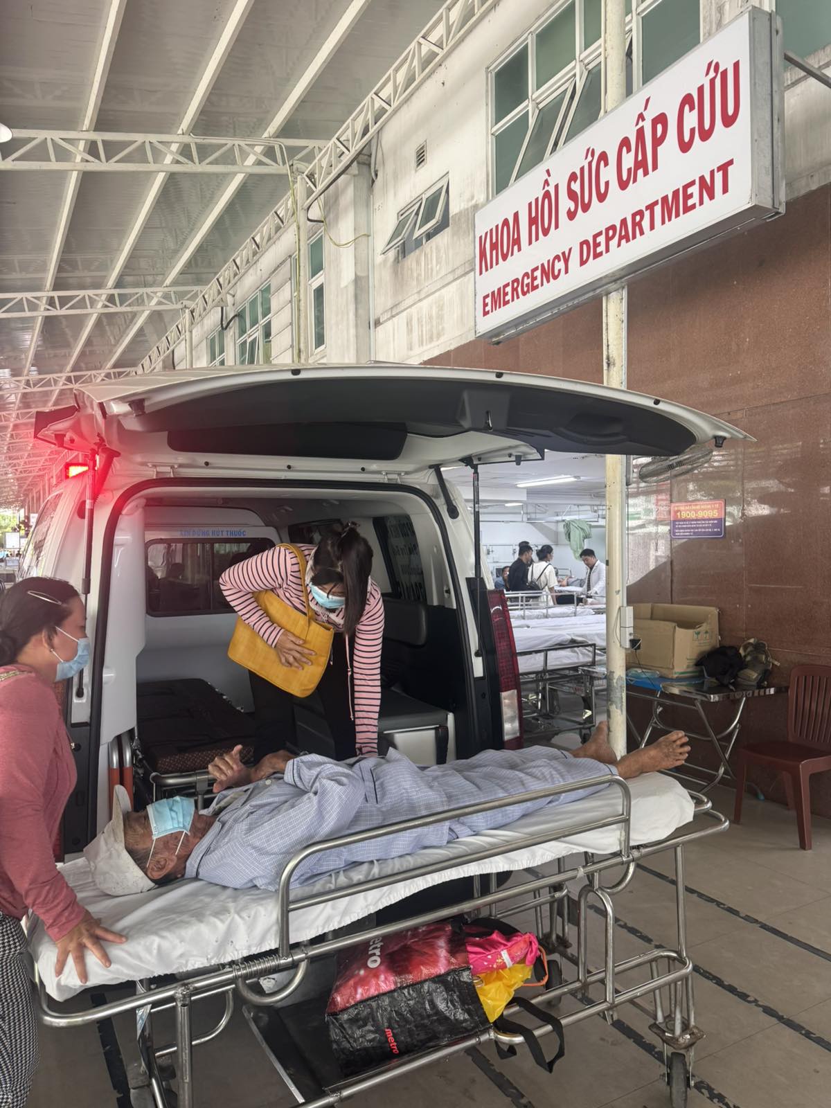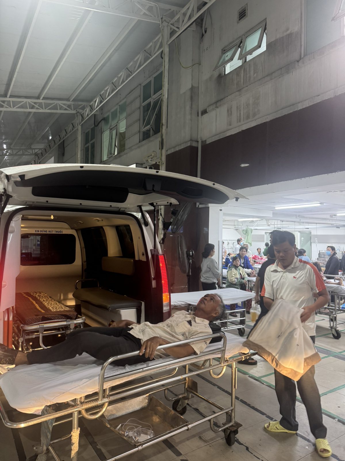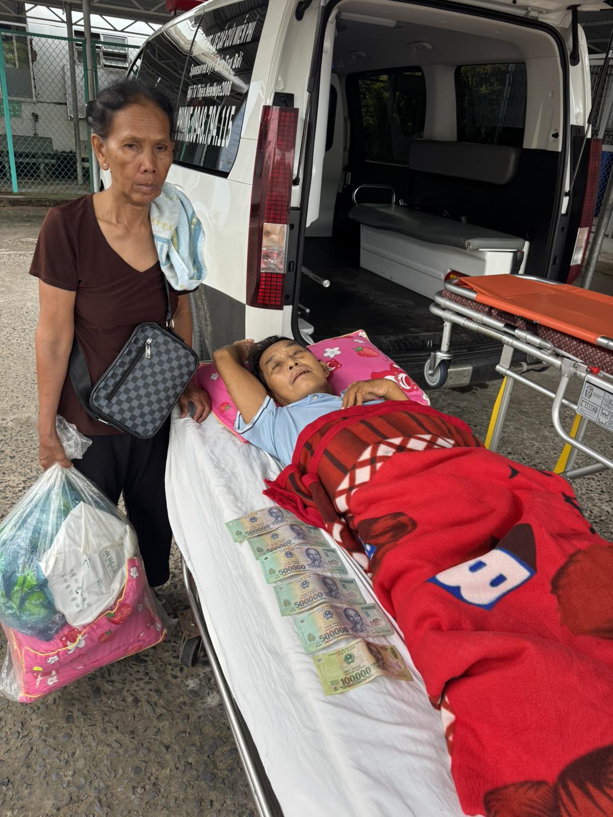 Mr. Đỗ Hoàng Long, 62 years old, lives in Giồng Bàng, Thạnh Phong Commune, Vĩnh Long Province. He previously suffered a stroke that left him paralyzed on one side and is currently vomiting blood. He was transported by ambulance to Thạnh Phú Hospital at 6:30 AM on August 30, 2025. He received a donation of $100 (2,600,000 VND). This amount was kindly donated by Vivian Lê and Erik Tiêu, who were moved by his situation.