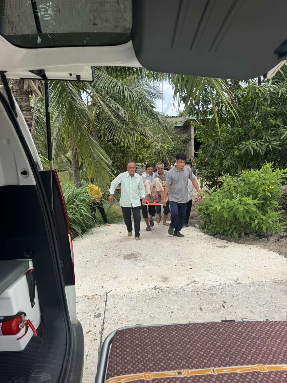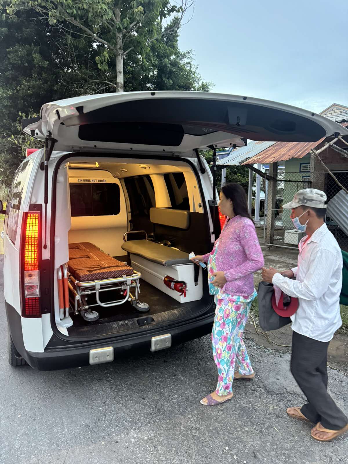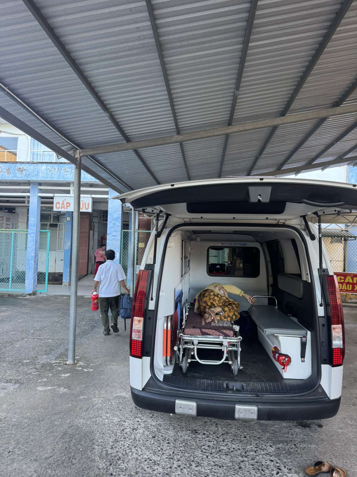 Mrs. Phạm Thị Xạ, 80 years old, lives in Giồng Bàng, Thạnh Phong Commune (formerly Giao Thạnh Commune), Vĩnh Long Province. She felt unwell due to a heart condition. She was transported by ambulance to Thạnh Phú Hospital at 7:45 AM on August 25, 2025. She currently lives with her child.