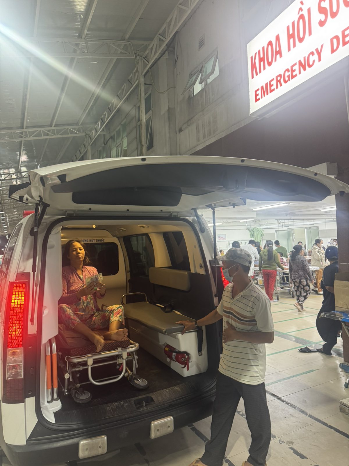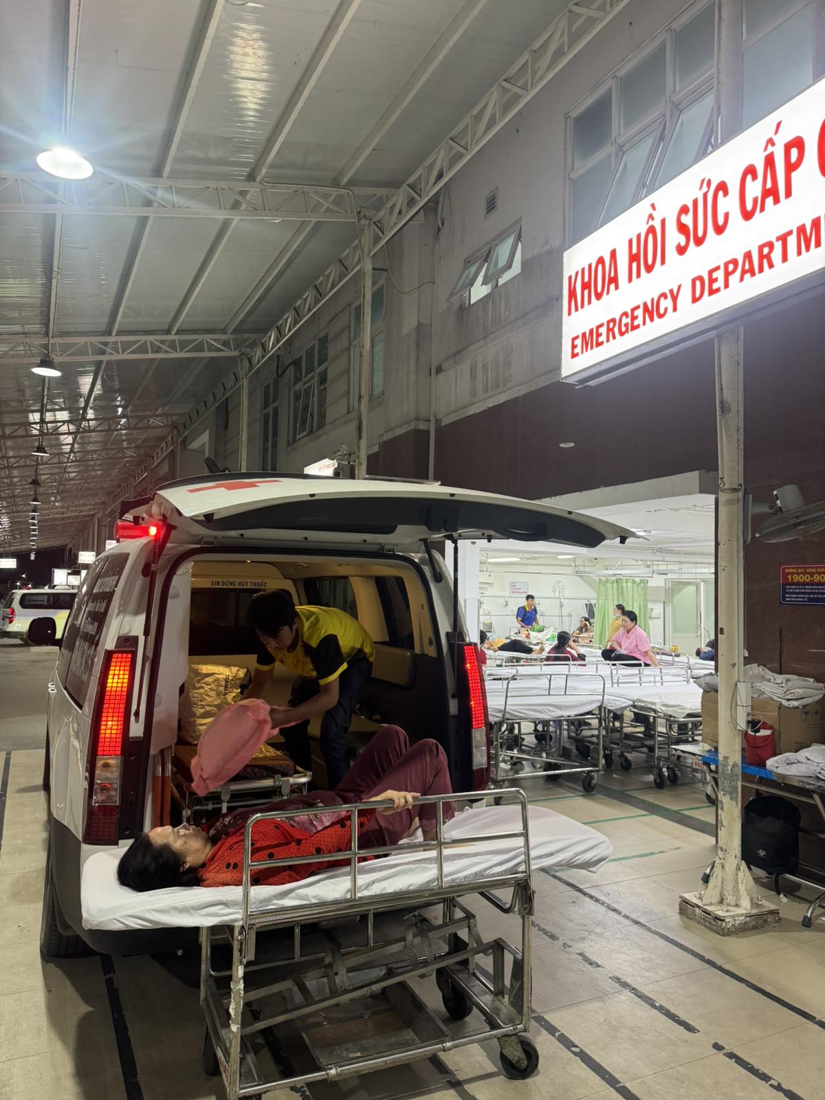 Dưới đây là hình ảnh của từng bệnh nhân lúc lên xe Cấp Cứu và lúc đến nhà thương: