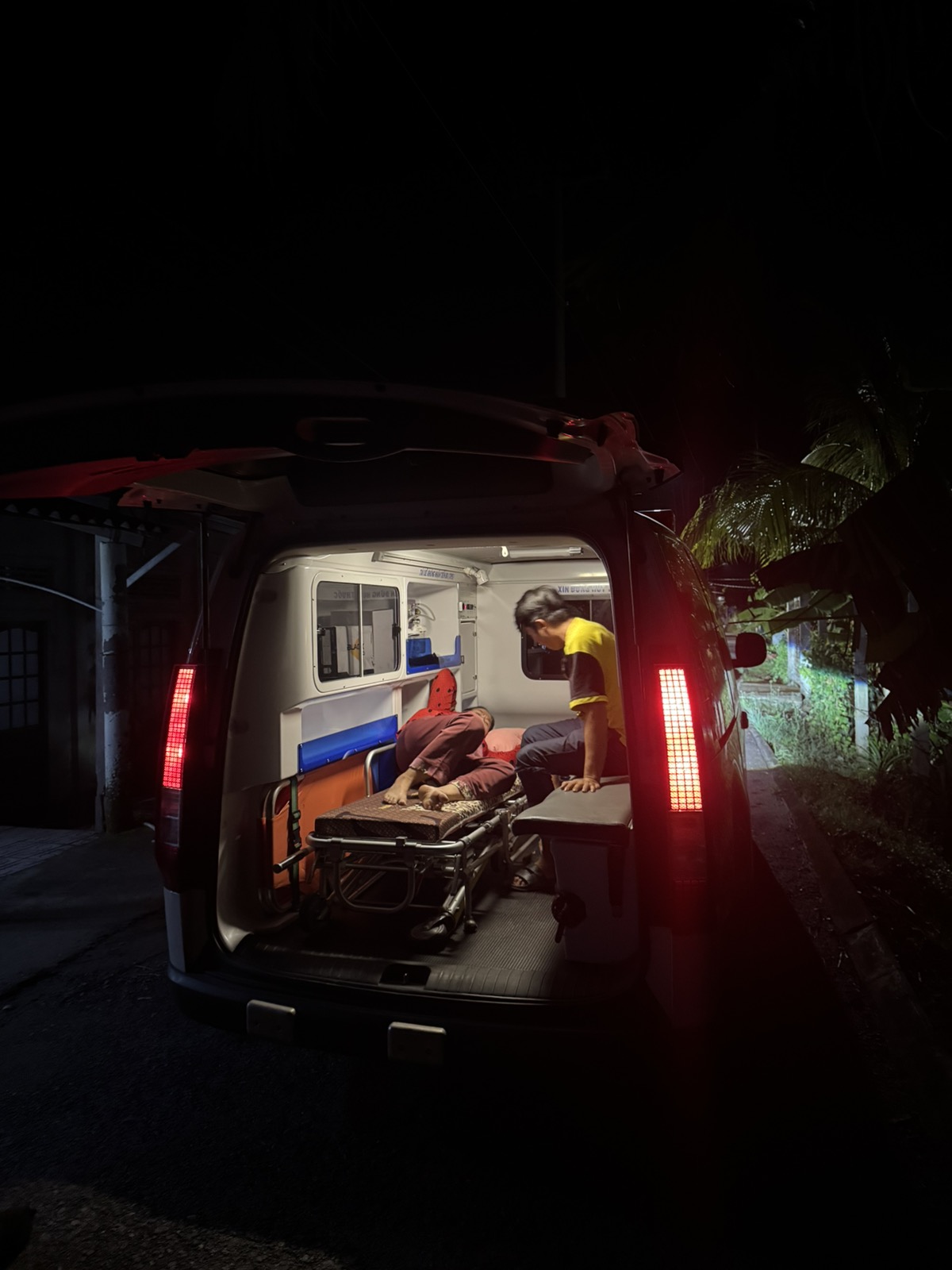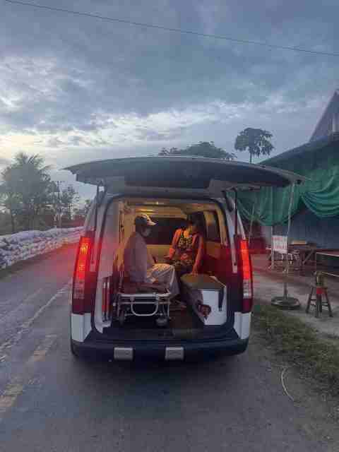 Below are the pictures of patients getting on the ambulance and getting off at the hospital: