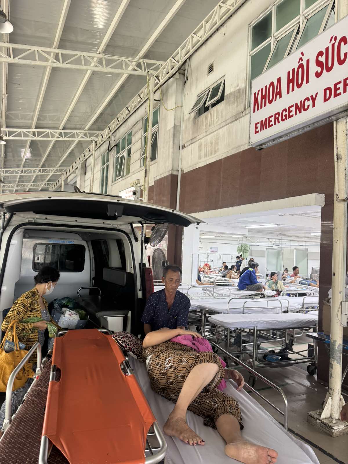 Mrs. Trần Thị Ái, 77 years old, resides in Cồn Điệp, Thạnh Phong Commune, Vĩnh Long Province. She experienced fatigue and shortness of breath. She was transported by ambulance to Bến Tre Hospital at 7:30 PM on August 24, 2025. She currently lives with her child.
