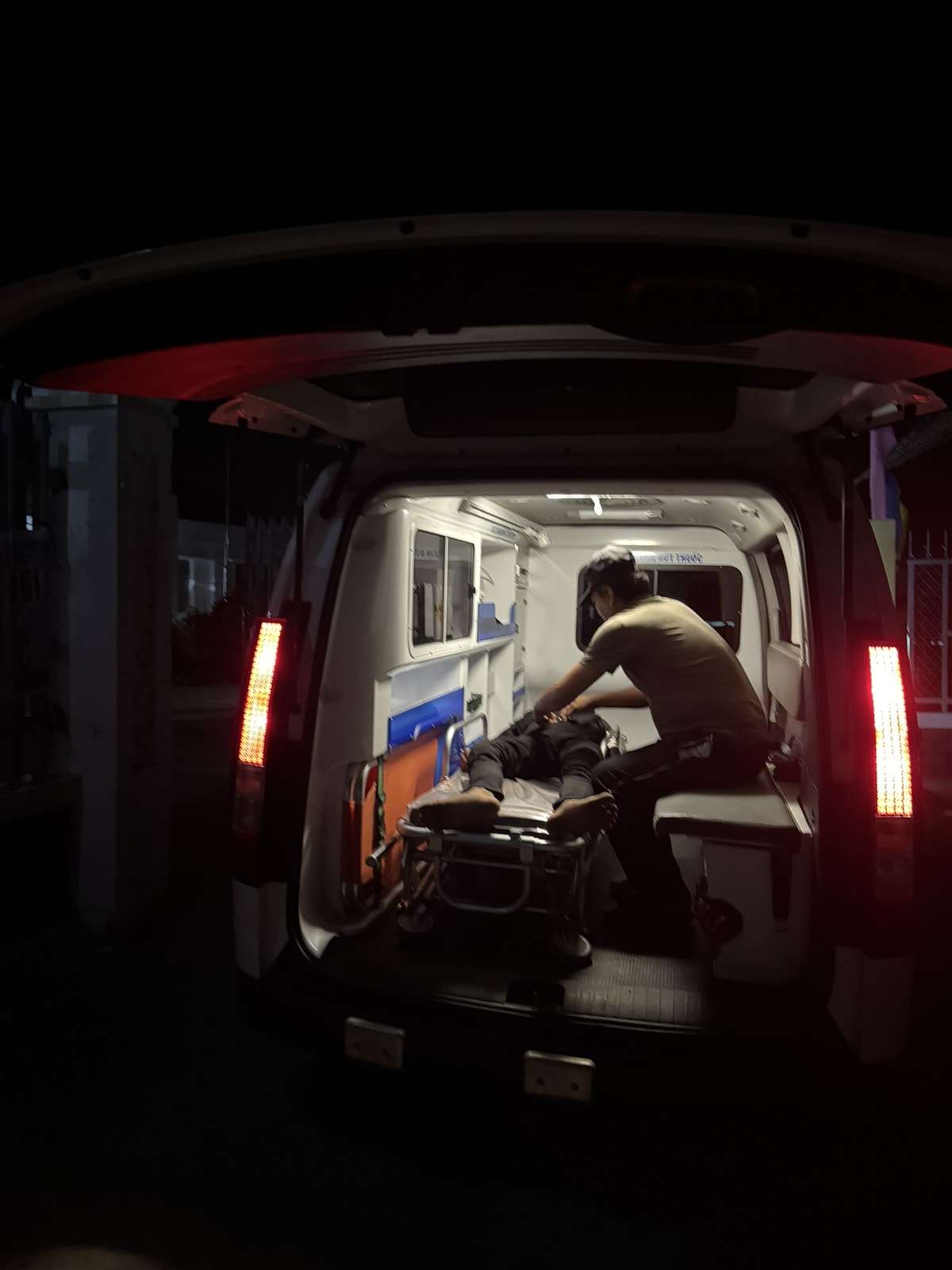 Below are the pictures of patients getting on the ambulance and getting off at the hospital: