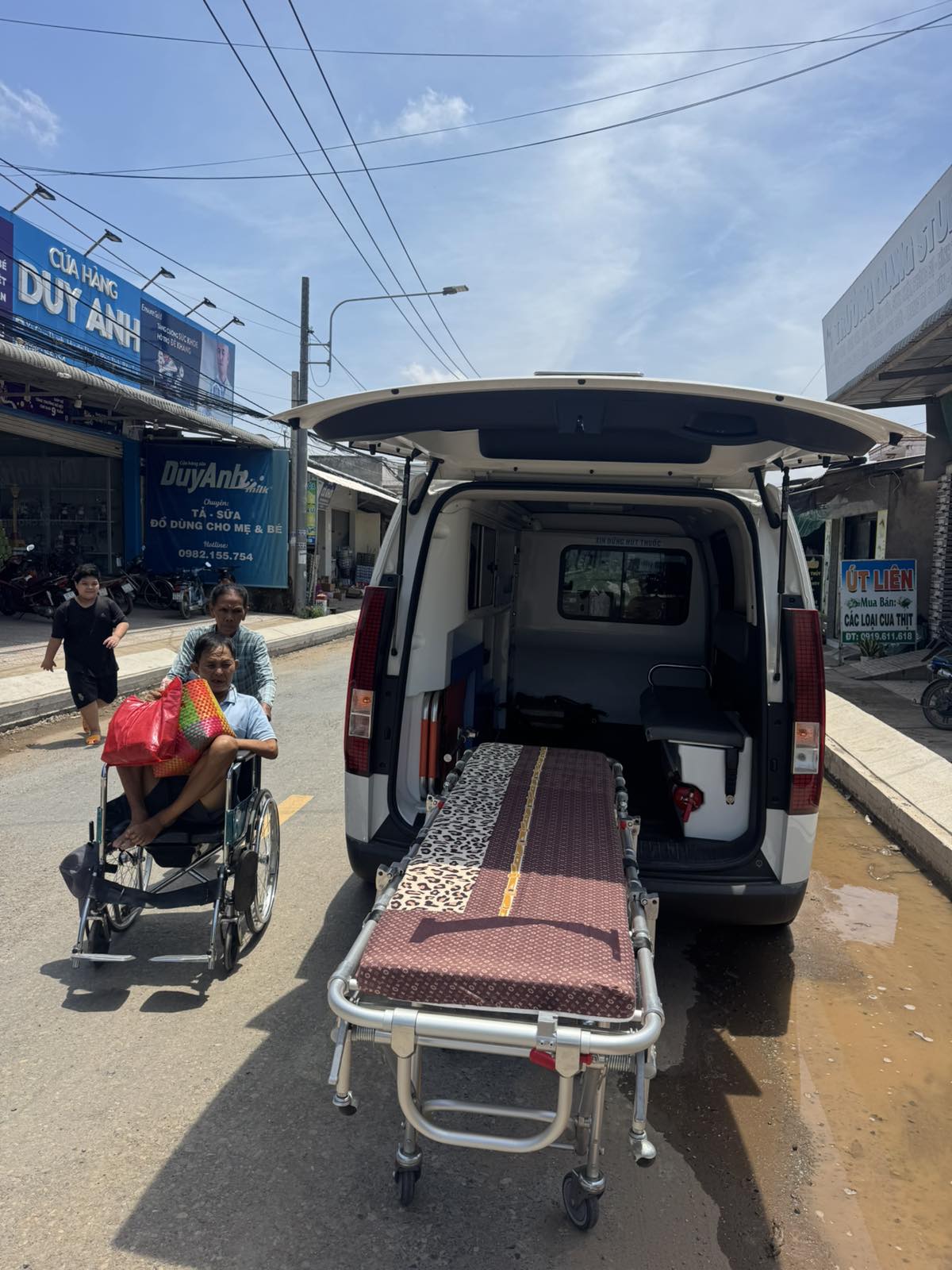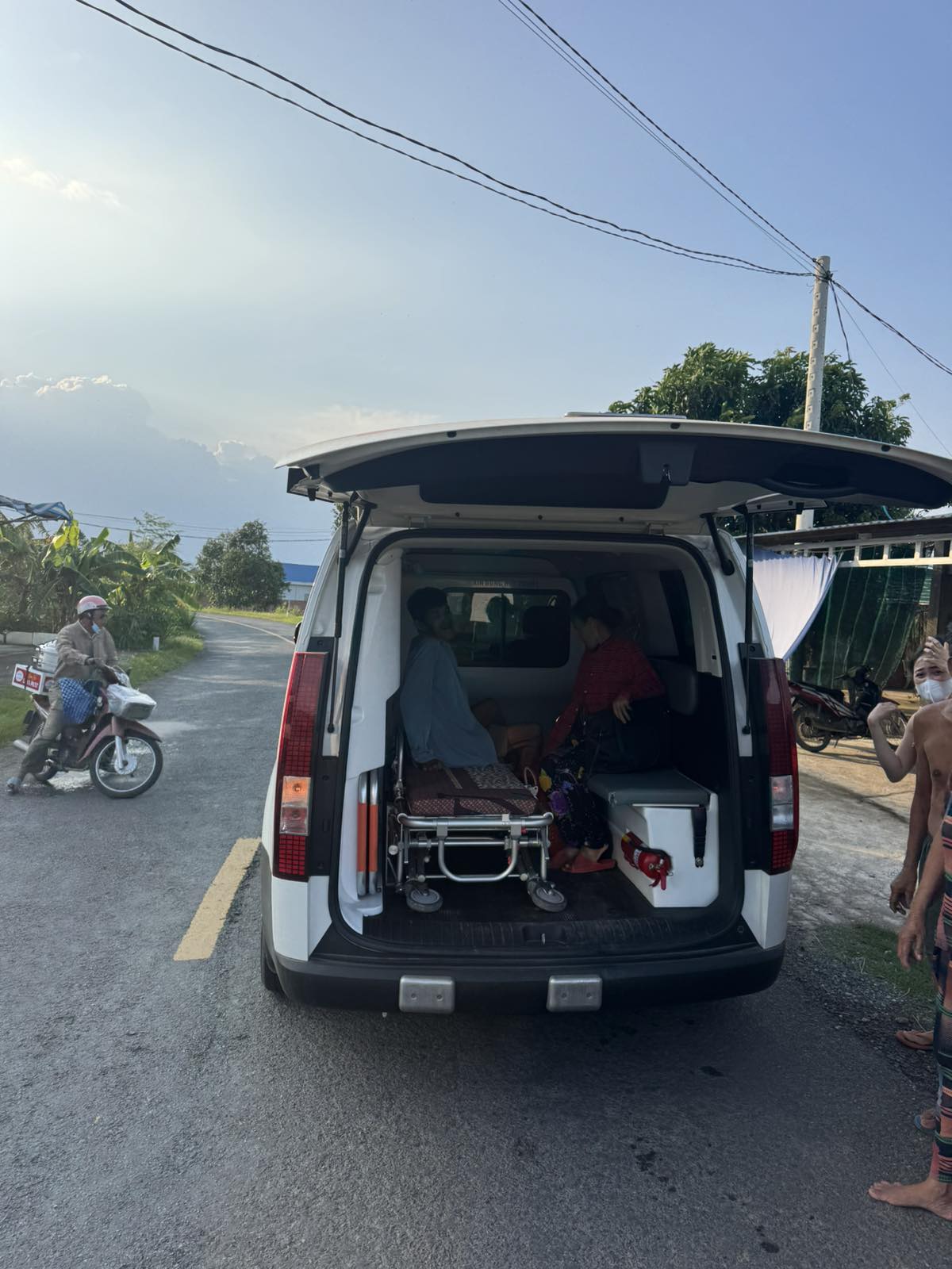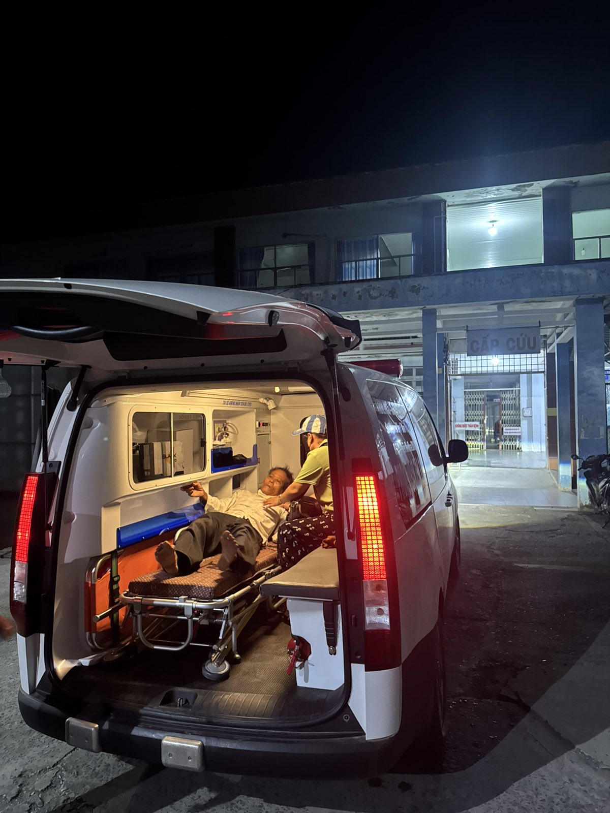 Mrs. Nguyễn Thị Sàn, 69 years old, lives in Cồn Chim, Thạnh Phong commune, Vĩnh Long province. She experienced fatigue and shortness of breath due to diabetes complications. An ambulance transported her to Thạnh Phú Hospital at 6:30 AM on August 5, 2025. She currently lives with her husband and child.
