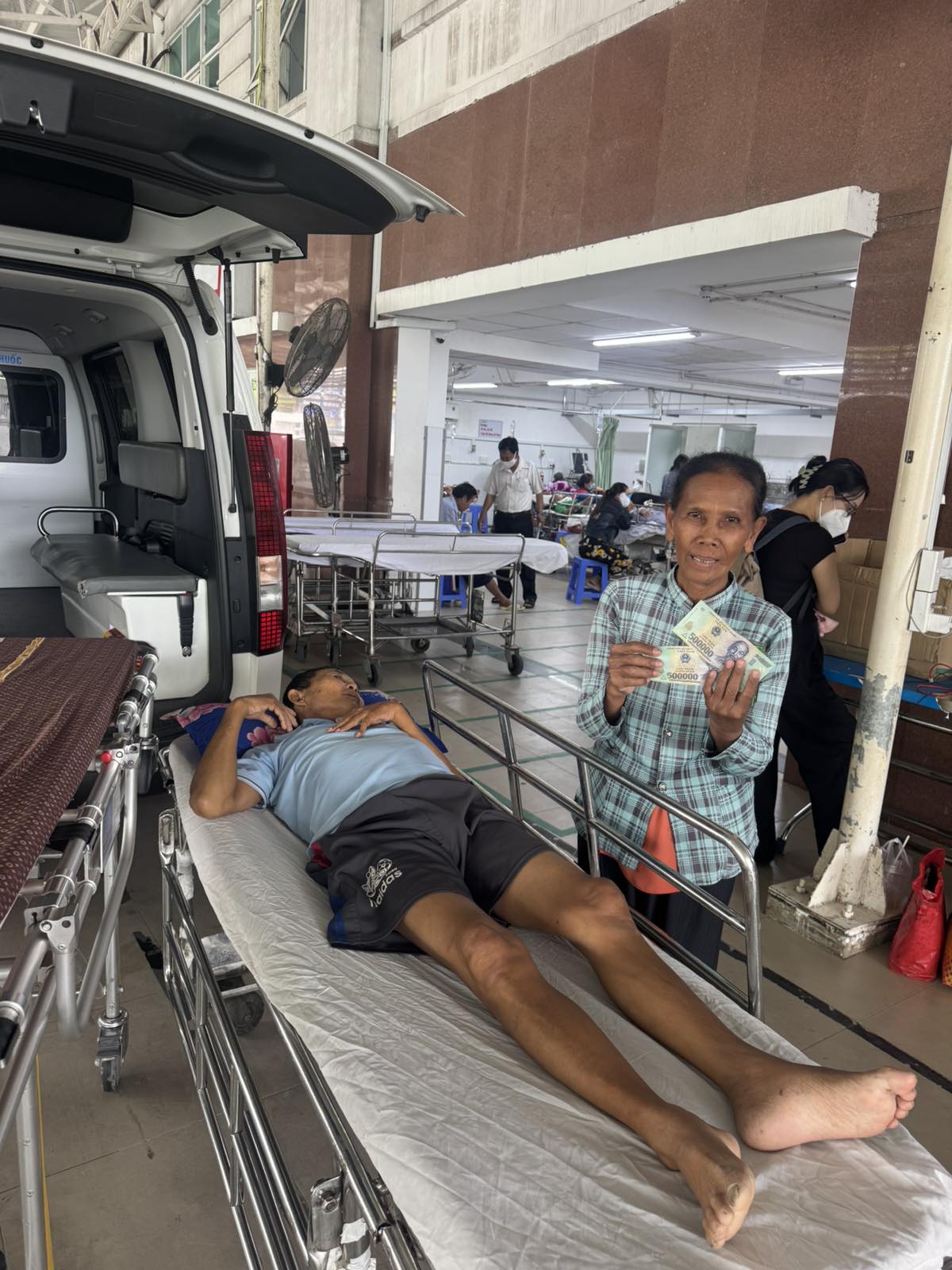 Mr. Đỗ Hoàng Long, 62 years old, lives in Giồng Bàng, Thạnh Phong commune, Vĩnh Long province. He had a stroke that left him paralyzed on one side and now also experiences seizures. He was taken by ambulance to Bến Tre Hospital at 12:40 PM on August 10, 2025. He and his wife have no children. They sell lottery tickets daily. He was given a bottle of medicated green oil and VND 1,000,000.