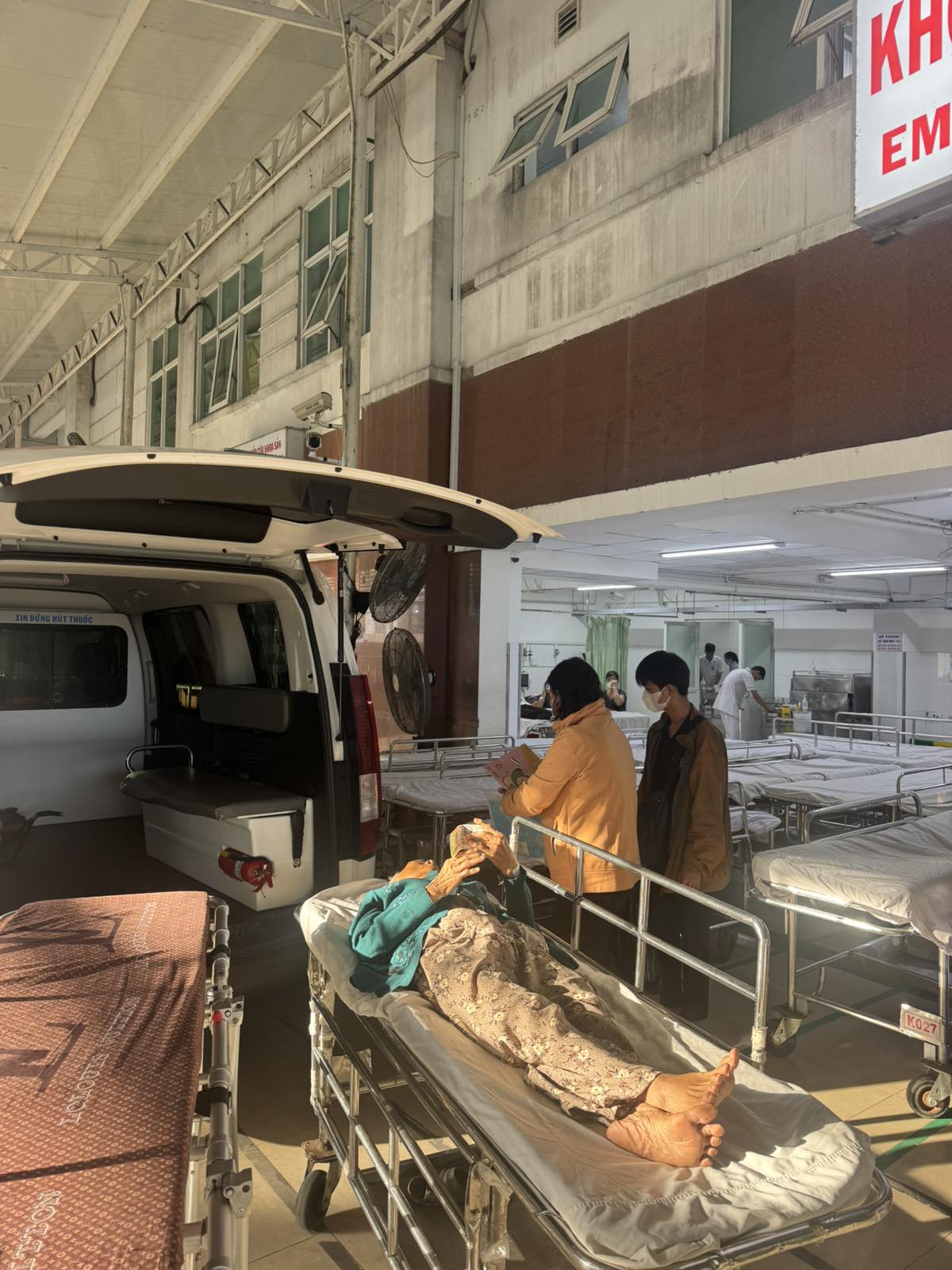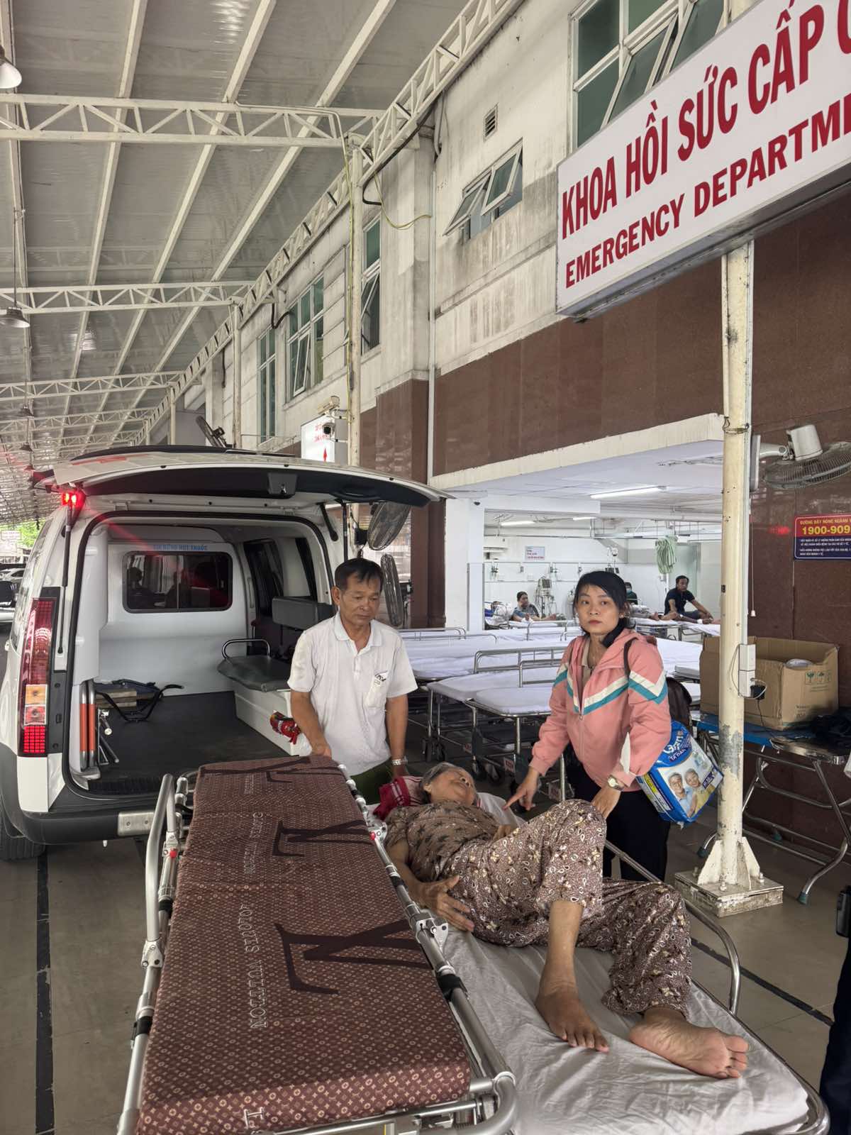 Mrs. Trịnh Thị Kim, 66 years old, lives in Cồn Lớn, Thạnh Phong commune, Vĩnh Long province. She became ill due to complications from diabetes and was taken by ambulance to Bến Tre Hospital at 2:20 AM on August 5, 2025. She currently lives with her children and grandchildren.