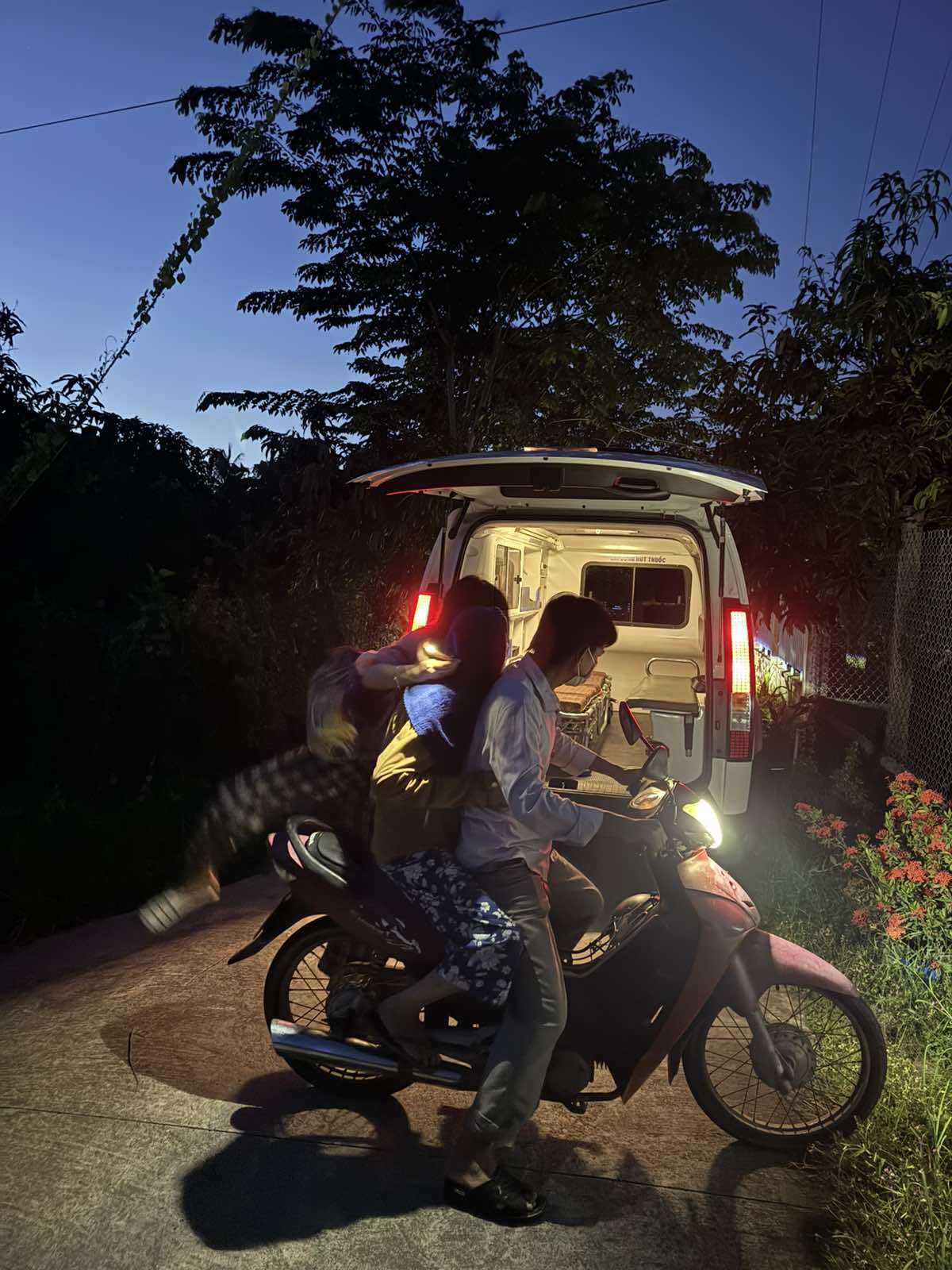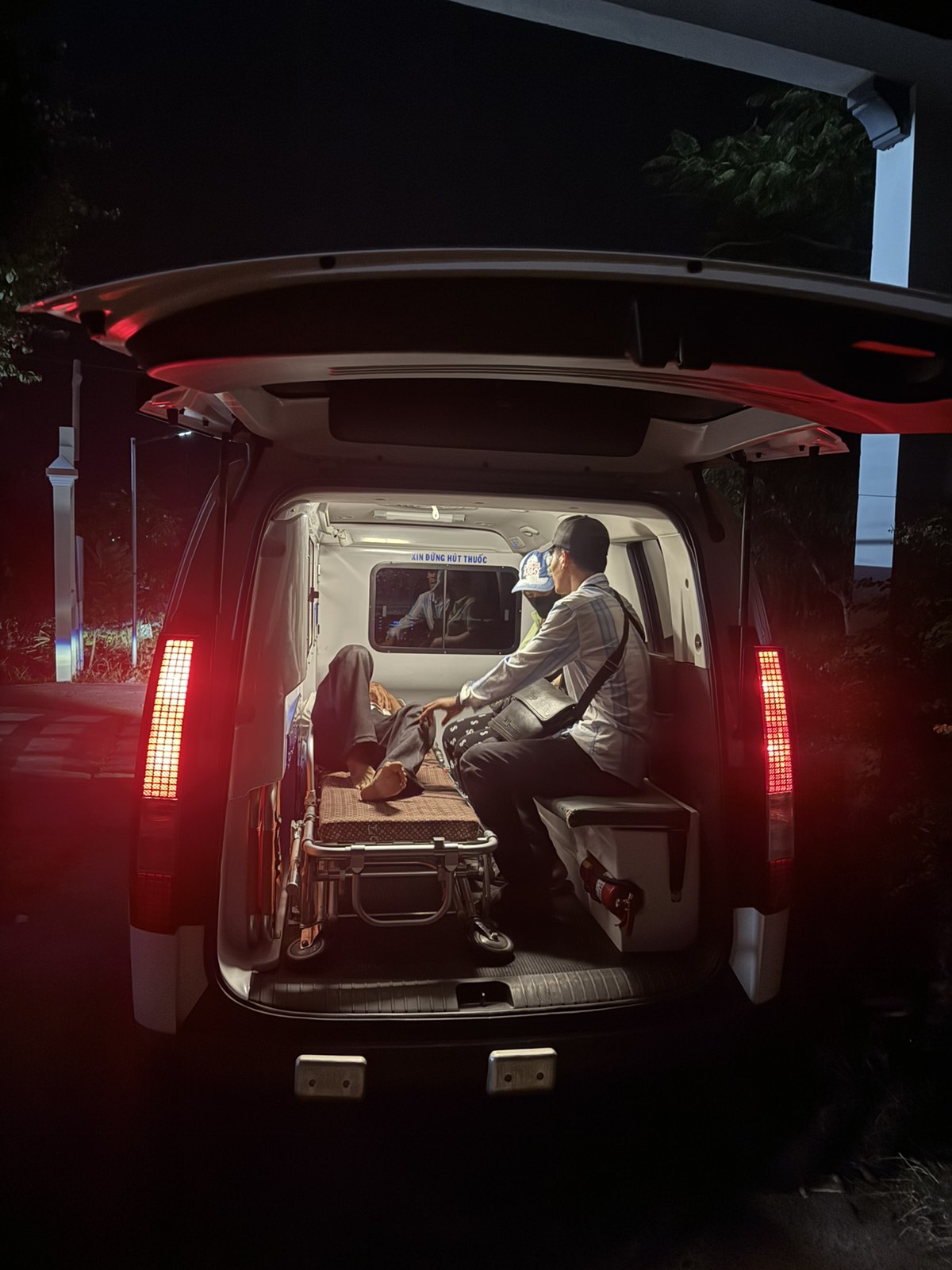 Dưới đây là hình ảnh của từng bệnh nhân lúc lên xe Cấp Cứu và lúc đến nhà thương:
