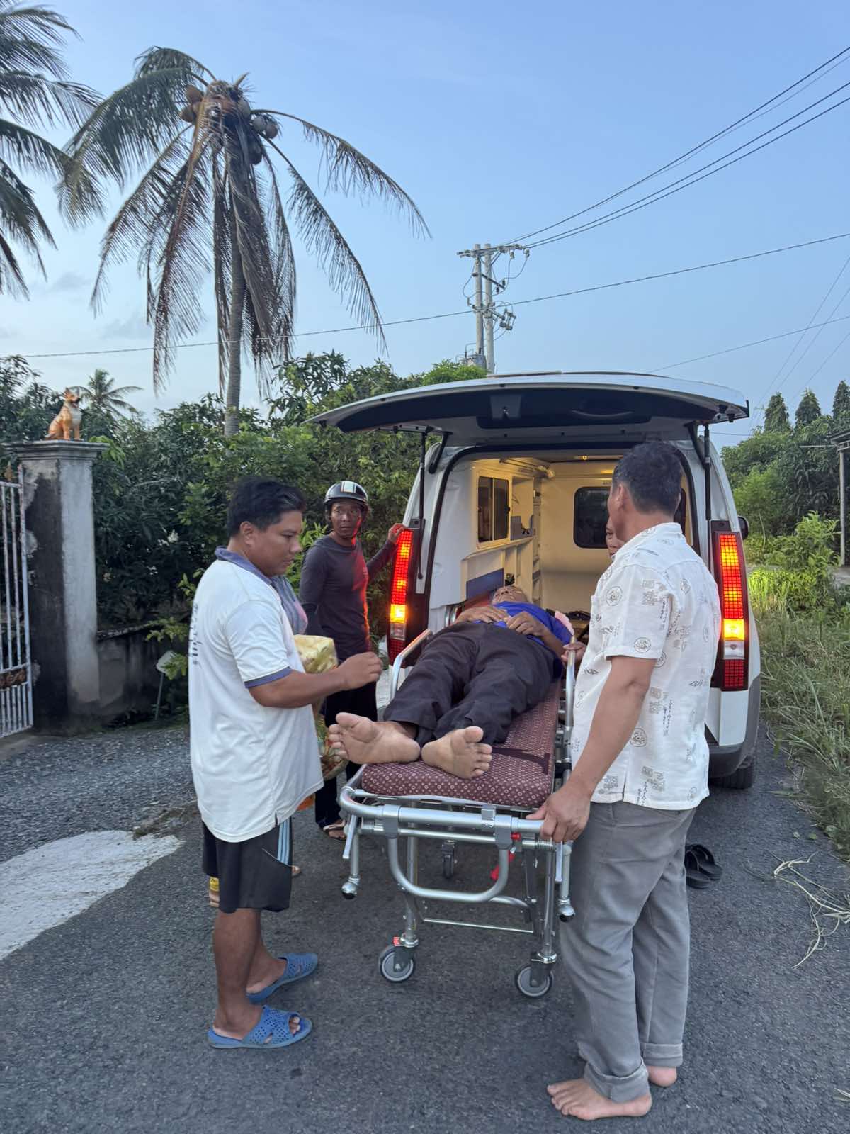 Mr. Trần Văn Phước, 55 years old, lives in Cồn Mít, Thạnh Phong commune, Vĩnh Long province. He fainted, suspected of having a stroke. He was taken by ambulance to Thạnh Phú Hospital at 5:15 PM on August 5, 2025. He currently lives with his child.