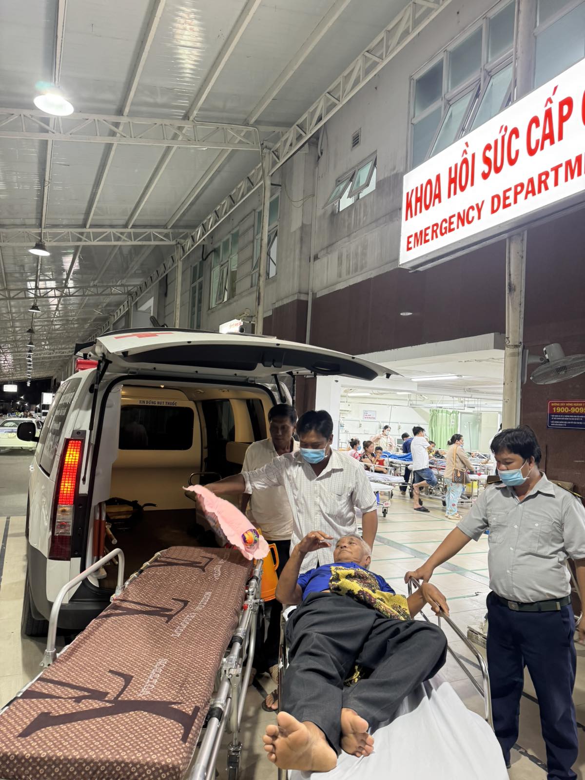 20. Ông Phạm Văn Bé, 72t, nhà ở ấp An Định, xã An Qui, tỉnh Vĩnh Long. Ông bị tràn dịch phổi. Xe chở cấp cứu lên bệnh viện Phạm Ngọc Thạch Sài Gòn lúc 11h30 ngày 12/08/2025. Hiện tại ông sống với con, có tặng 1 chai dầu xanh.