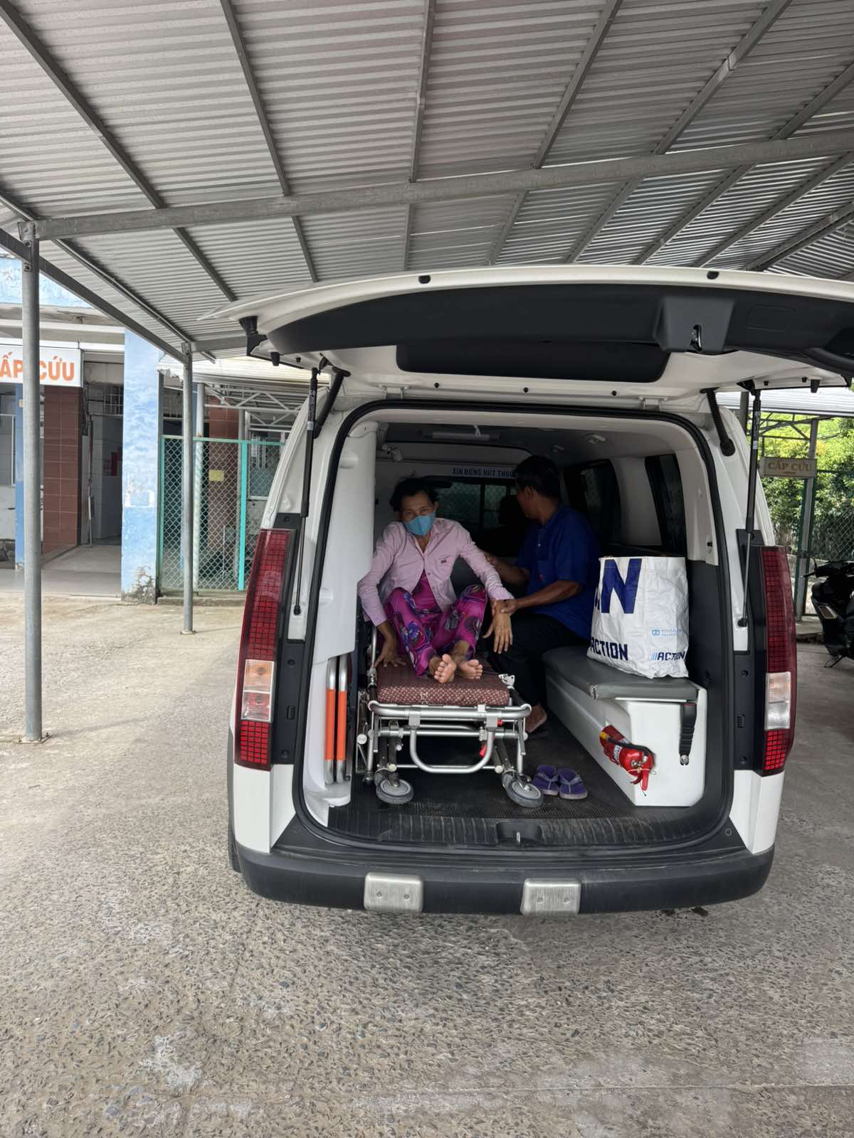 Ms. Nguyen Thi Cong, 70 years old, lives in Hamlet 50, Thoi Thanh Commune, Thanh Phu District, Ben Tre Province. She suffered complications due to diabetes, and was taken to Ben Tre Hospital by ambulance at 8:00 a.m. on June 18, 2025. She currently lives with her children.