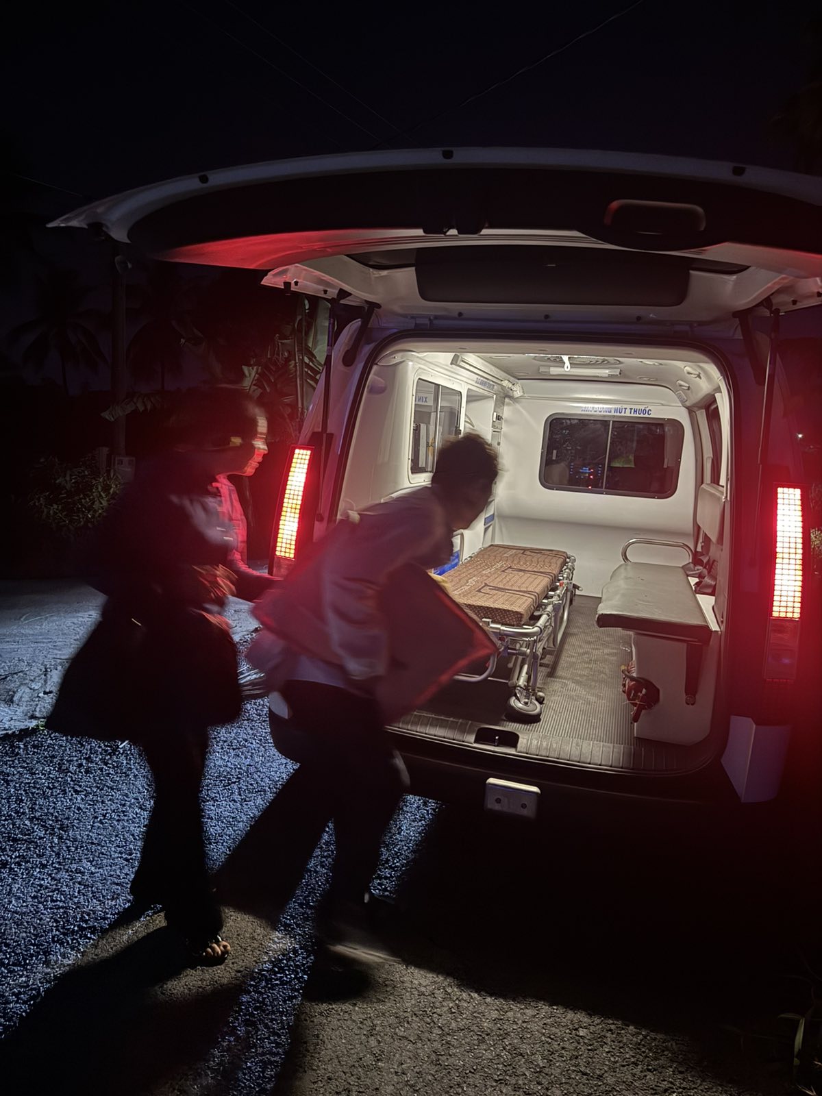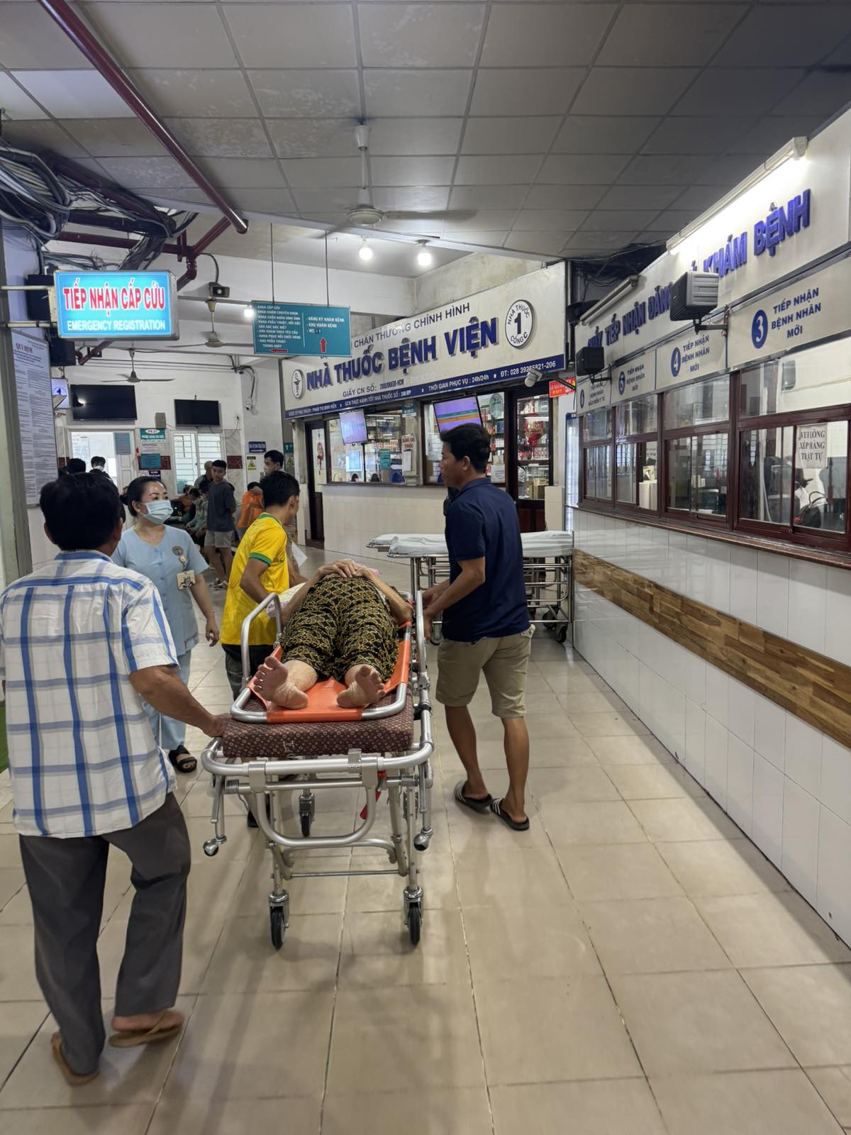 Ms. Tran Thi Thanh, 75 years old, lives in Giong Bang, Giao Thanh Commune, Thanh Phu District, Ben Tre Province. She suffered from heart failure, and was taken to Ben Tre Hospital by ambulance at 9:15 p.m. on June 18, 2025. She currently lives with her children.