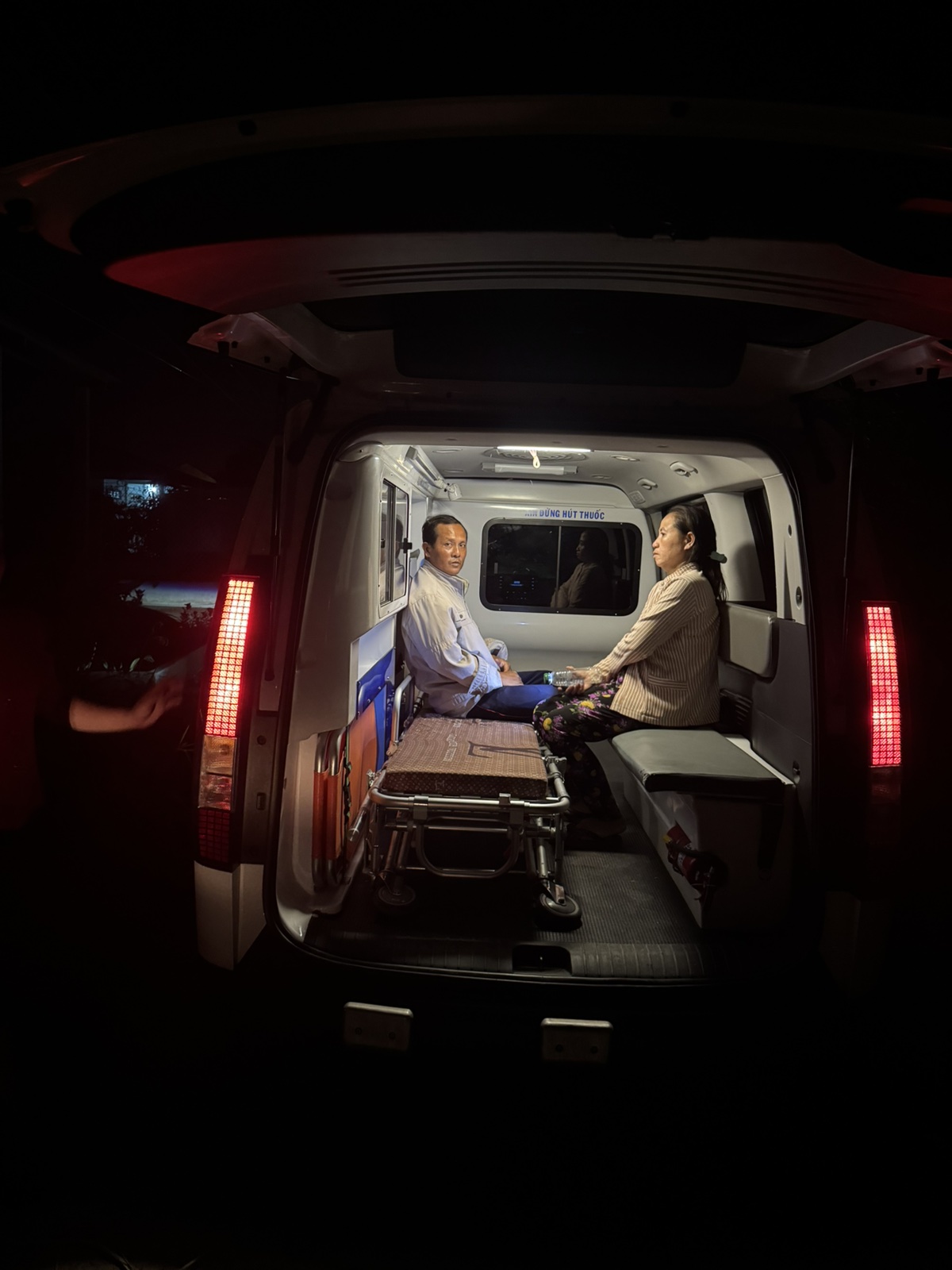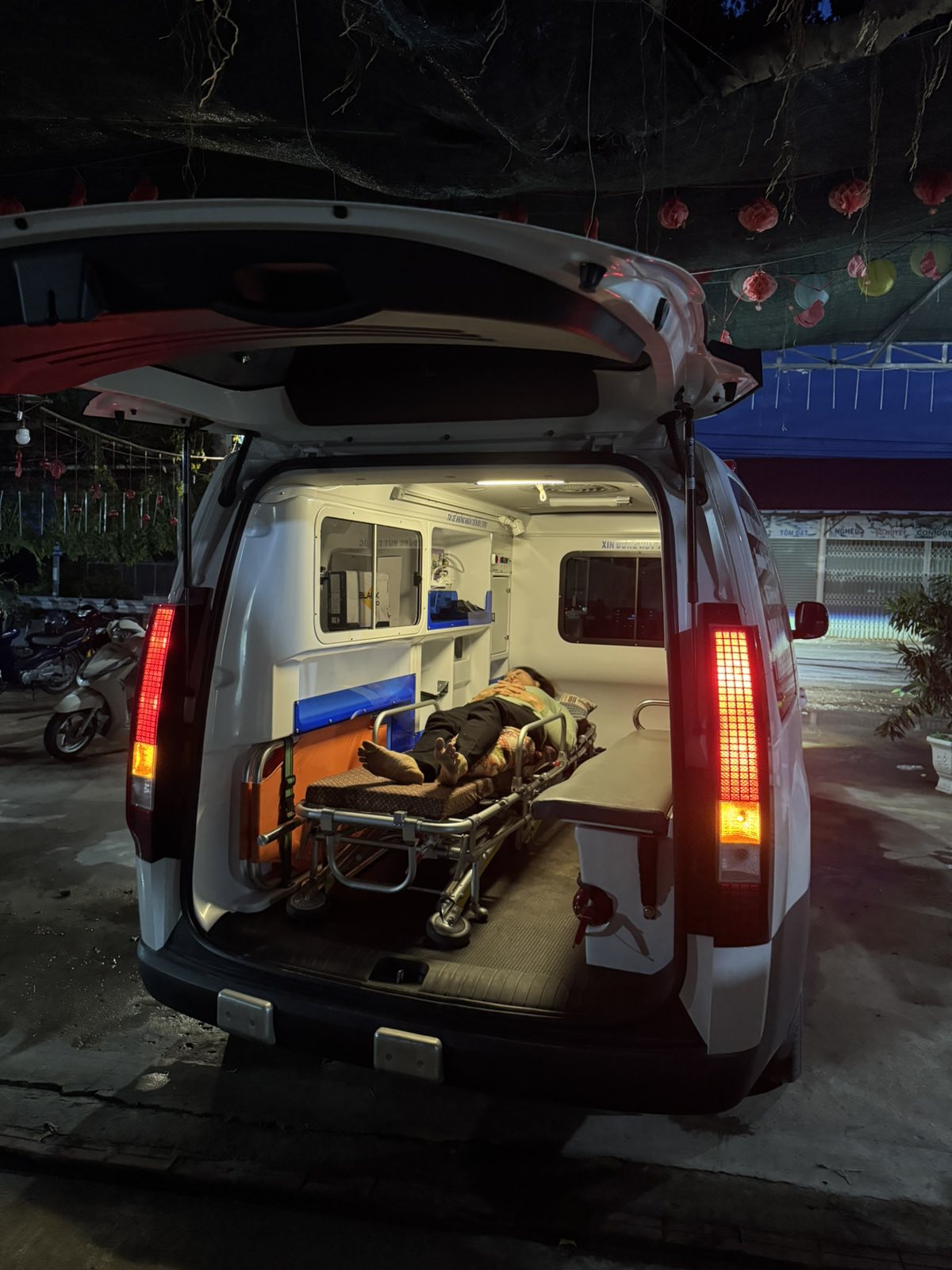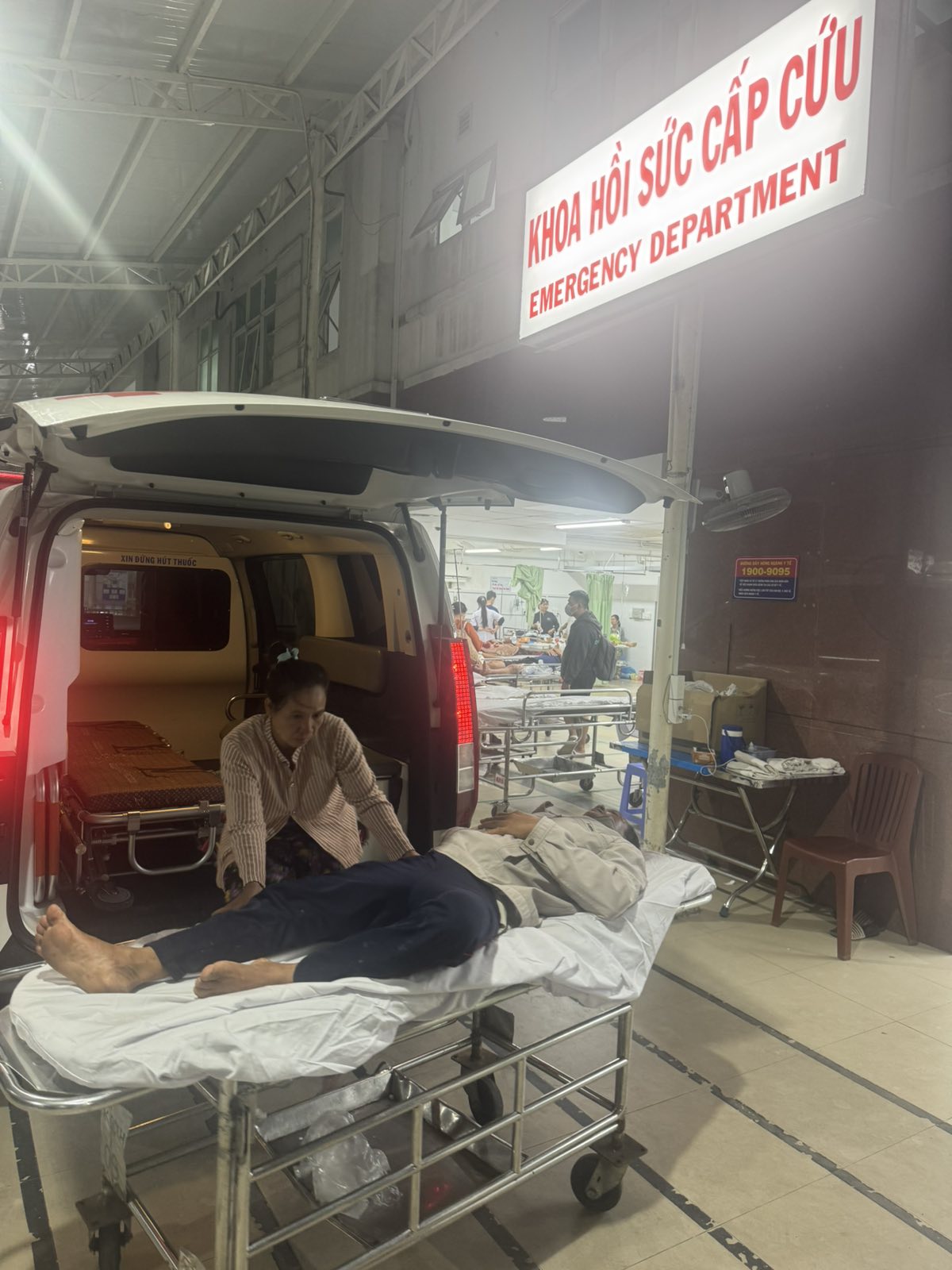 Mr. Nguyen Van Lo, 62 years old, lives in Khau Bang, Thanh Phong commune, Thanh Phu district, Ben Tre province. He fell from a machine in his house, causing a traumatic brain injury. The ambulance took him to Ben Tre hospital at 6:00 p.m. on June 23, 2025. He currently lives with his wife and children.