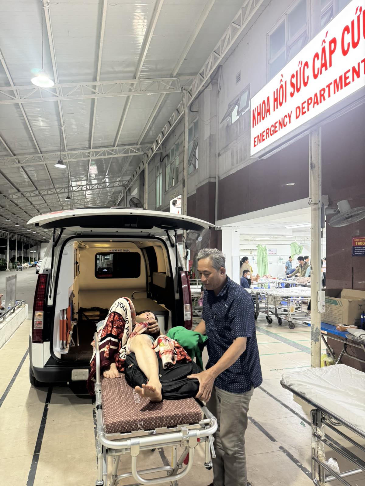 Ms. Dinh Thi Dep, 52 years old, lives in Cong Ho, Giao Thanh commune, Thanh Phu district, Ben Tre province. She vomited blood, and was taken by ambulance to Ben Tre hospital at 12:45 on June 19, 2025.