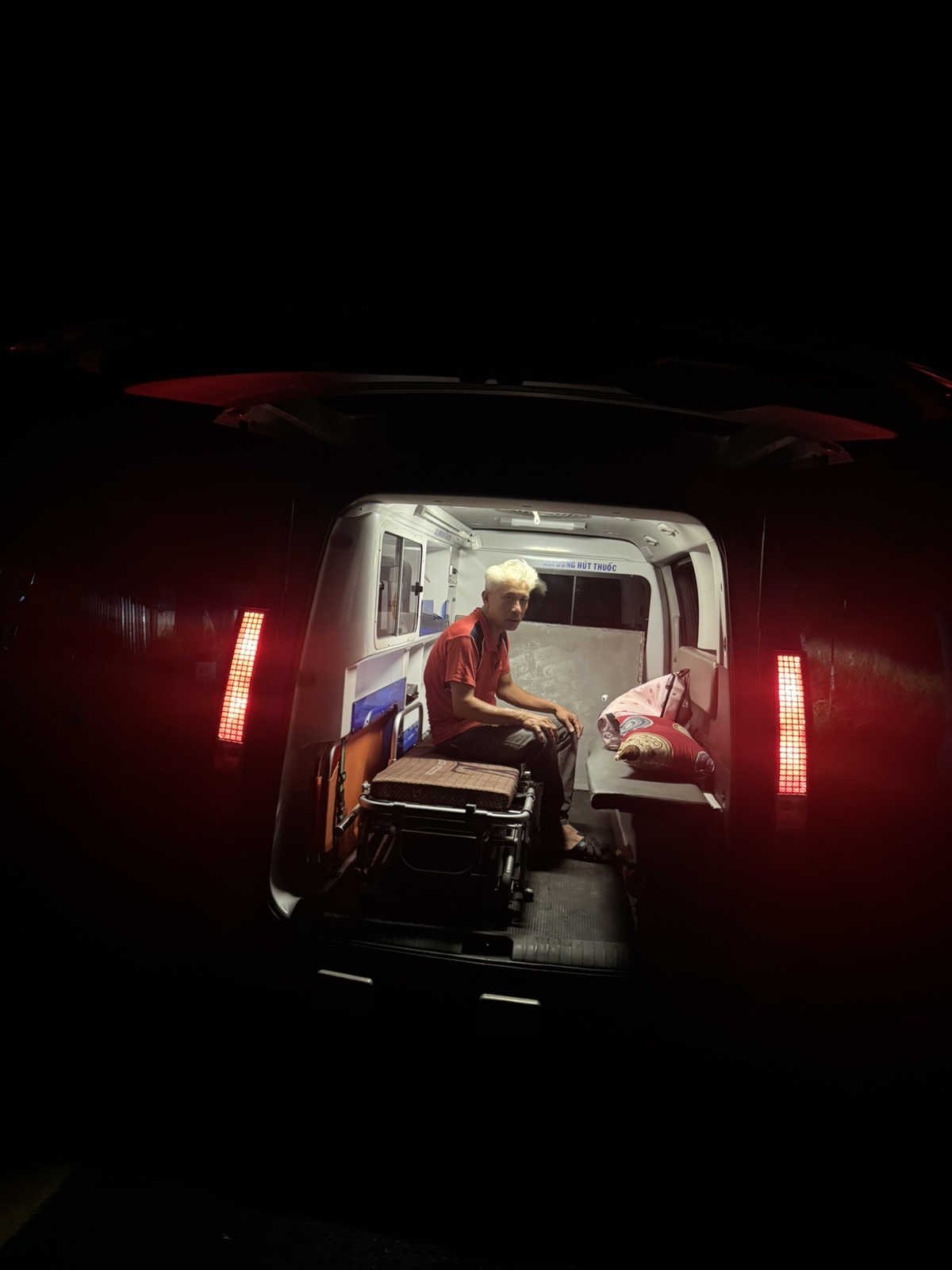 Dưới đây là hình ảnh của từng bệnh nhân lúc lên xe Cấp Cứu và lúc đến nhà thương:
