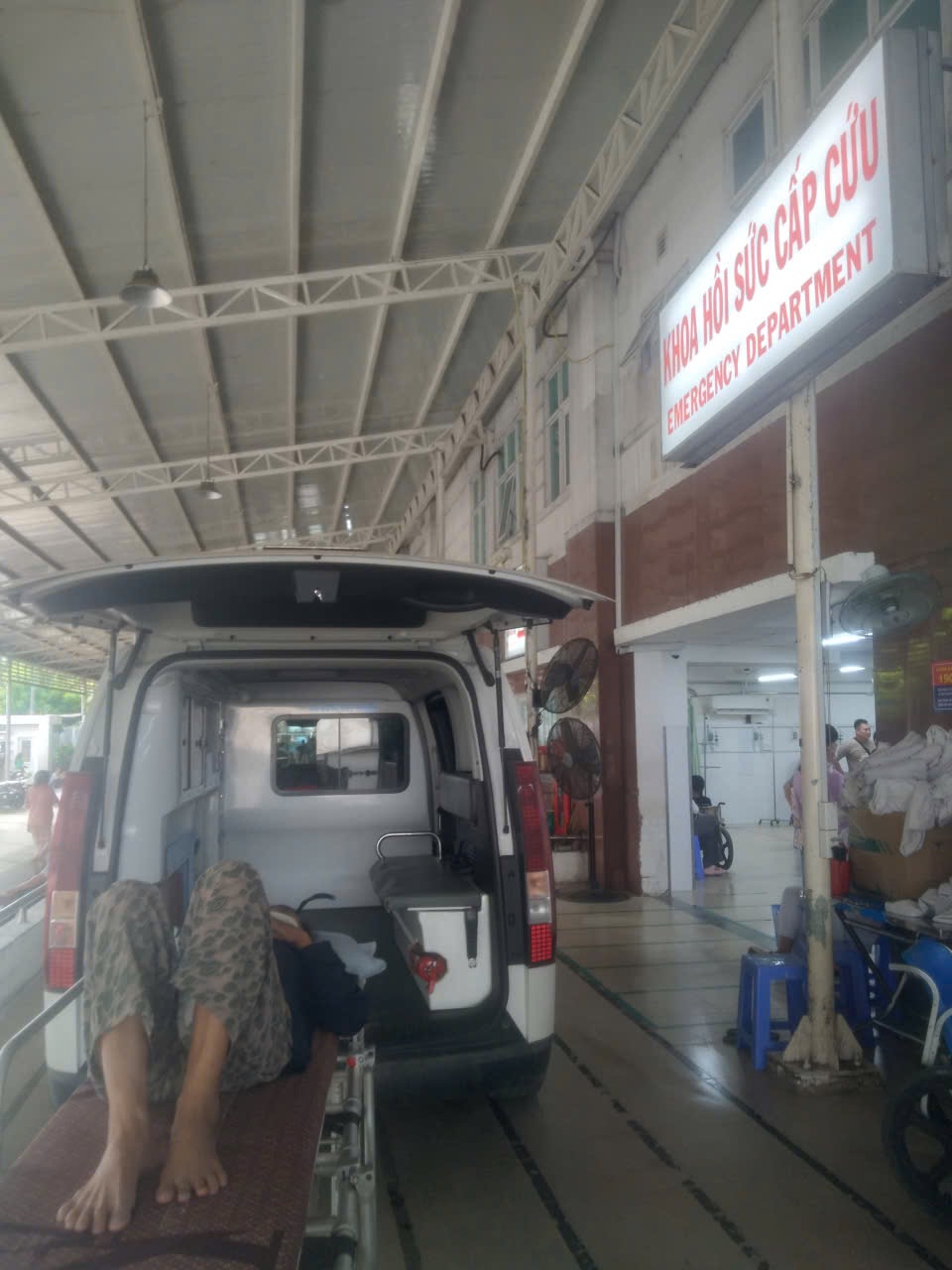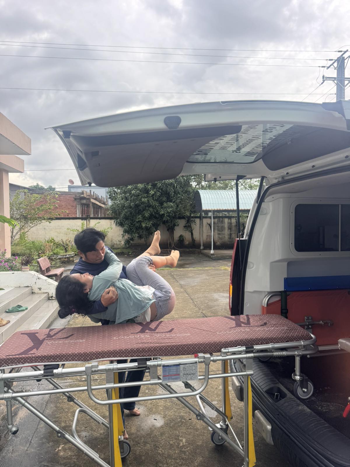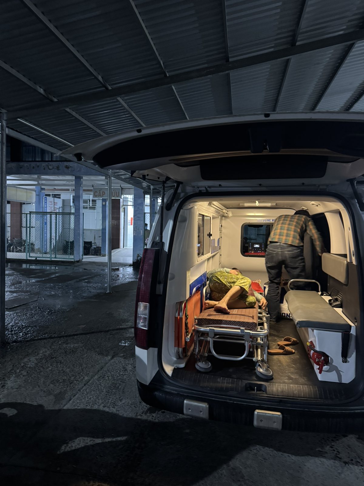 Dưới đây là hình ảnh của từng bệnh nhân lúc lên xe Cấp Cứu và lúc đến nhà thương:
