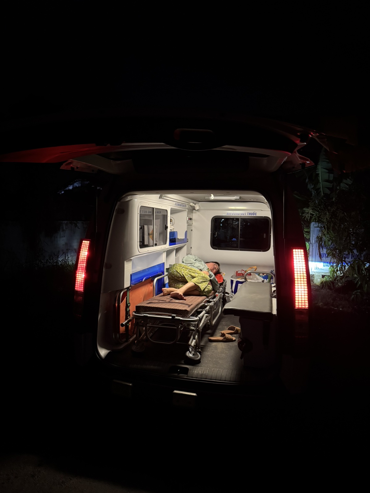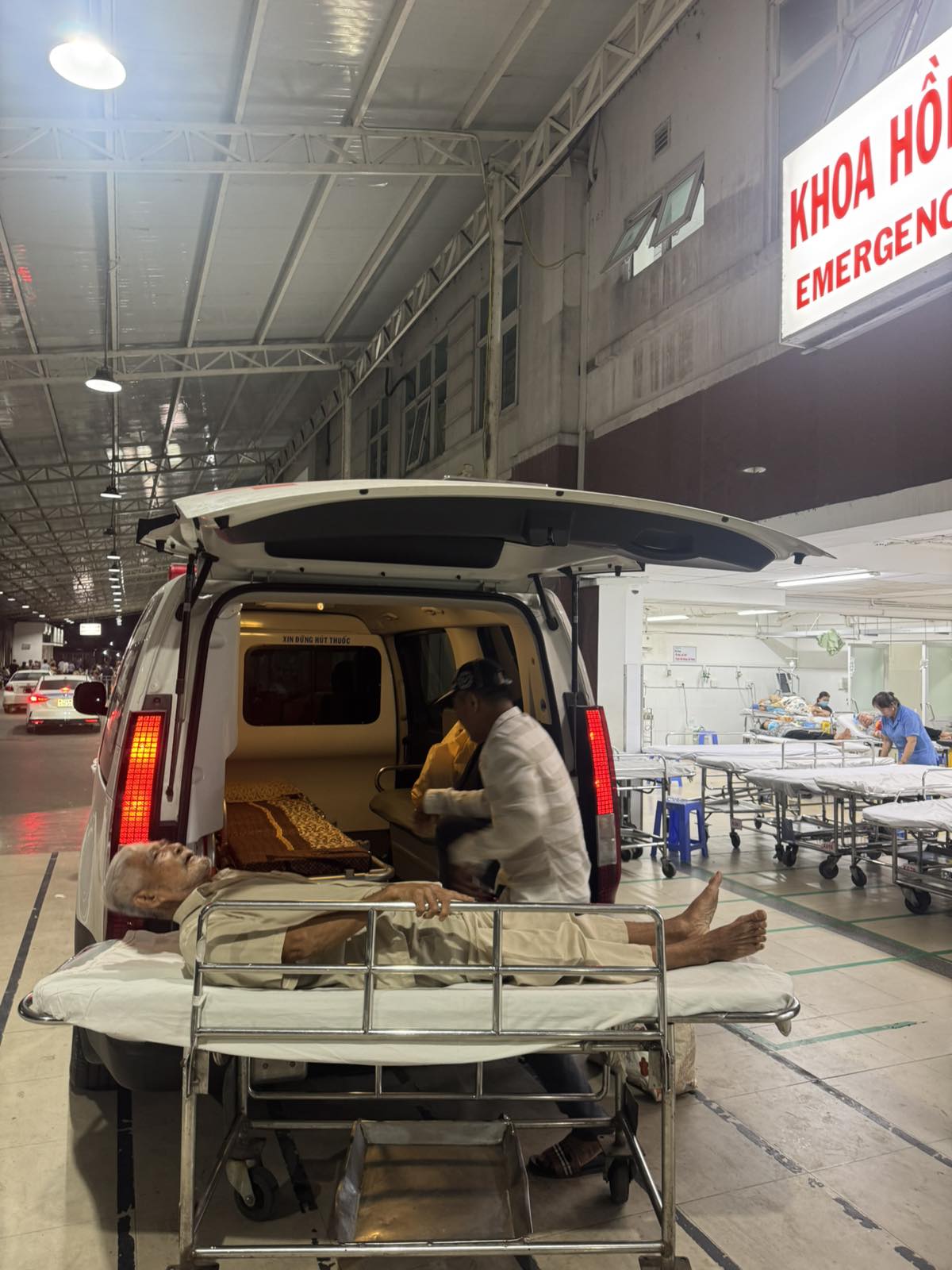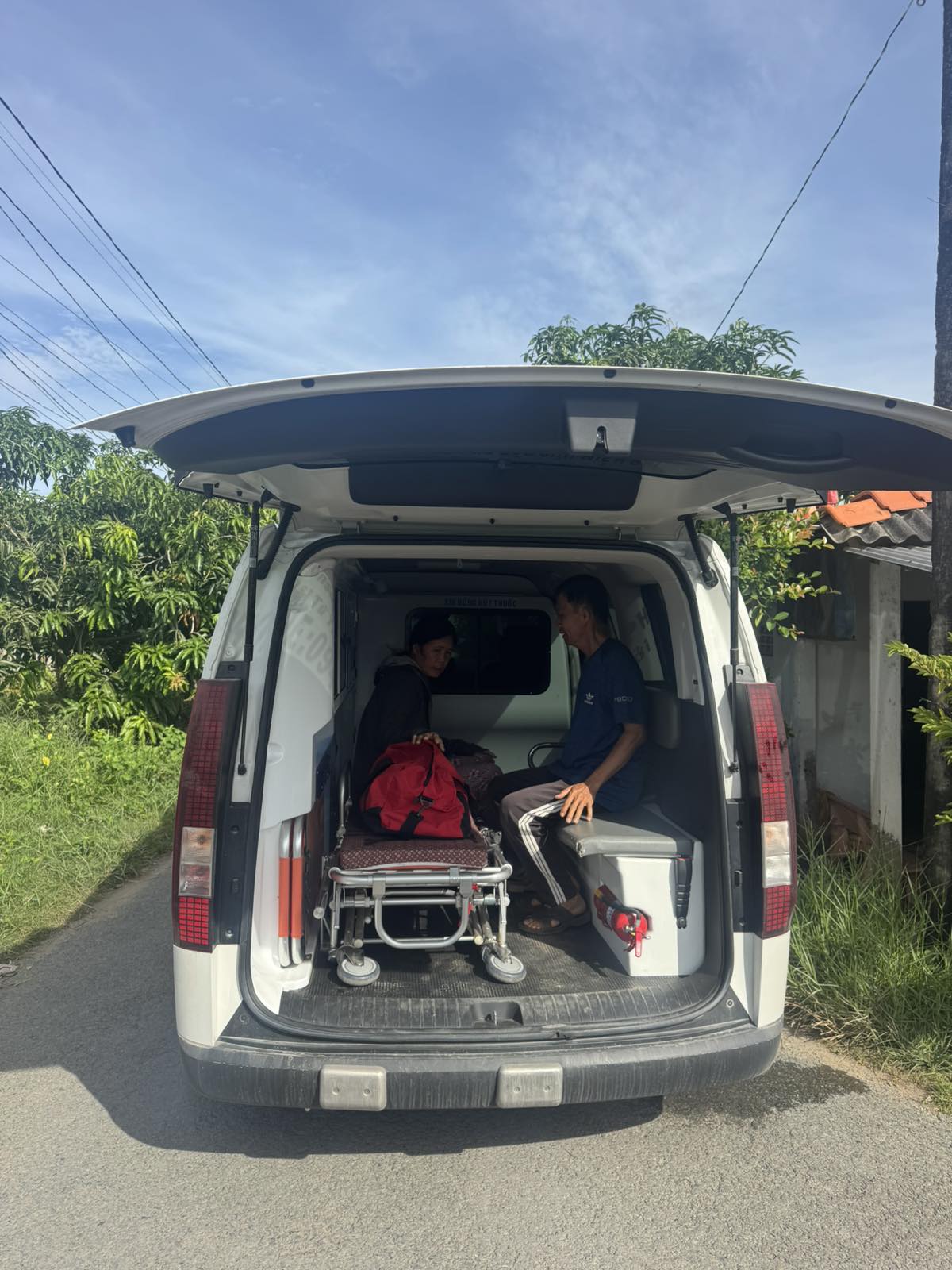 Dưới đây là hình ảnh của từng bệnh nhân lúc lên xe Cấp Cứu và lúc đến nhà thương: