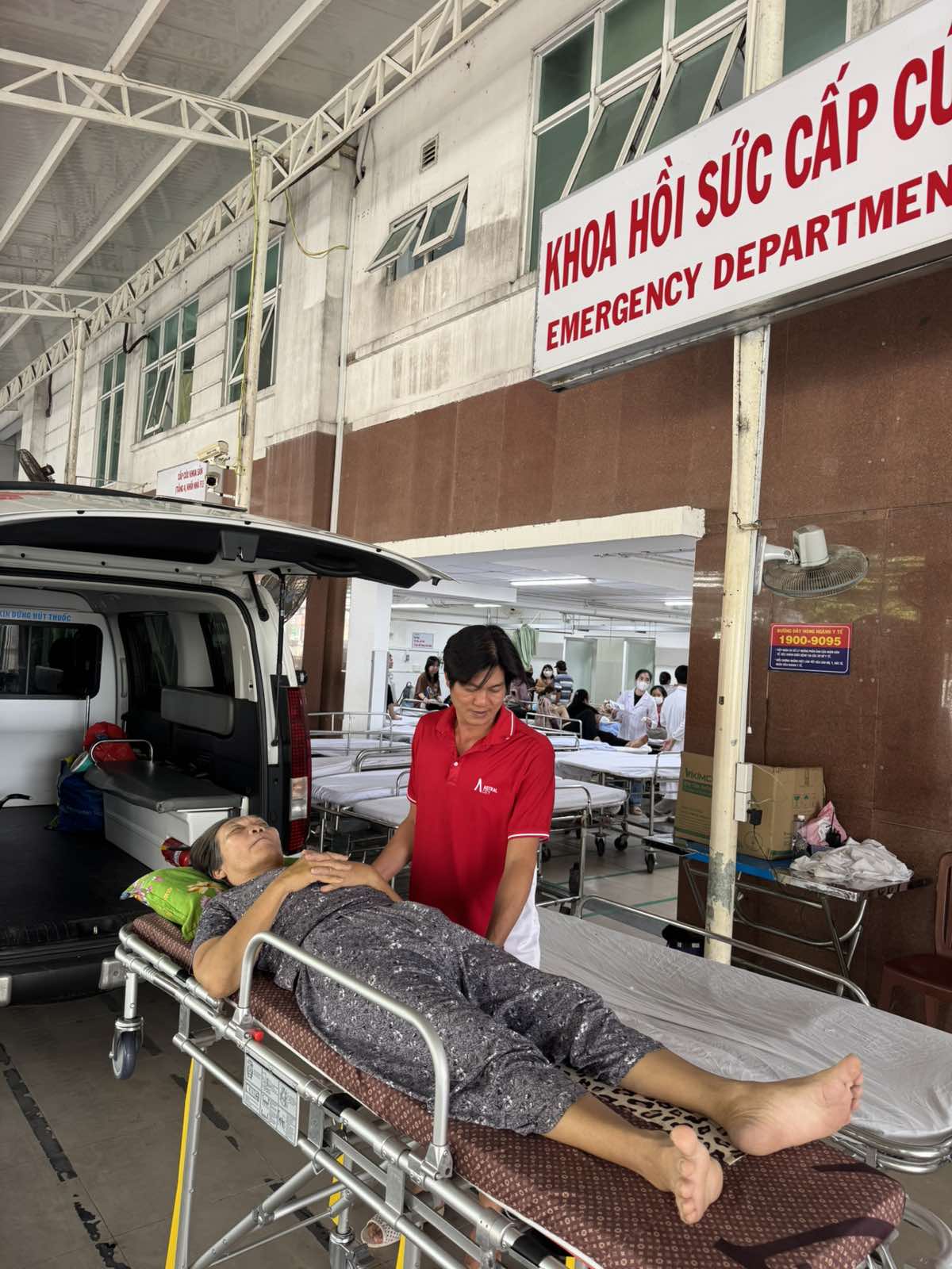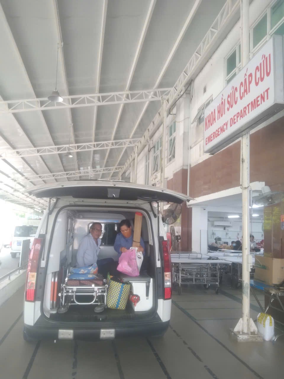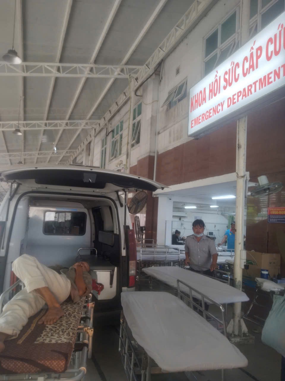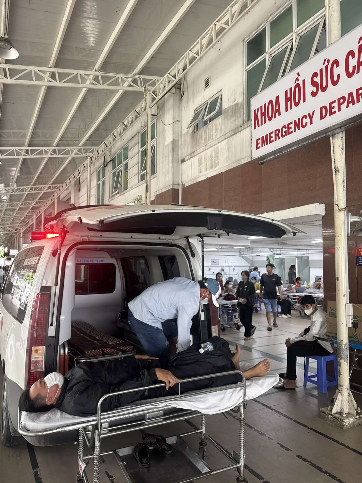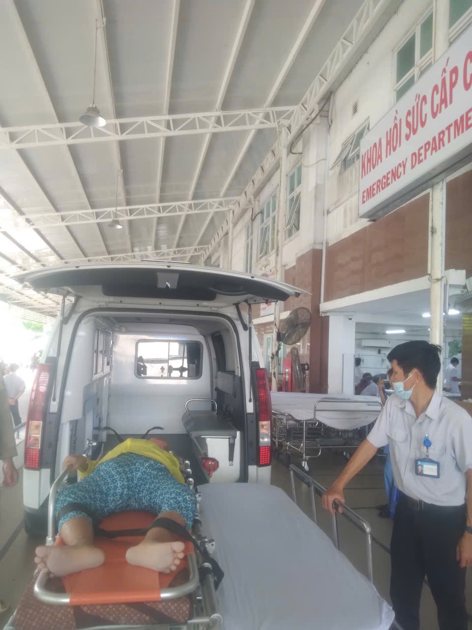 Dưới đây là hình ảnh của từng bệnh nhân lúc lên xe Cấp Cứu và lúc đến nhà thương: