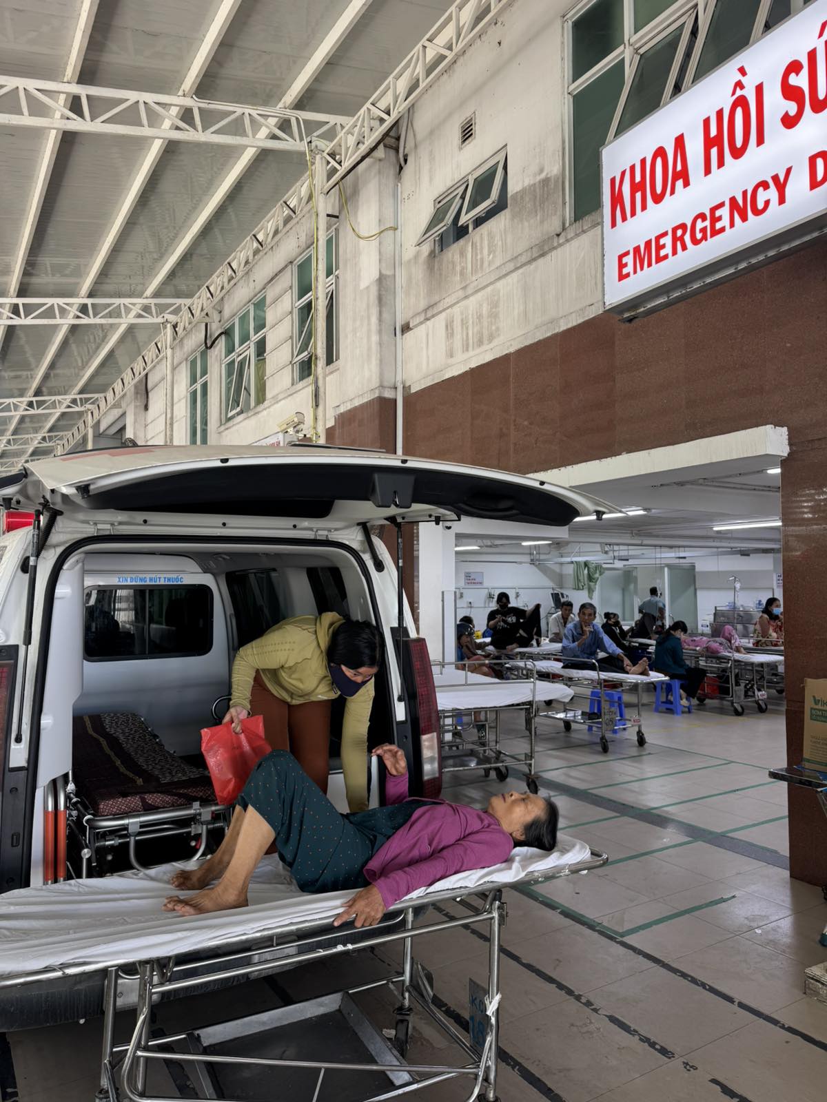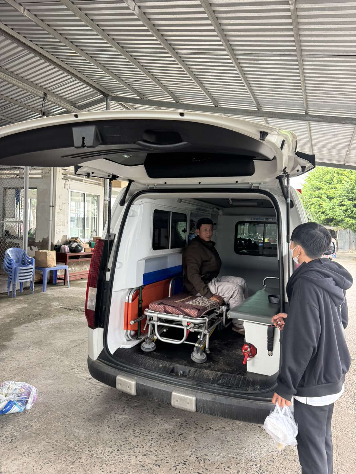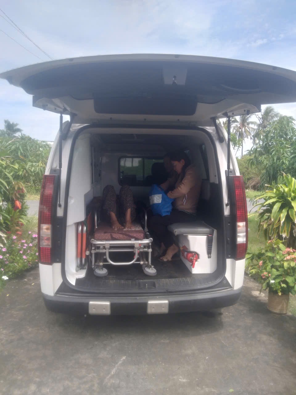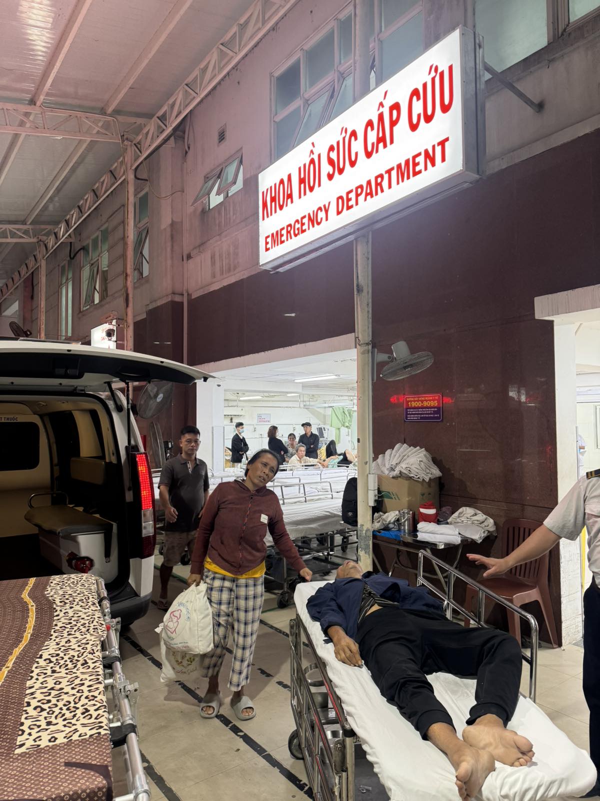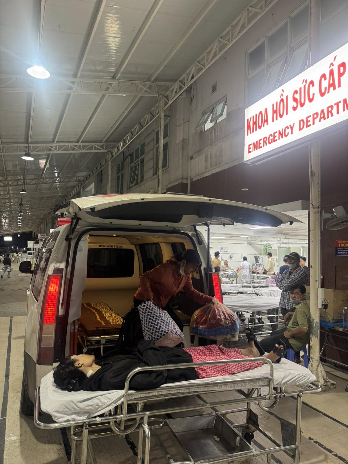 Dưới đây là hình ảnh của từng bệnh nhân lúc lên xe Cấp Cứu và lúc đến nhà thương:
