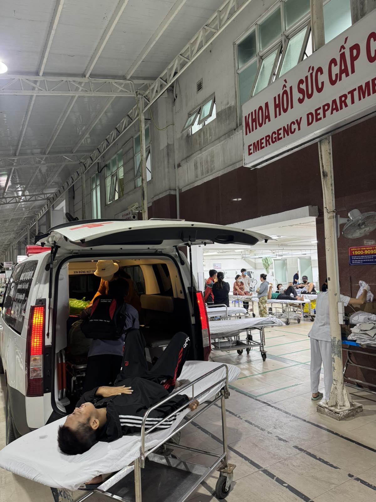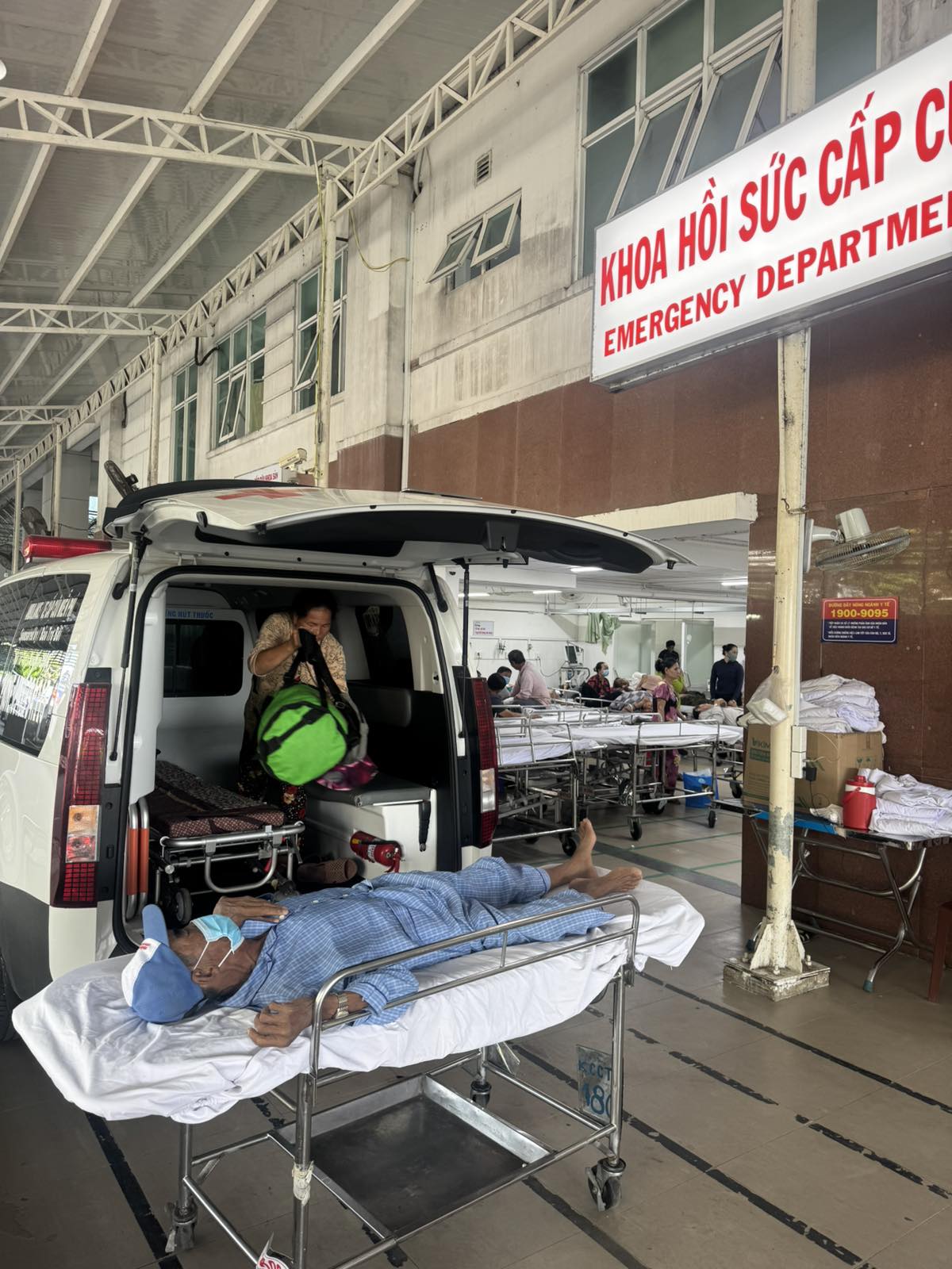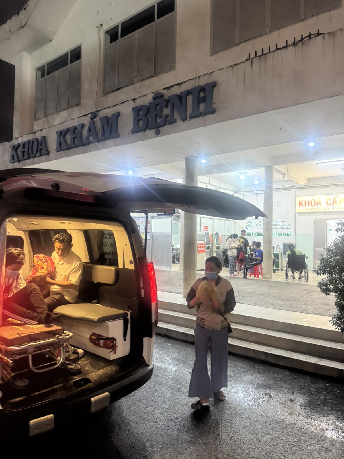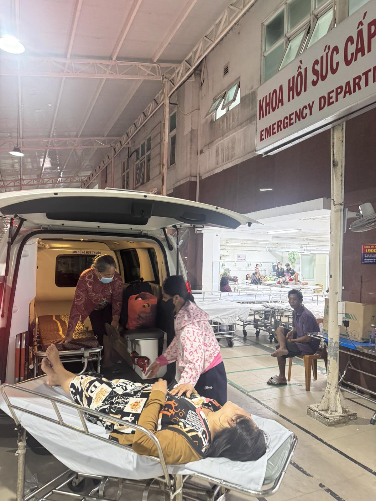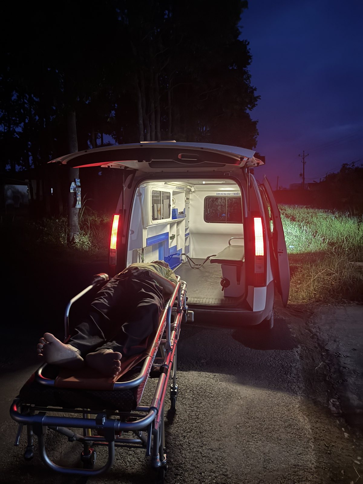 Dưới đây là hình ảnh của từng bệnh nhân lúc lên xe Cấp Cứu và lúc đến nhà thương: