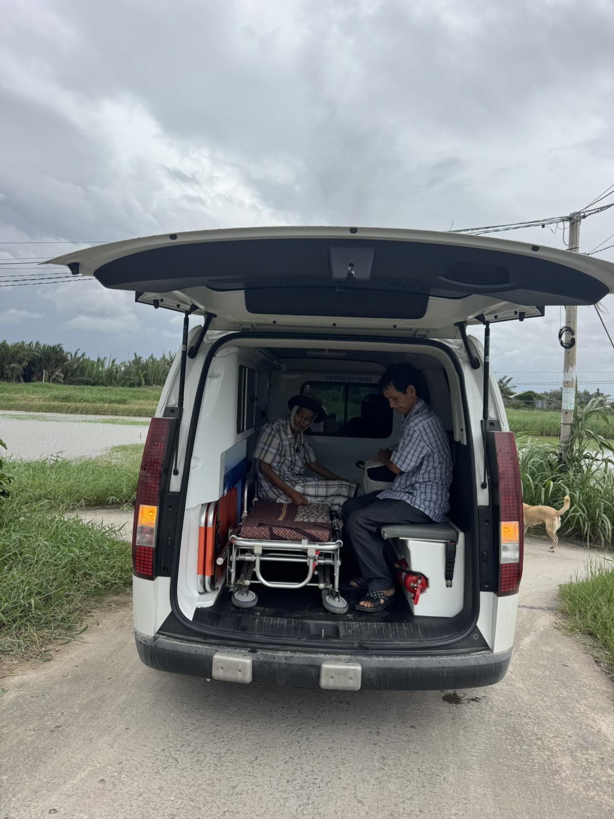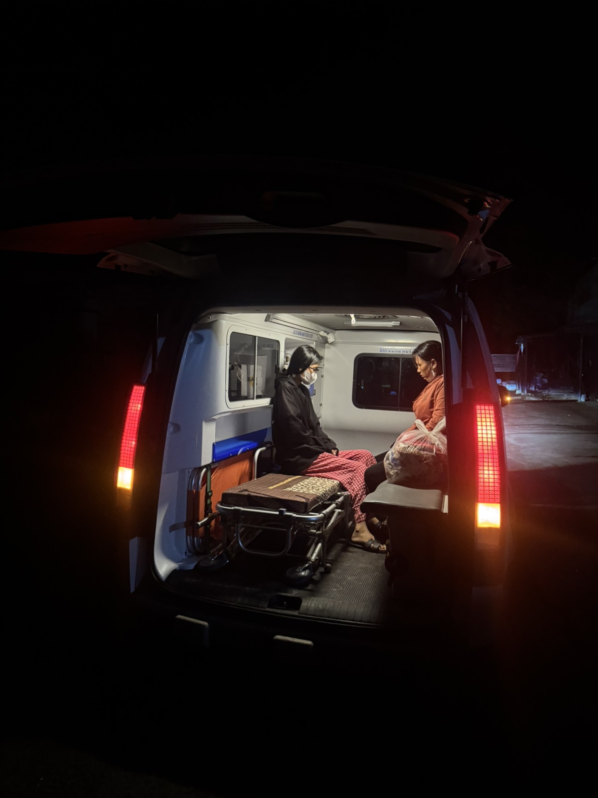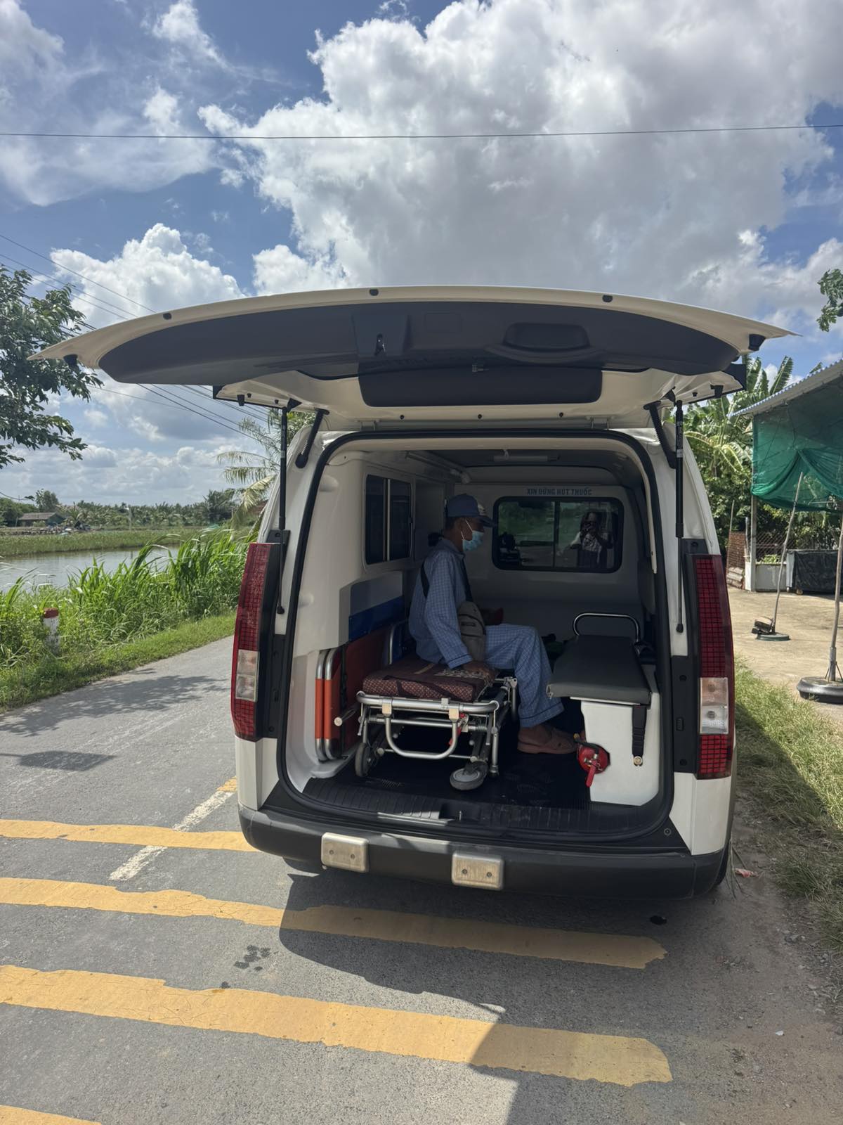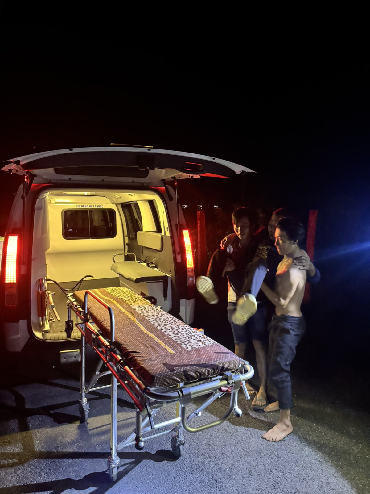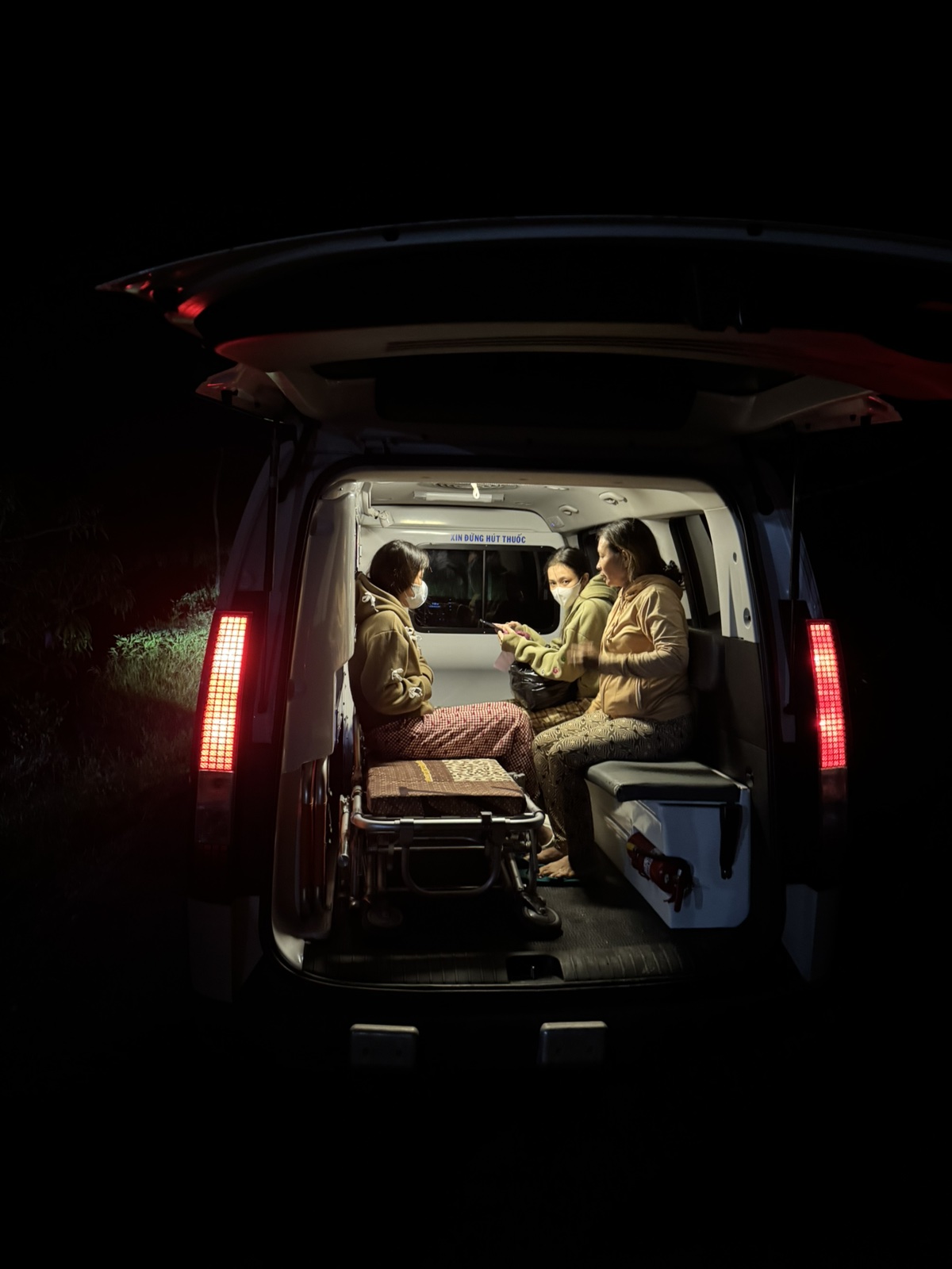 Dưới đây là hình ảnh của từng bệnh nhân lúc lên xe Cấp Cứu và lúc đến nhà thương: