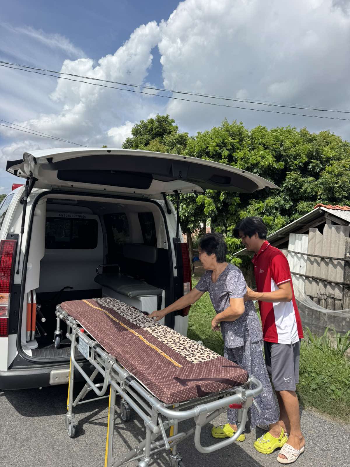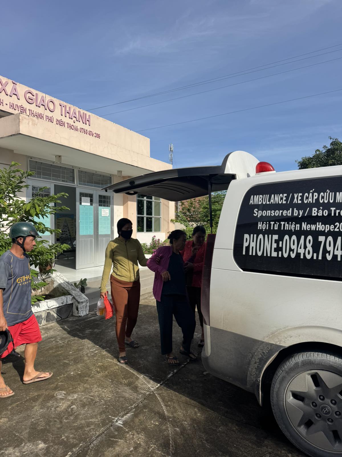 Mrs. Trương Thị Hồng, 80 years old, lives in Khâu Băng, Thạnh Phong commune, Vĩnh Long province. She felt unwell. An ambulance transported her to Bến Tre Hospital at 08:00 on September 30, 2025. She currently lives with her child.