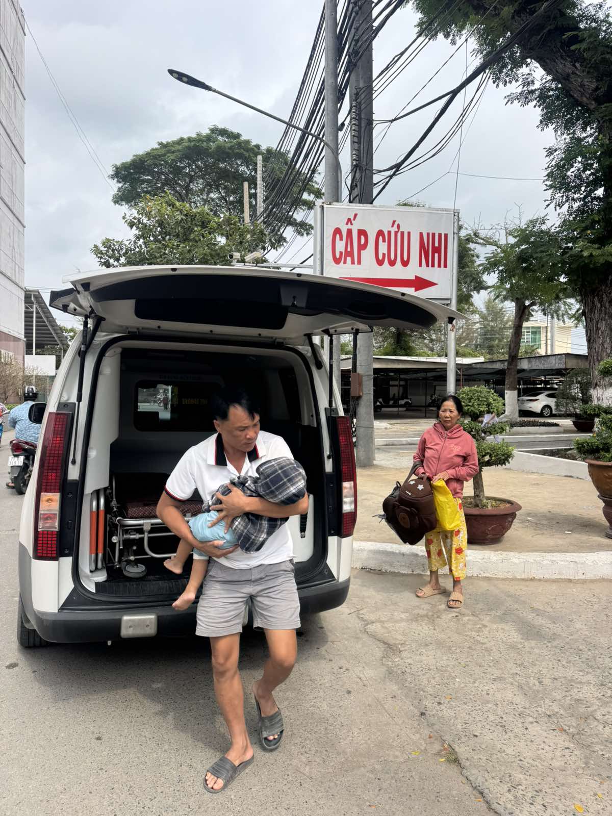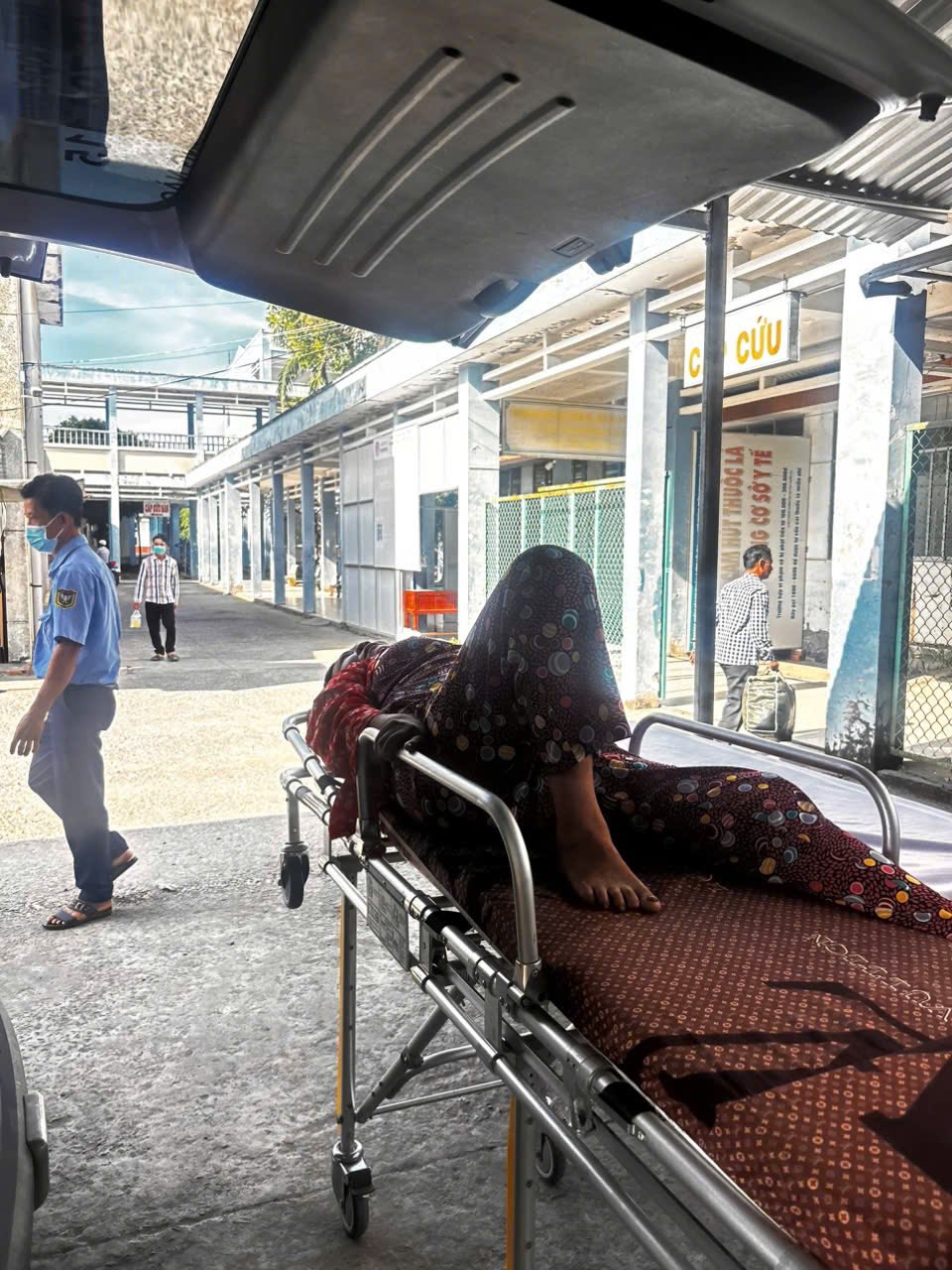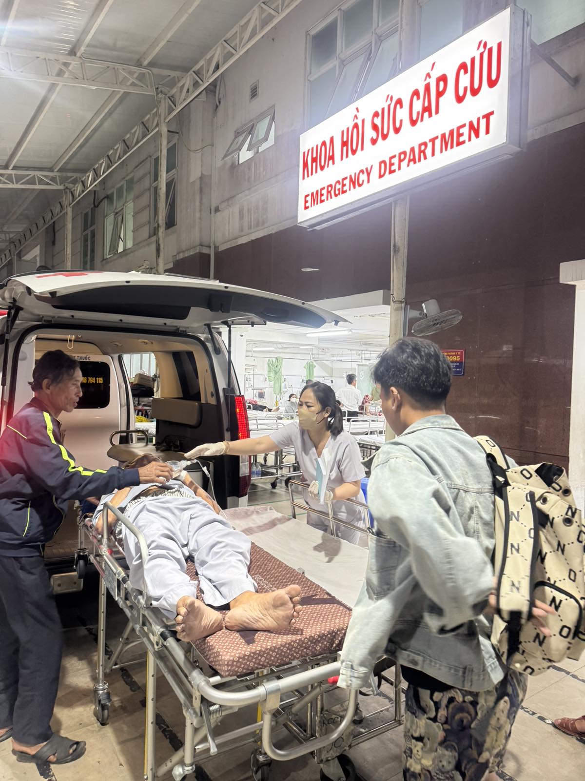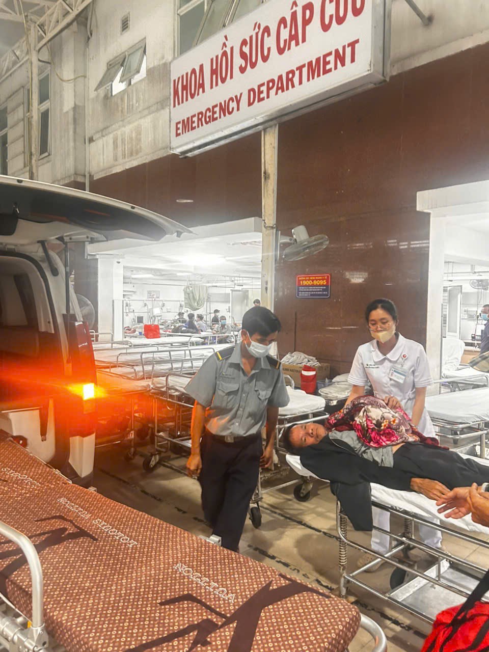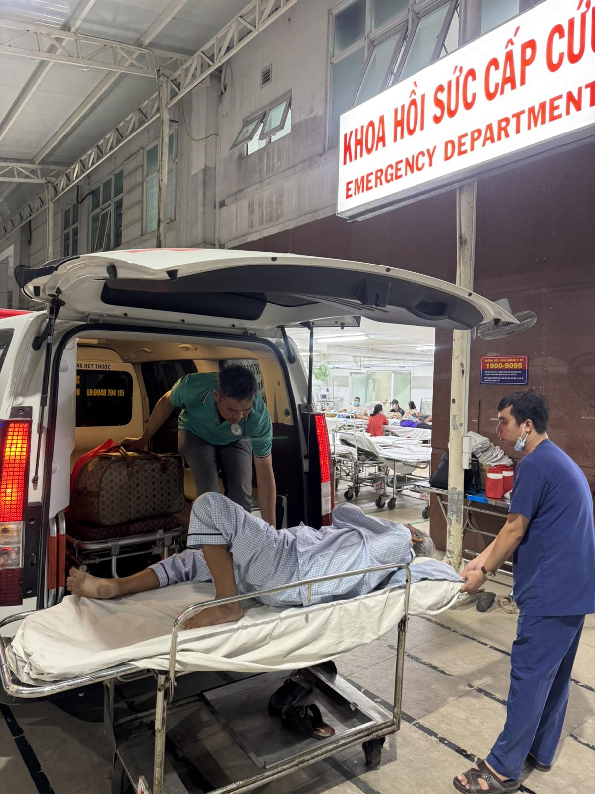 Dưới đây là hình ảnh của từng bệnh nhân lúc lên xe Cấp Cứu và lúc đến nhà thương: