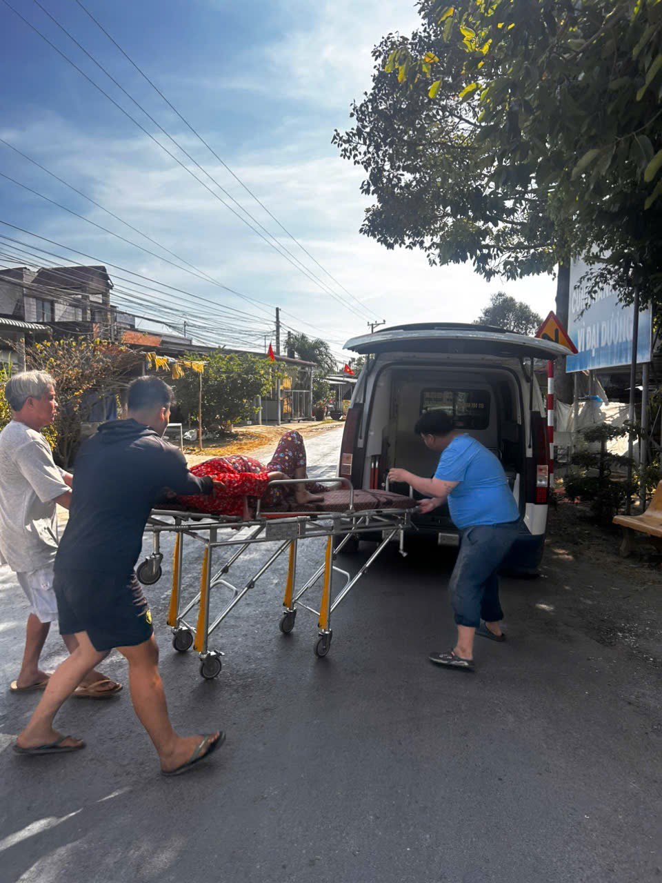 Mr. Nguyễn Văn Tăng, 99, lives in Phú Hamlet, Đại Điền Commune, Vĩnh Long Province. He felt weak due to old age. He was transported by ambulance to Bến Tre Hospital at 7:15 p.m. on February 2, 2026. He currently lives with his children and grandchildren.
