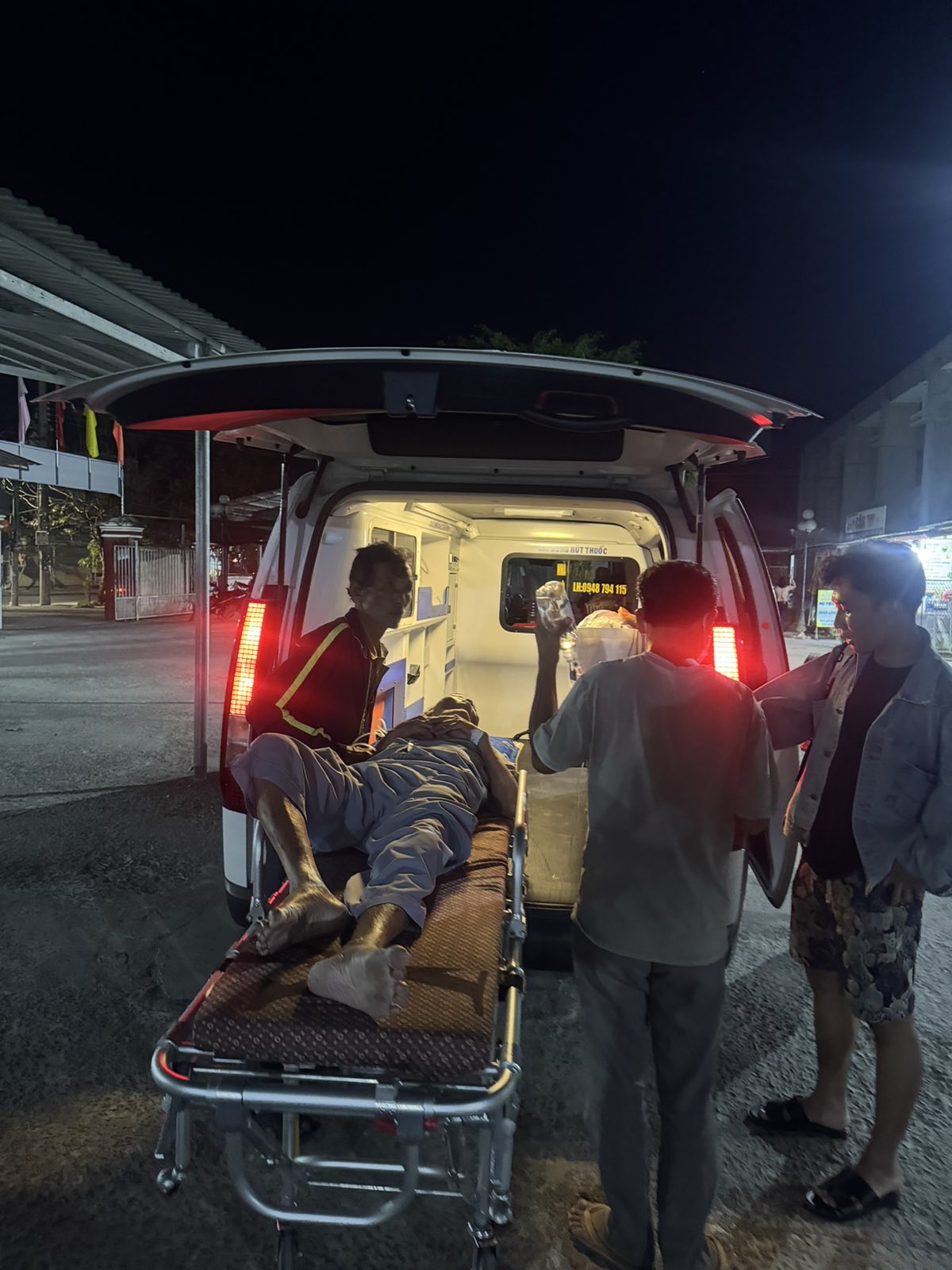 Mr. Lưu Văn Đấu, 80, lives in Giồng Bàng Hamlet, Thạnh Phong Commune, Vĩnh Long Province. He suffered a stroke and was transported by ambulance to Bến Tre Hospital at 11:00 p.m. on February 2, 2026. He currently lives with his children and grandchildren.