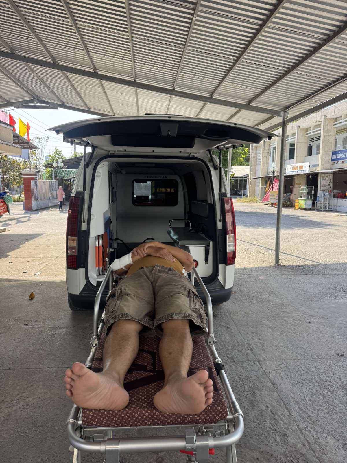 Mr. Nguyễn Chí Thương, 34, lives in Khâu Băng Hamlet, Thạnh Phong Commune, Vĩnh Long Province. He slipped and fell, breaking his arm. He was transported by ambulance to Bến Tre Hospital at 3:15 p.m. on February 1, 2026. He currently lives with his wife and child. He was given 1,000,000 VND (he had a broken arm for nearly a day but had no money to go to the hospital).