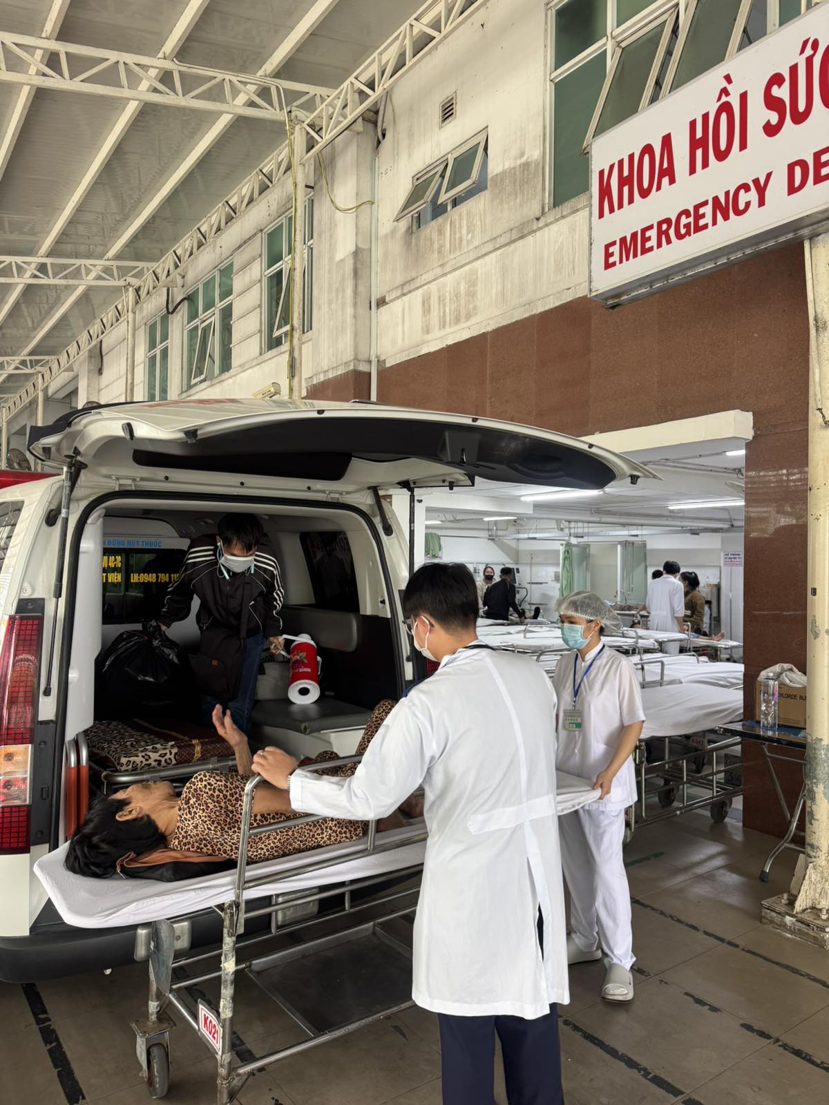 Ms. Đặng Thị Lộc, 65 years old, lives in Giao Thạnh hamlet, Thạnh Phong Commune, Vĩnh Long Province. She was fatigued due to asthma and lung failure. She was transported by ambulance to Bến Tre Hospital at 9:00 a.m. on January 11, 2026. She currently lives with her children.