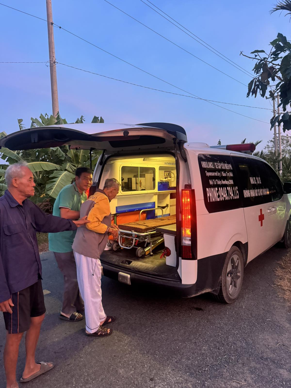 Mr. Đại Hoàng Long, 68 years old, lives in An Huề hamlet, An Qui Commune, Vĩnh Long Province. He was fatigued due to heart failure and was transported by ambulance to Bến Tre Hospital at 11:40 a.m. on January 14, 2026. He currently lives with his children.
