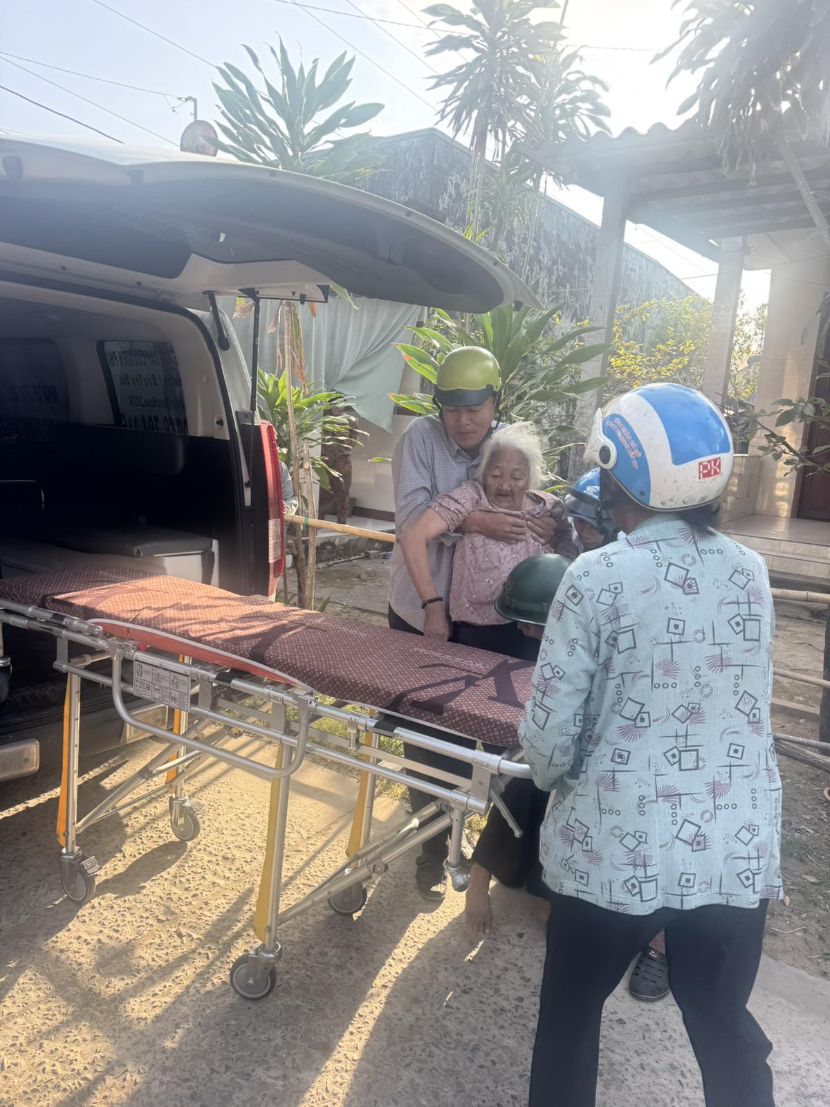 Ms. Lê Thị Út, 93 years old, lives in Nhà Dừa hamlet, Thạnh Hải Commune, Vĩnh Long Province. She was fatigued due to heart failure and was transported by ambulance to Bến Tre Hospital at 8:00 a.m. on January 1, 2026. She currently lives with her children and grandchildren.