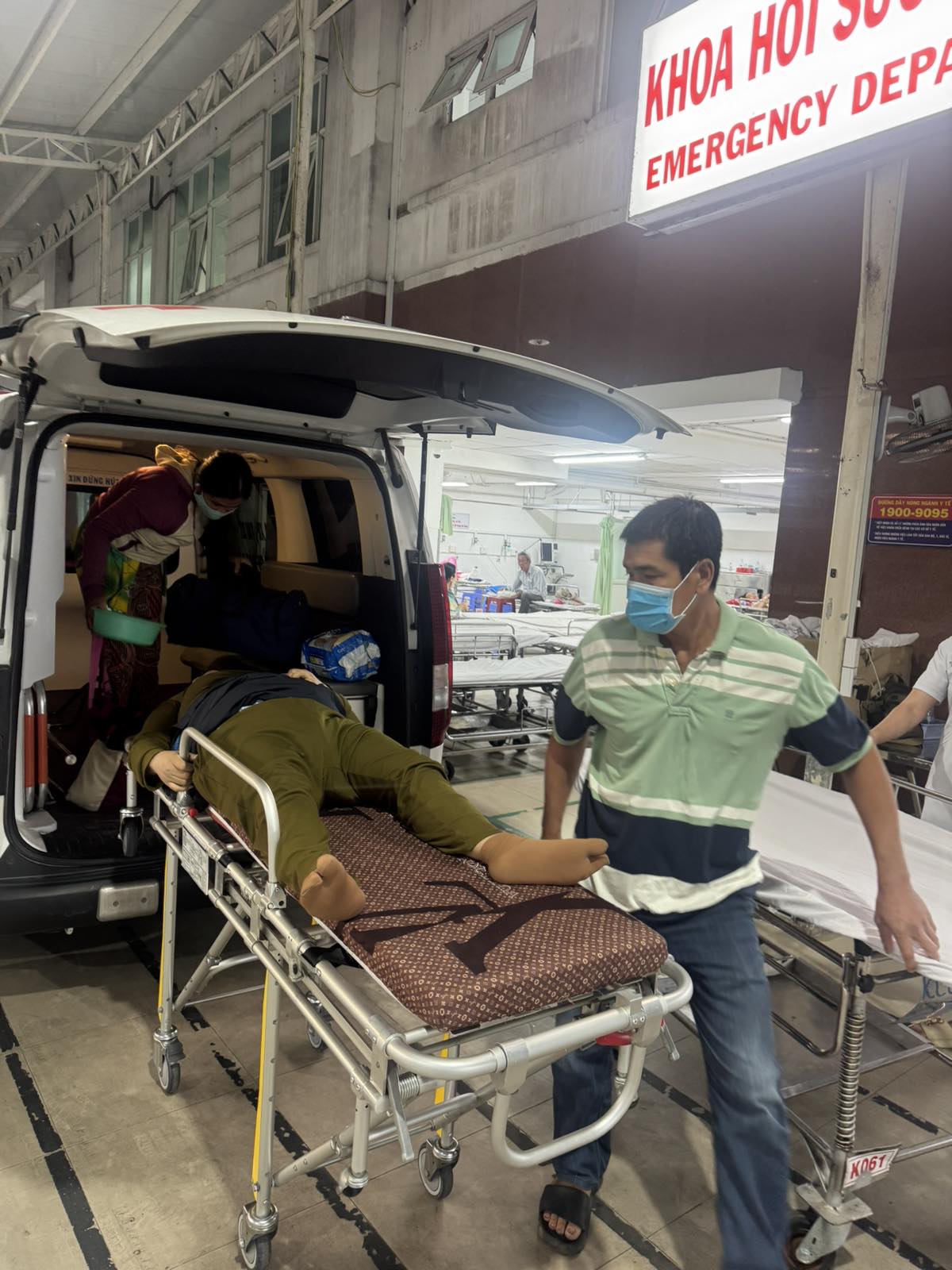 Dưới đây là hình ảnh của từng bệnh nhân lúc lên xe Cấp Cứu và lúc đến nhà thương: