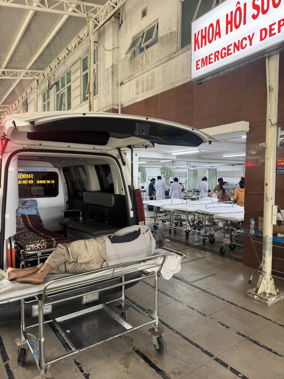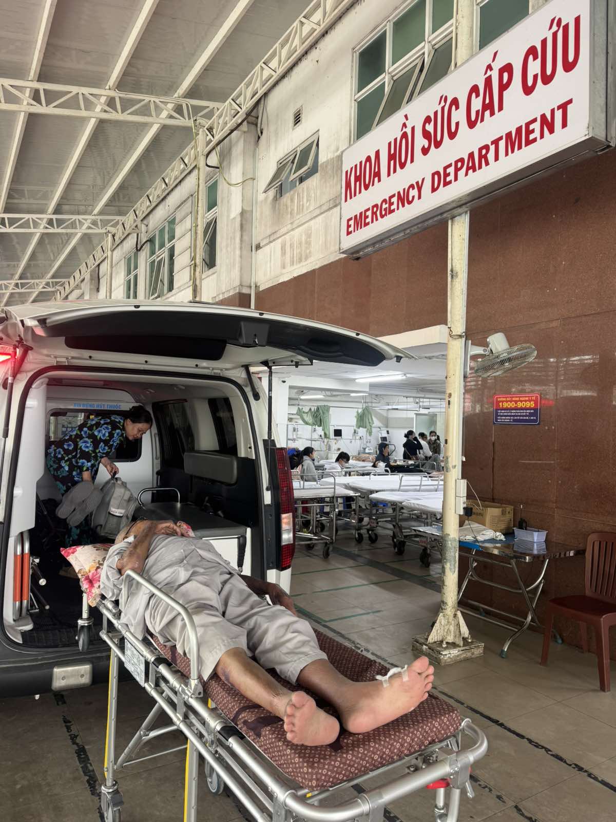 Lại Văn Trung, 75 years old, lives in An Huề Hamlet, An Qui Commune, Vĩnh Long Province. He experienced fatigue due to lung failure. He was transported by ambulance to Bến Tre Hospital at 7:00 a.m. on January 23, 2026. He currently lives with his children.