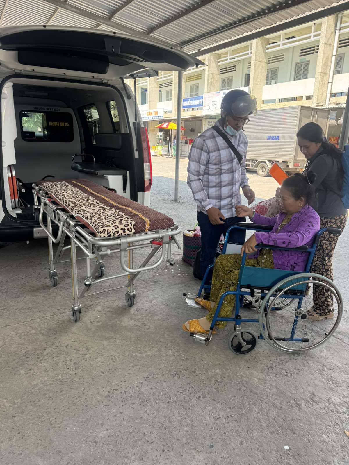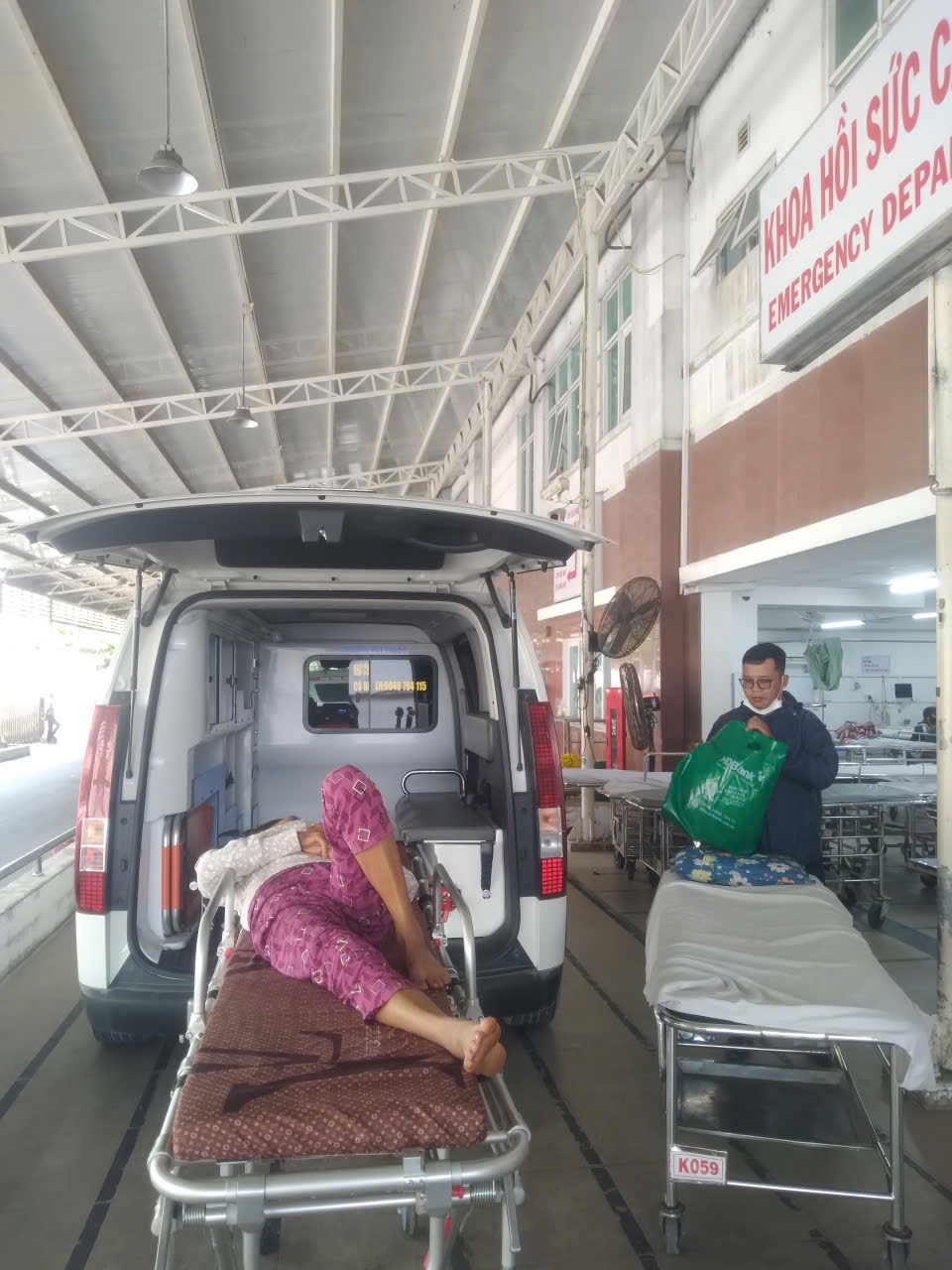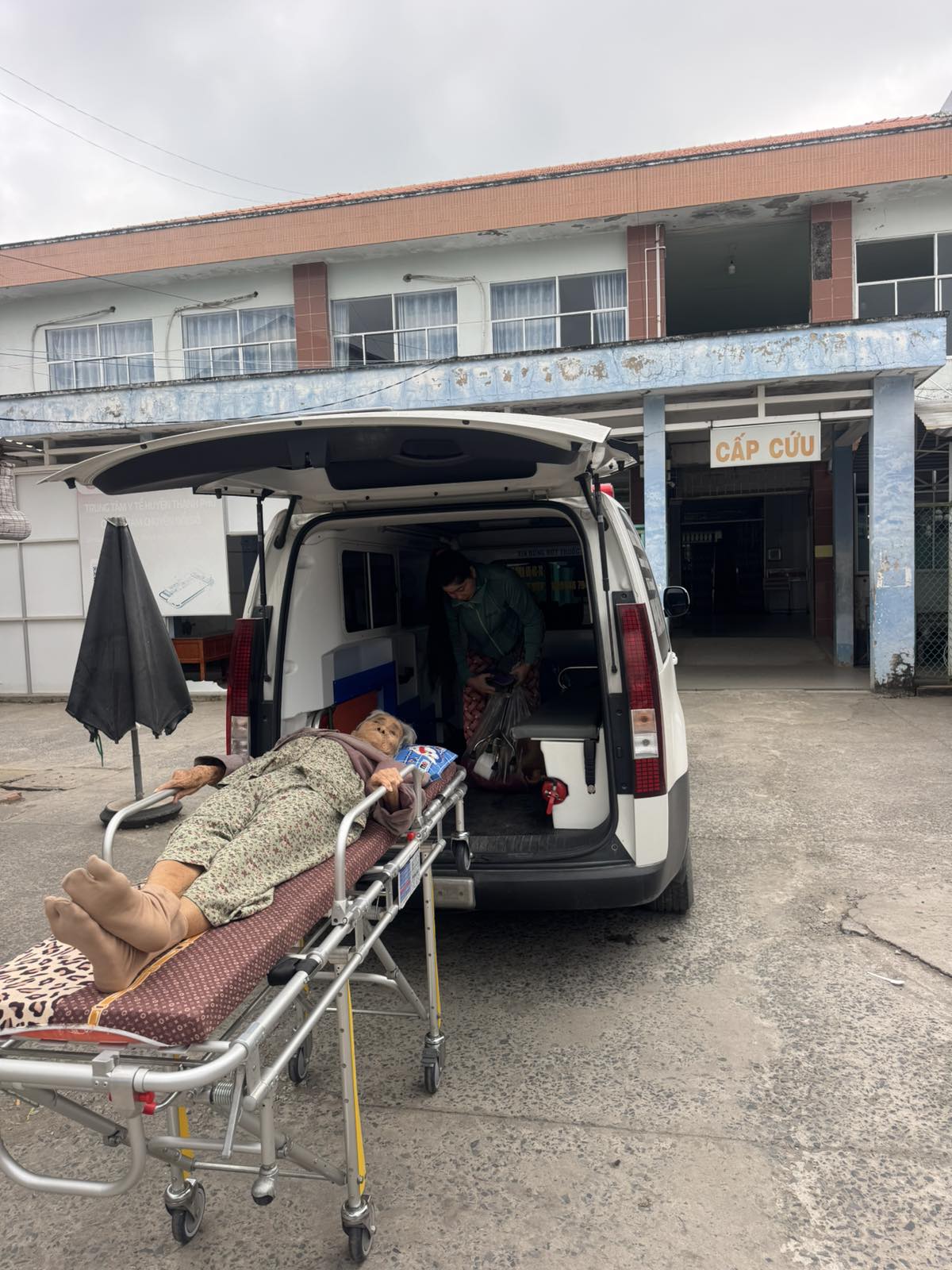 Nguyễn Thị Niềm, 71 years old, lives in Mỹ An, Thạnh Phú Commune, Vĩnh Long Province. She experienced fatigue due to a cerebral hemorrhage (brain bleeding). She was transported by ambulance to Bến Tre Hospital at 6:30 a.m. on January 25, 2026. She currently lives with her children.