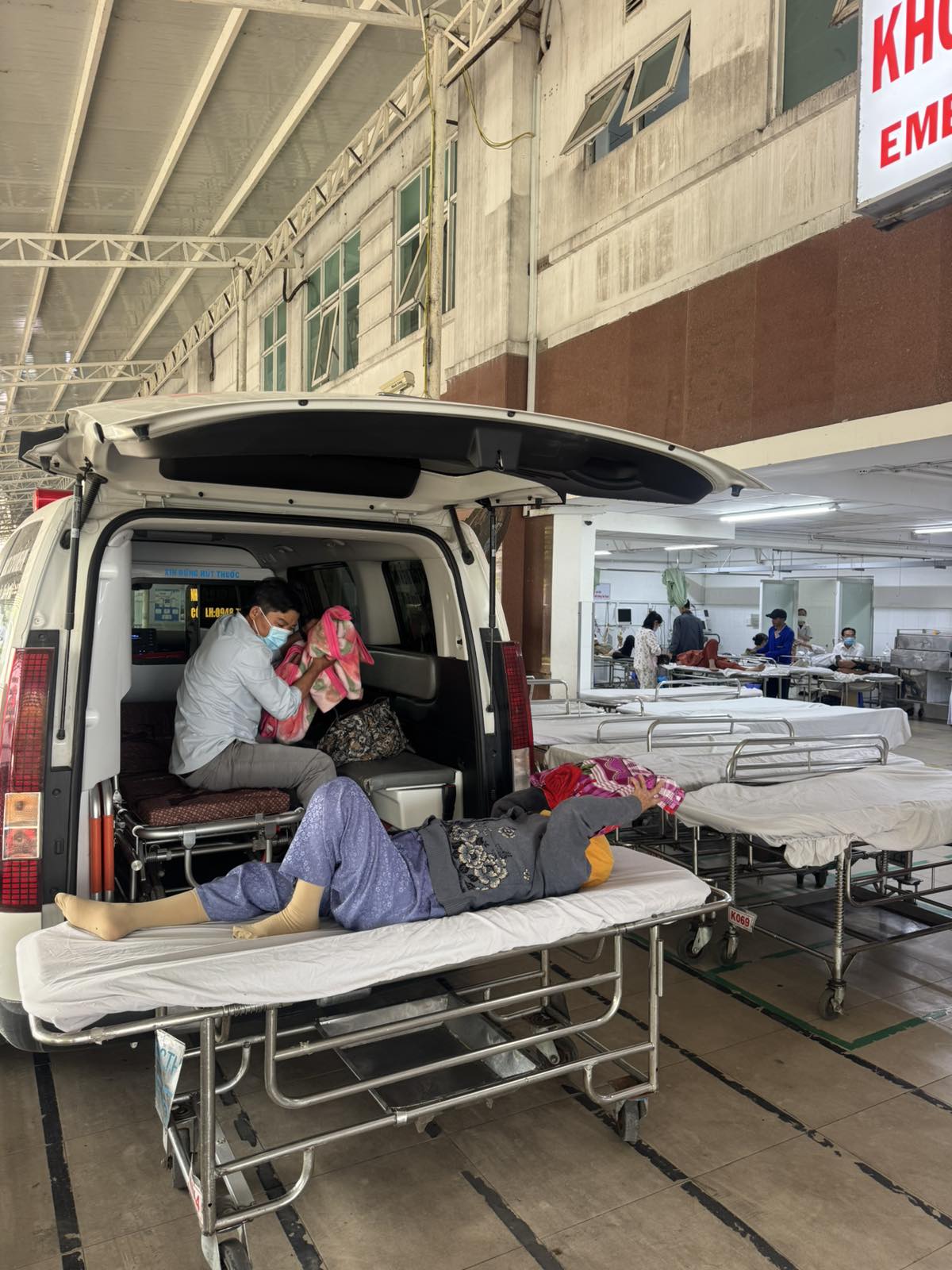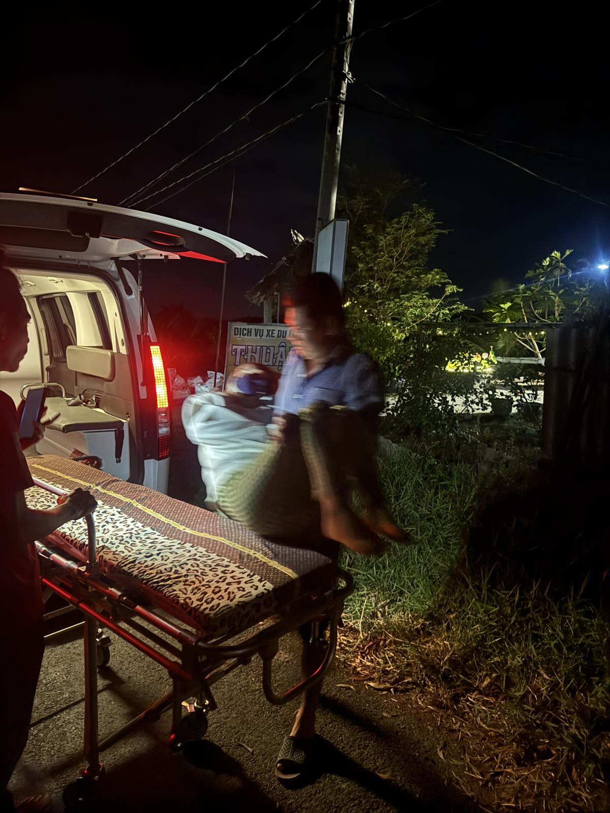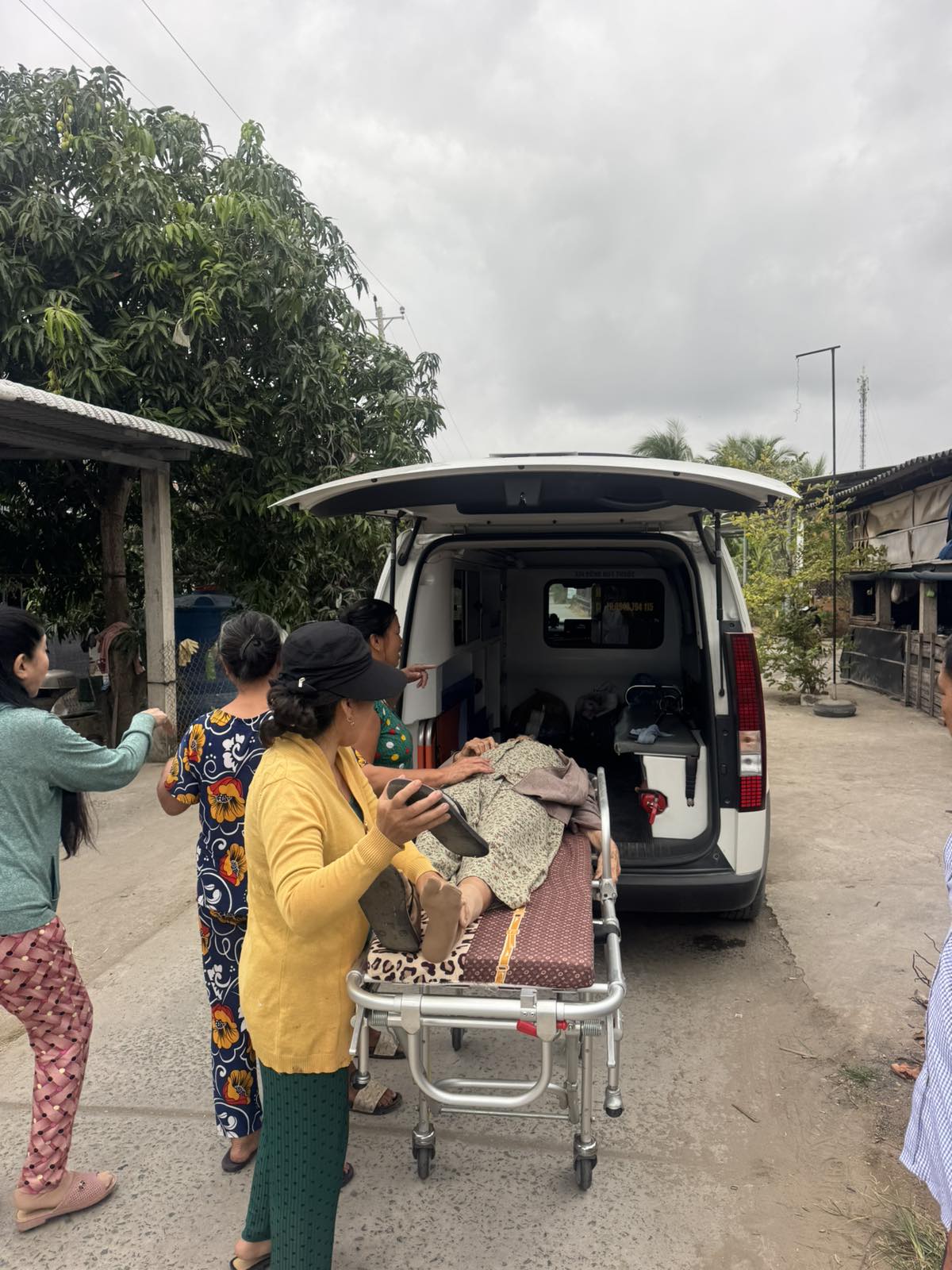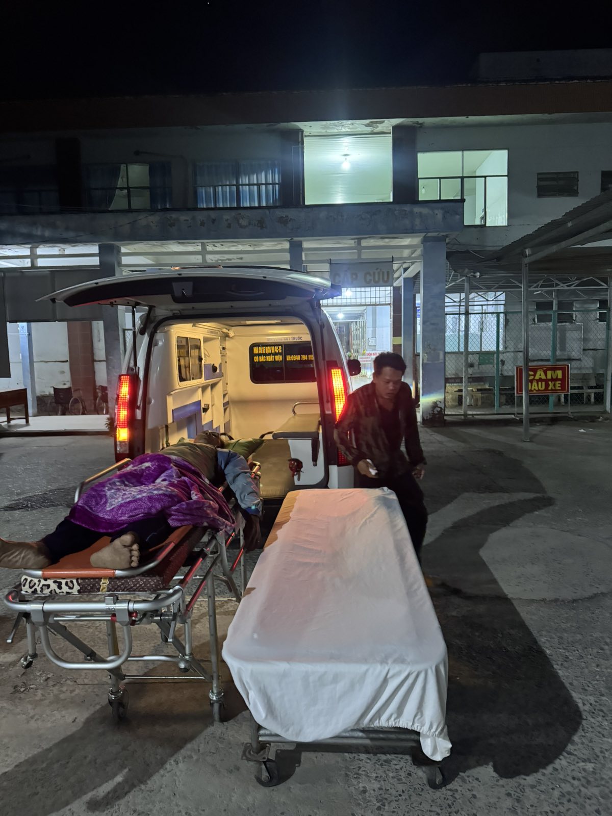 Nguyễn Thị Niềm, 71 years old, lives in Mỹ An, Thạnh Phú Commune, Vĩnh Long Province. She experienced fatigue due to a cerebral hemorrhage (brain bleeding). She was transported by ambulance to Bến Tre Hospital at 6:30 a.m. on January 25, 2026. She currently lives with her children.