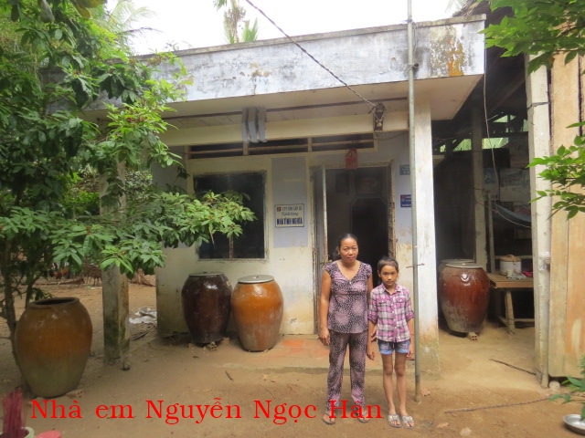 Nguyen Ngoc Han is a 6th grade student. Father, Nguyen Van Soc, lives in Hung Nhon hamlet, Hung Khanh Trung A village, Mo Cay Bac district, Ben Tre providence. Because they are poor, her Aunt adopted her.