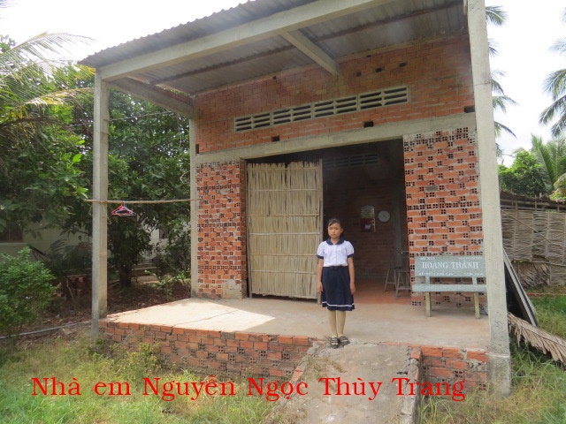 Nguyen Ngoc Thuy Trang, 3rd grade – Mother passed away leaving with father, Nguyen Van Duong, and 2 children, residing in Gong Dac hamlet, Nhuan Phu Tan village, Mo Cay Bac district, Ben Tre providence. Her father works for hired picking coconuts.