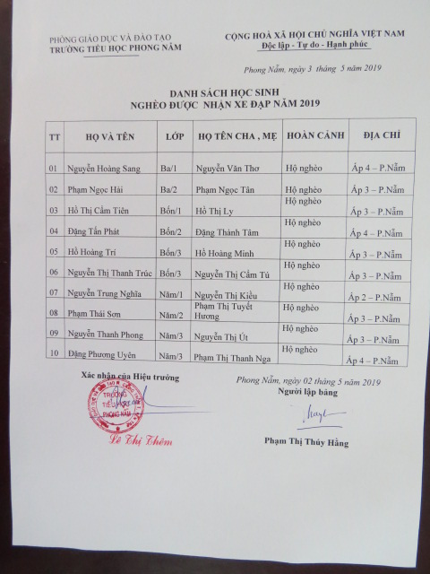 2019 - Bicycles Distribution - TRƯỜNG TIỂU HỌC PHONG NẪM, GIỒNG TRÔM - Phong Nam Elementary school