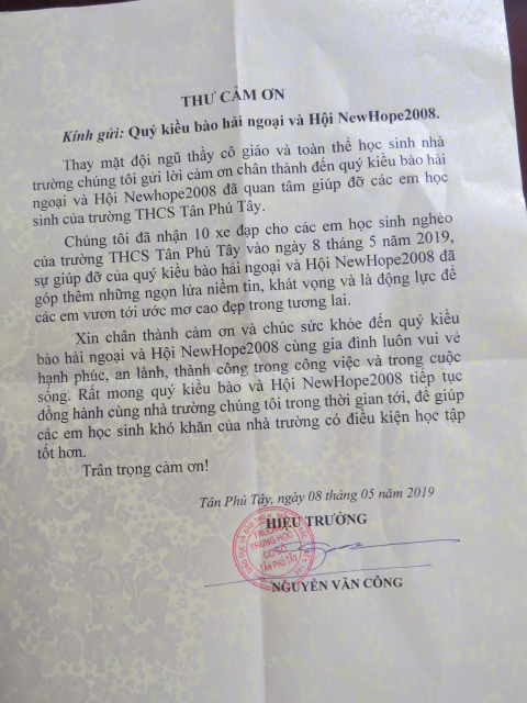 2019 - Bicycles Distribution - TRƯỜNG TRUNG HỌC CƠ SỞ TÂN PHÚ TÂY - Tan Phu Tay Junior High School