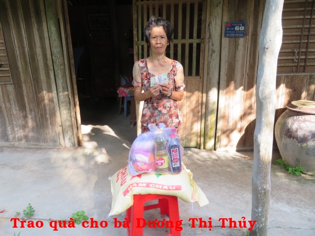 77. Bà Dương Thị Thủy, 53t, nhà ở ấp Tân Thuận Ngoài, xã Tân Phú Tây, huyện Mỏ Cày Bắc, tỉnh Bến Tre. Bà bị chất độc da cam, hiện tại bà sống với mẹ già nay 85t nằm 1 chỗ.